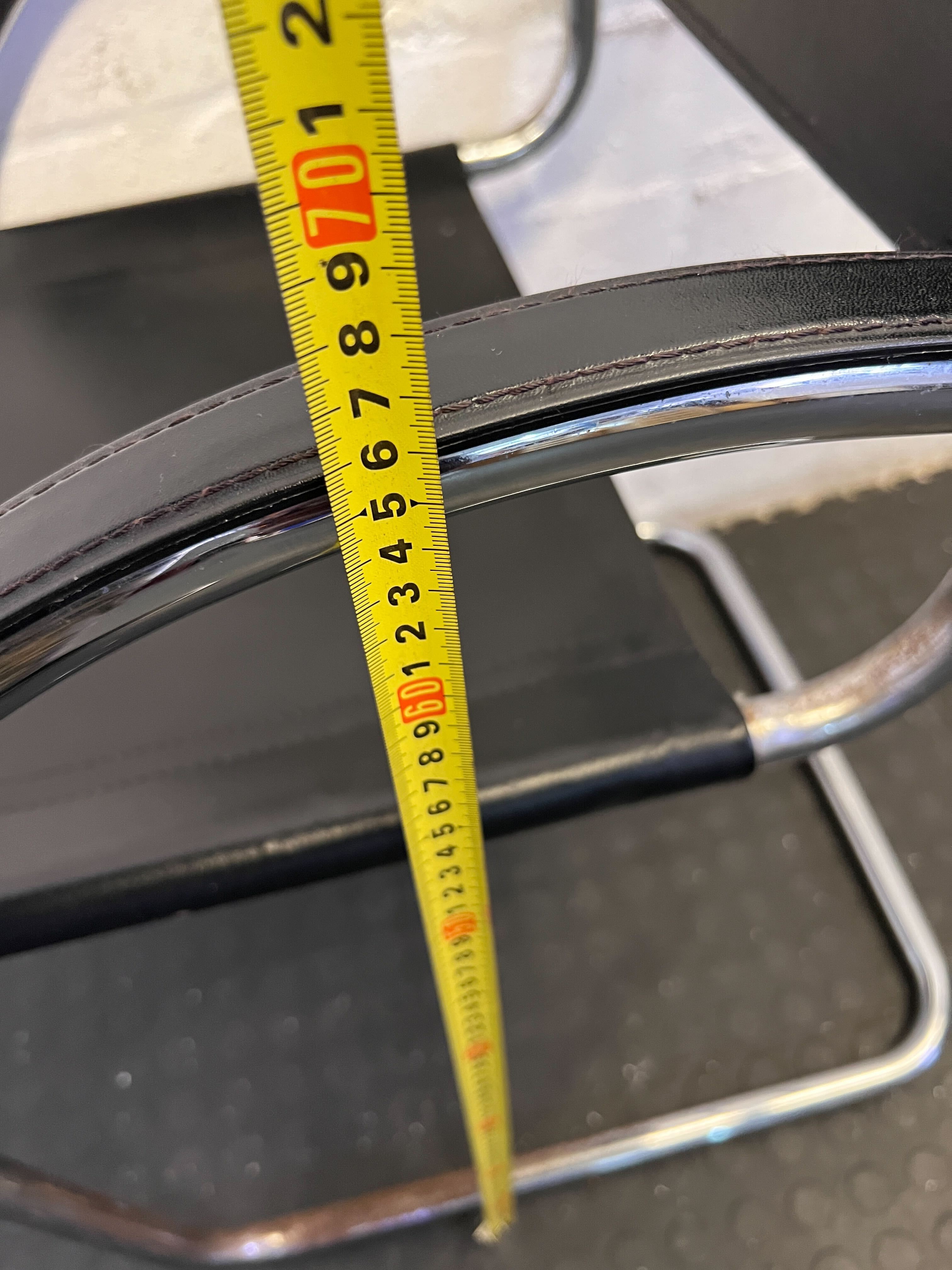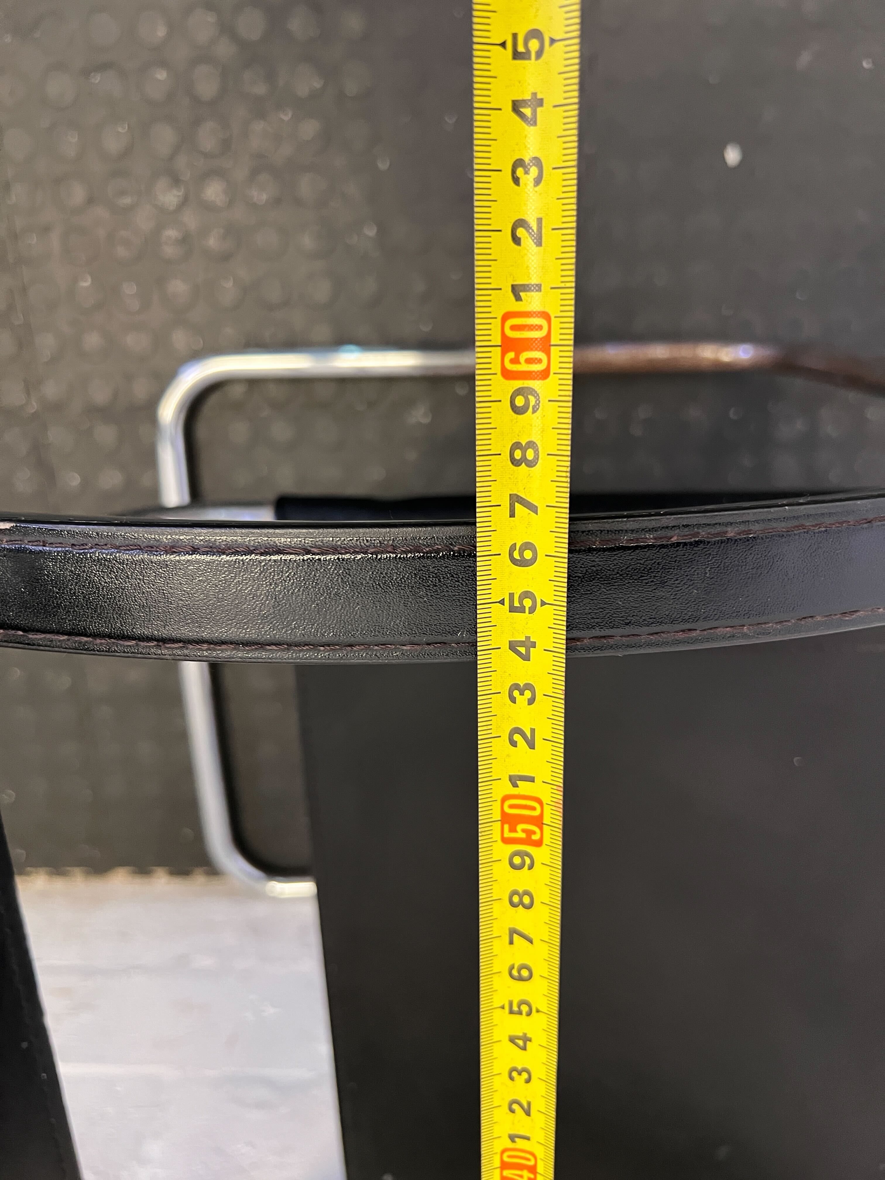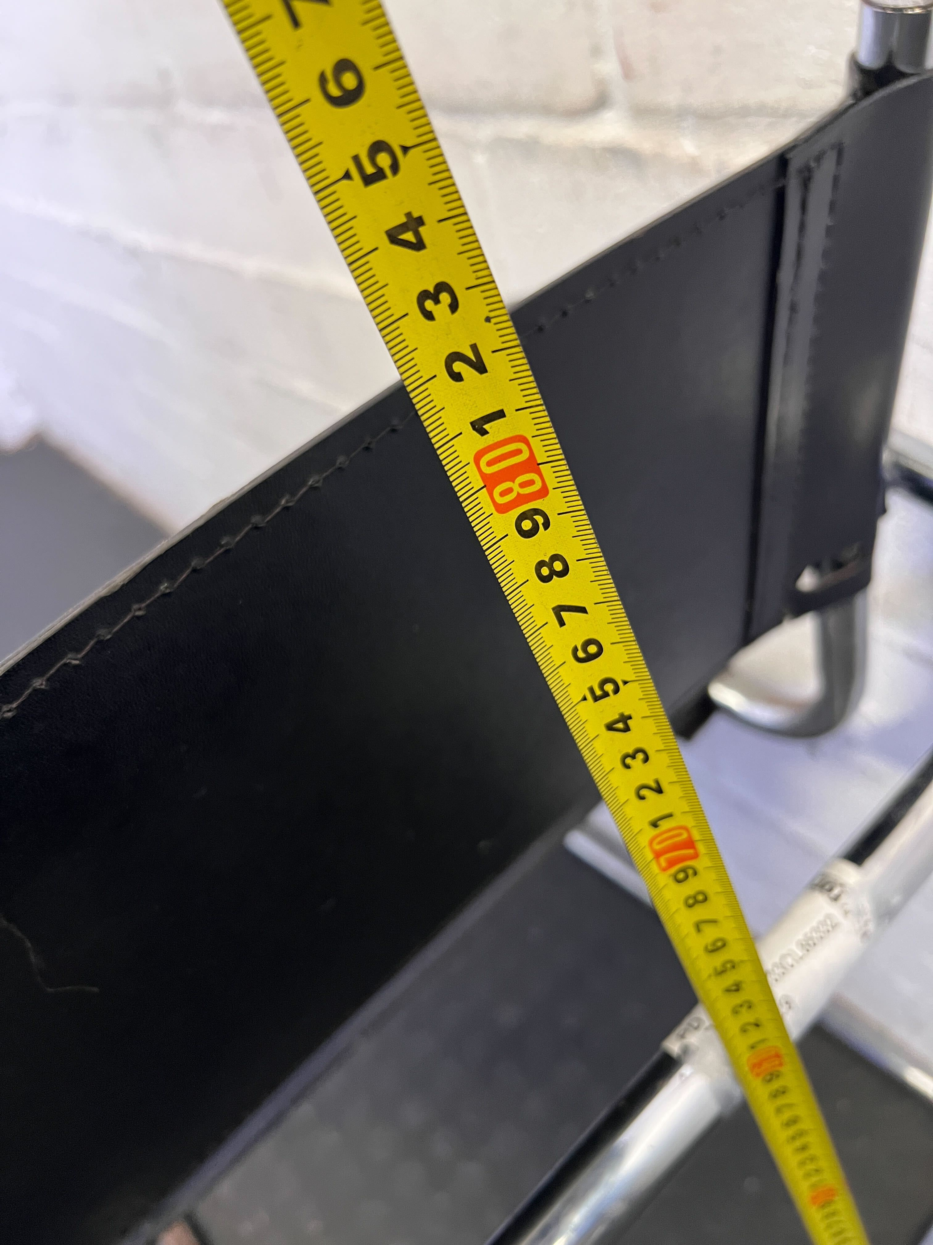 Elevate your space with this striking vintage cantilever chair, a true design icon that blends sleek industrial aesthetics with timeless comfort. Crafted with a polished chrome frame and supple black leather (or faux leather) sling seat and back, this chair embodies mid-century modern elegance. Perfect as a statement piece in a living room, a sophisticated dining chair, or a stylish addition to your home office. It promises to add a touch of architectural flair to any setting. ✨🛋️This chair is in good, used condition consistent with its age. There are some signs of wear on the black upholstery, including minor scuffs and creases. The chrome frame shows a charming patina and some surface wear, particularly around the base, which adds to its authentic vintage character. All structural elements are sound.