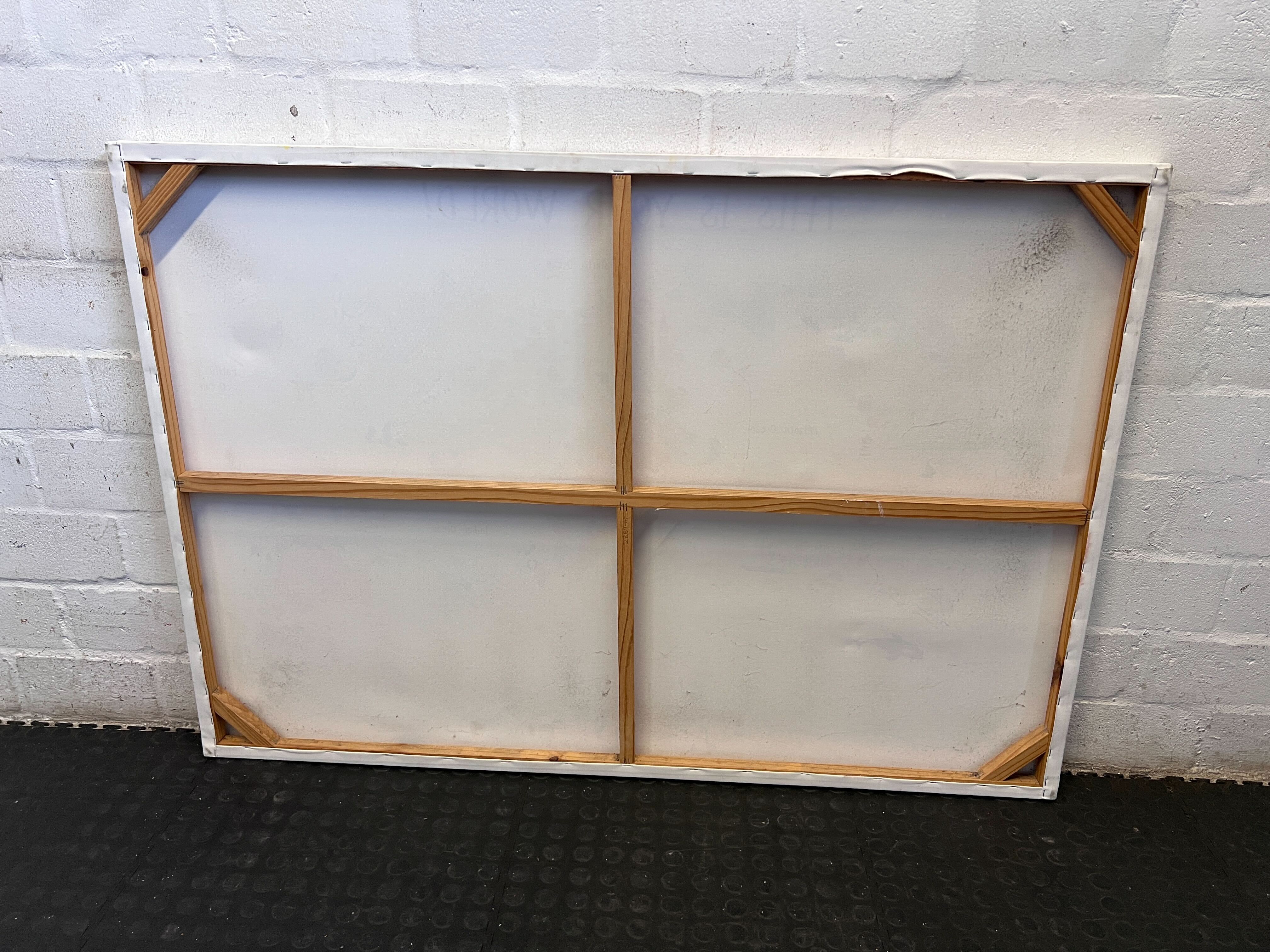 Inspire a love for geography and adventure in your little ones with this charming 'This Is Your World!' illustrated map canvas! ✨ Perfect for a nursery, kid's bedroom, or playroom, this vibrant wall art features a delightful cartoon-style world map, complete with continents, oceans, and adorable animal illustrations representing each region. It's a fantastic way to introduce children to the diverse wonders of our planet in a fun and engaging way. Let their imaginations roam free as they explore the world from the comfort of their room! 🗺️🦒🎨 This canvas print is in good pre-loved condition. There are no major tears or significant damage visible. The colors remain bright and engaging. As a second-hand item, minor signs of previous display or handling may be present, consistent with its age and use.