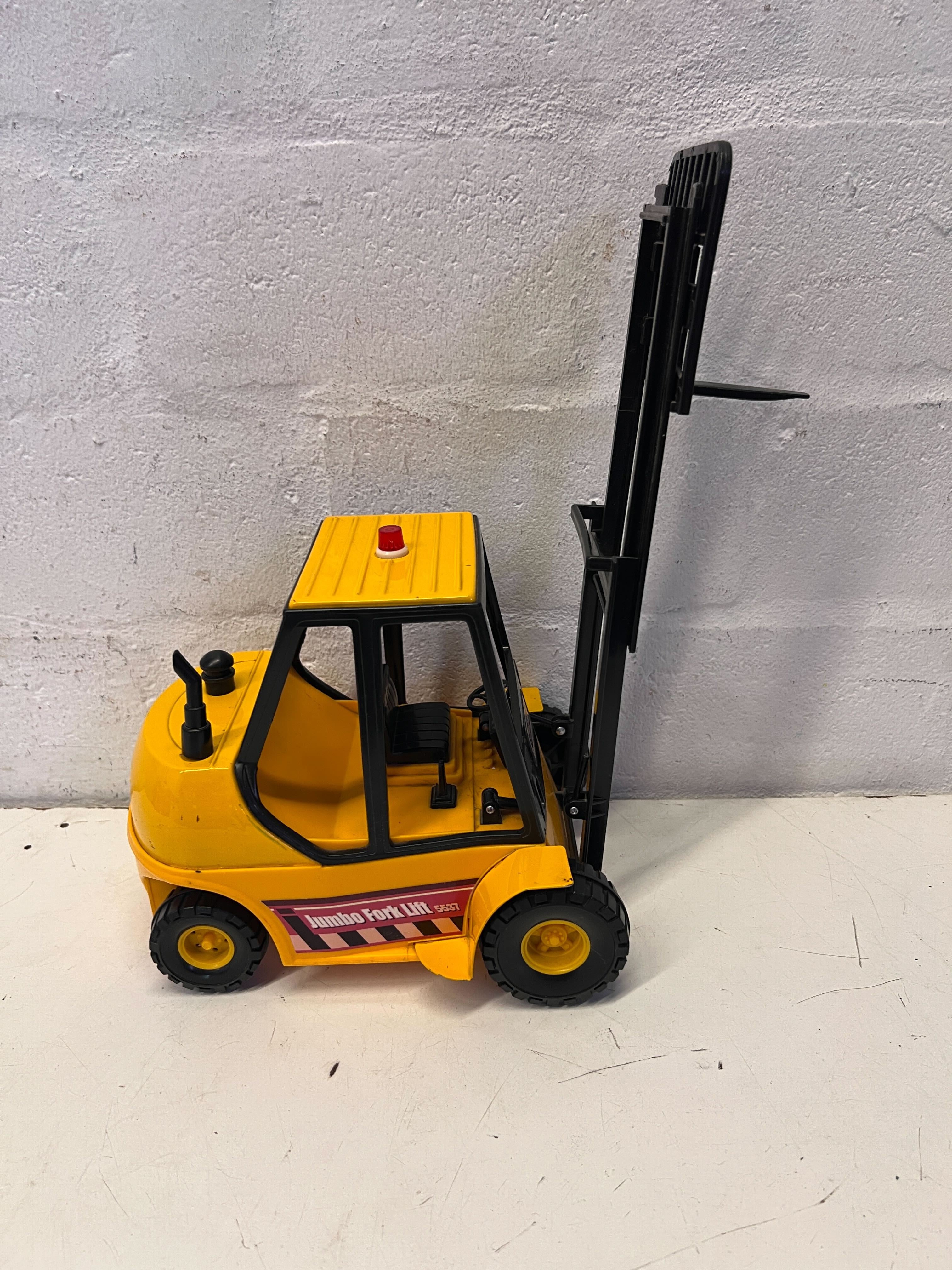 A56344 Bring the excitement of a construction site to your little one's playroom with this fantastic vintage Jumbo Fork Lift toy! ✨ This vibrant yellow and black plastic forklift features a charming design, complete with a red warning light on top and the iconic 'Jumbo Fork Lift' branding on its side. It's perfect for fostering imaginative play, helping children develop fine motor skills as they load, lift, and transport their favorite items around the house. A wonderful addition to any collection of construction vehicles or a standalone piece for hours of engaging fun!#JumboForkLift #ToyVehicles #KidsToys #PrelovedToys #2ndhandwarehouse 🧡