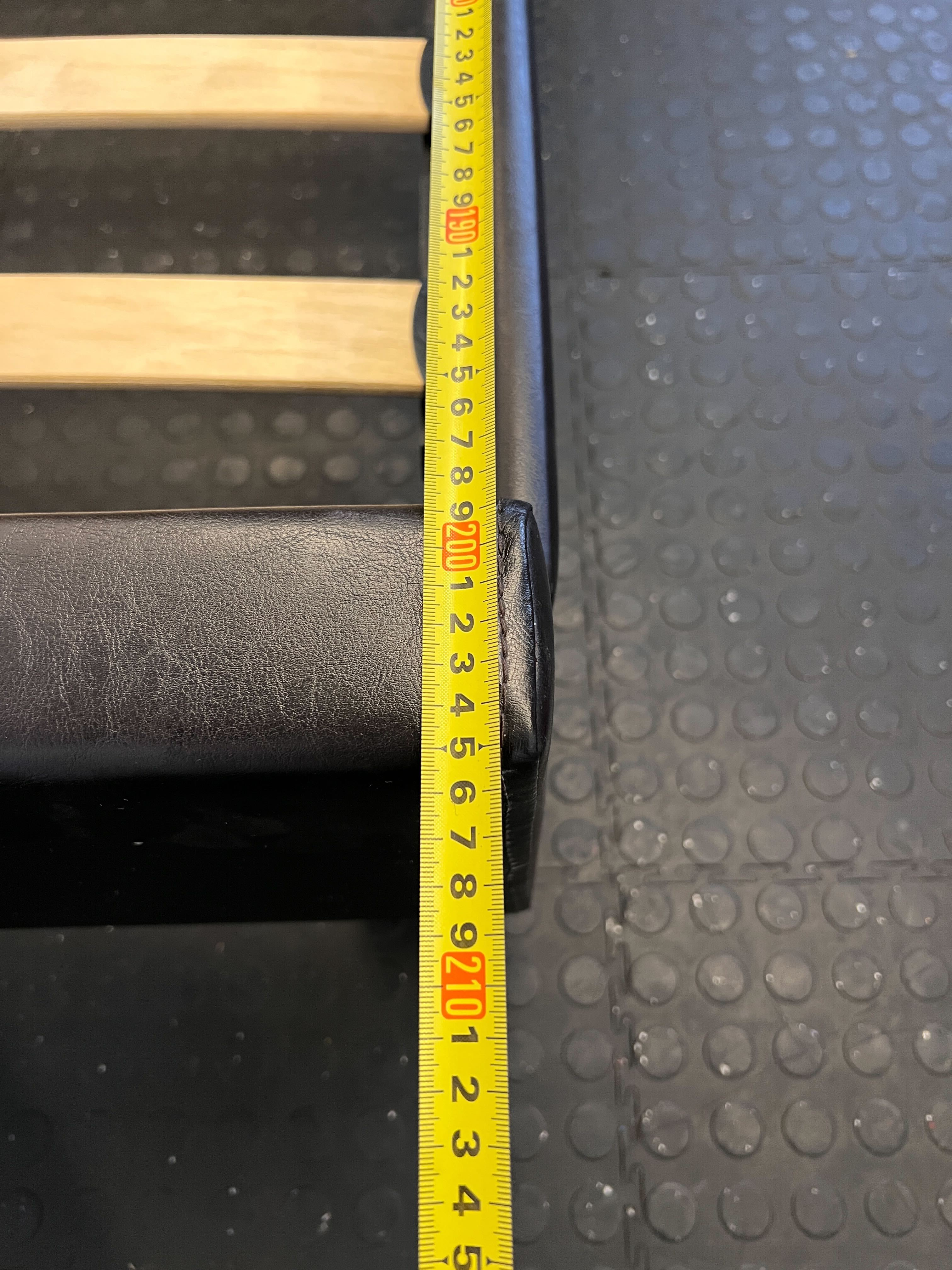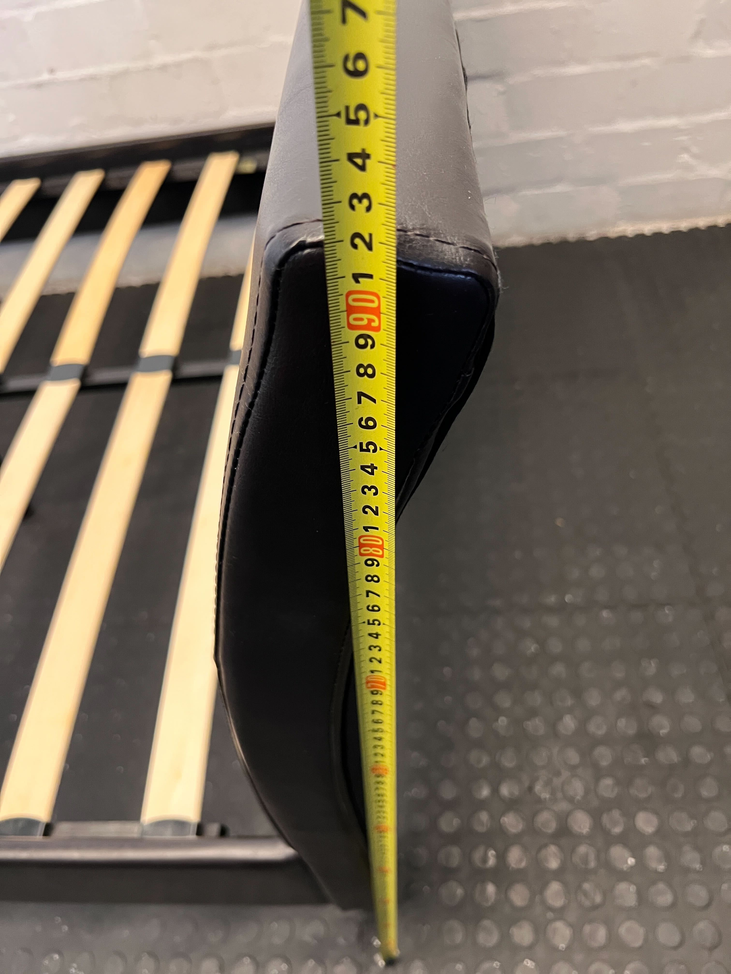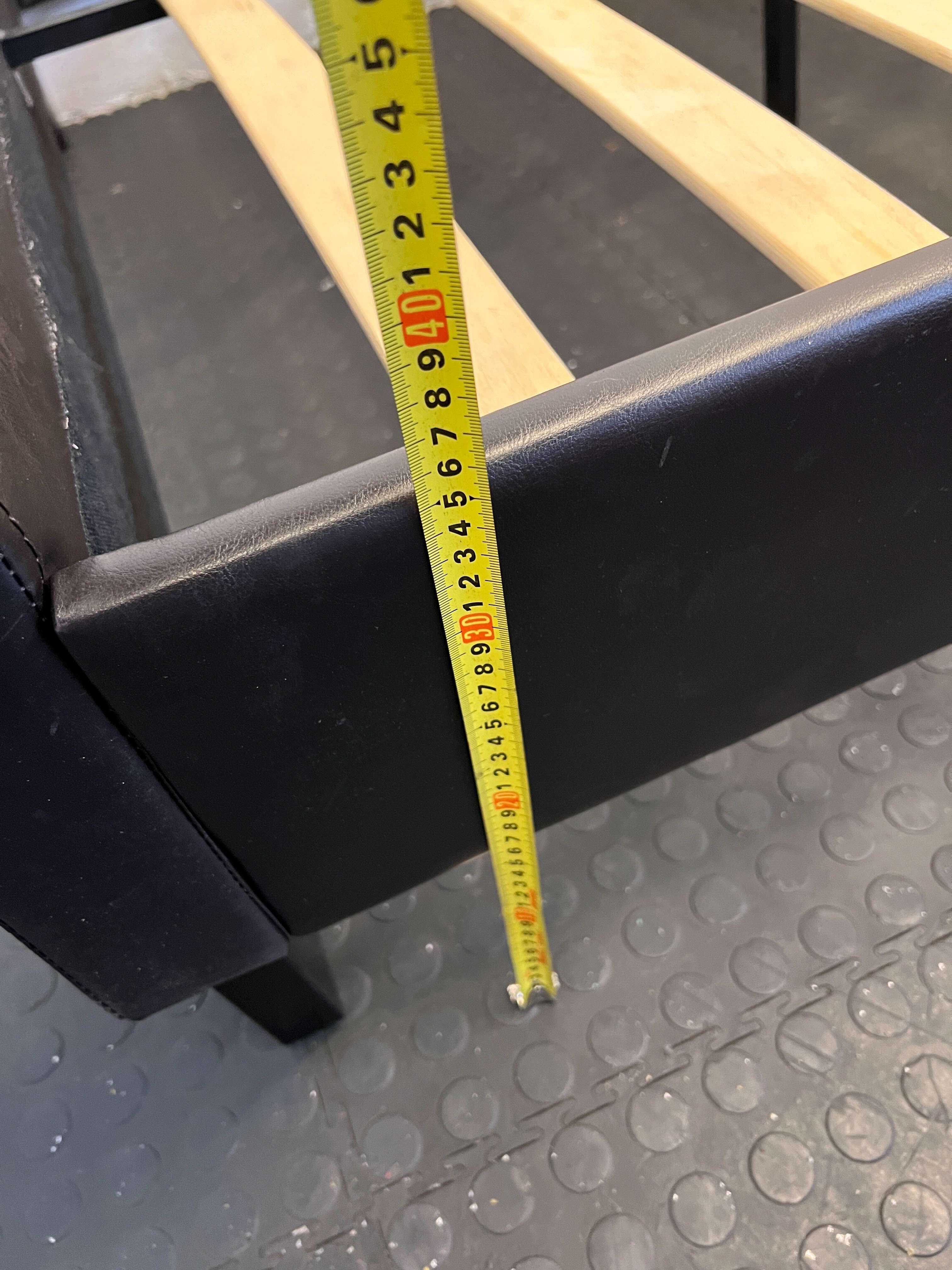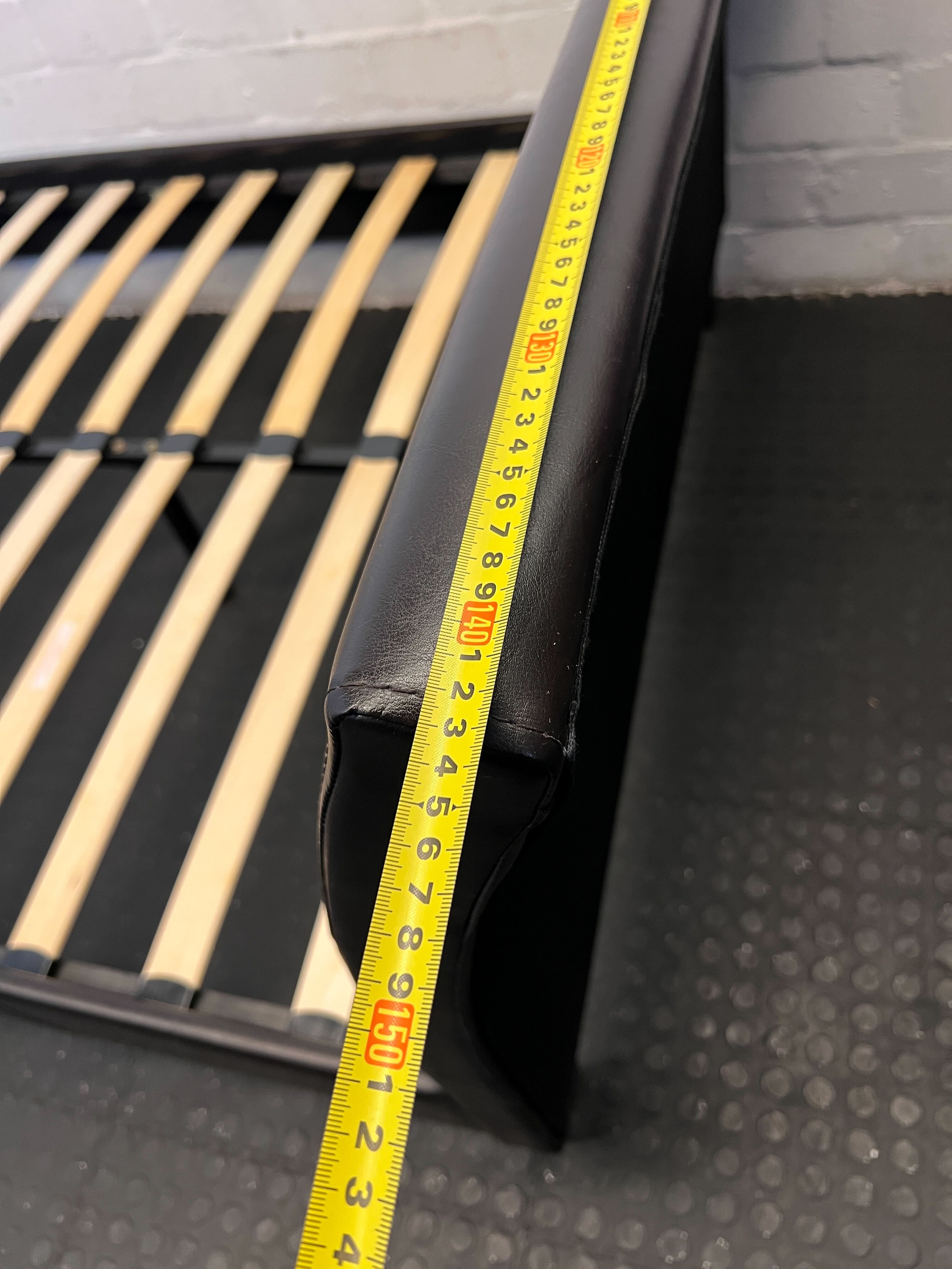 A54743 Transform your bedroom with this chic black faux leather double bed frame, featuring a sleek design and sturdy slatted base for optimal support. While it showcases minimal wear, it remains in great condition, making it an ideal addition to your space for ultimate relaxation and style. Imagine curling up with a good book or sharing cozy nights under your favorite blanket! 🛏️🧡 #### HASHTAGS: #BlackBedFrame #FauxLeatherFurniture #BedroomDecor #2ndHandWarehouse
