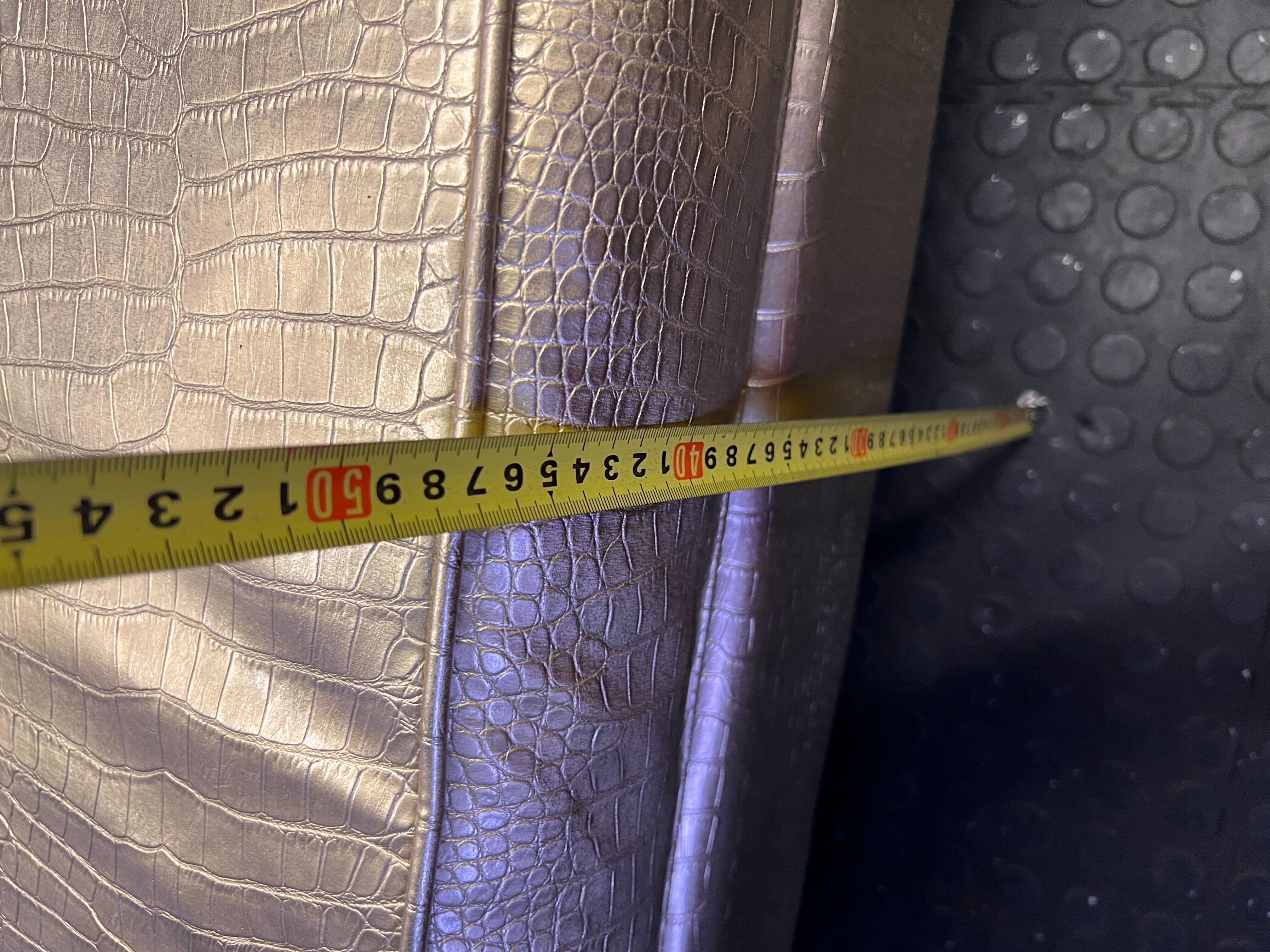 A55891 ✨ Transform your space with this chic gold faux leather daybed, perfect for lounging or hosting guests. Its sleek, minimalist design features a contemporary shape that easily complements various home styles. While it shows minor wear, it retains its charm and comfort, making it a stylish addition to your home. Imagine relaxing on this fabulous piece during movie nights or inviting friends over for a casual gathering! 🧡 #daybed #furniture #homedecor #2ndHandWarehouse