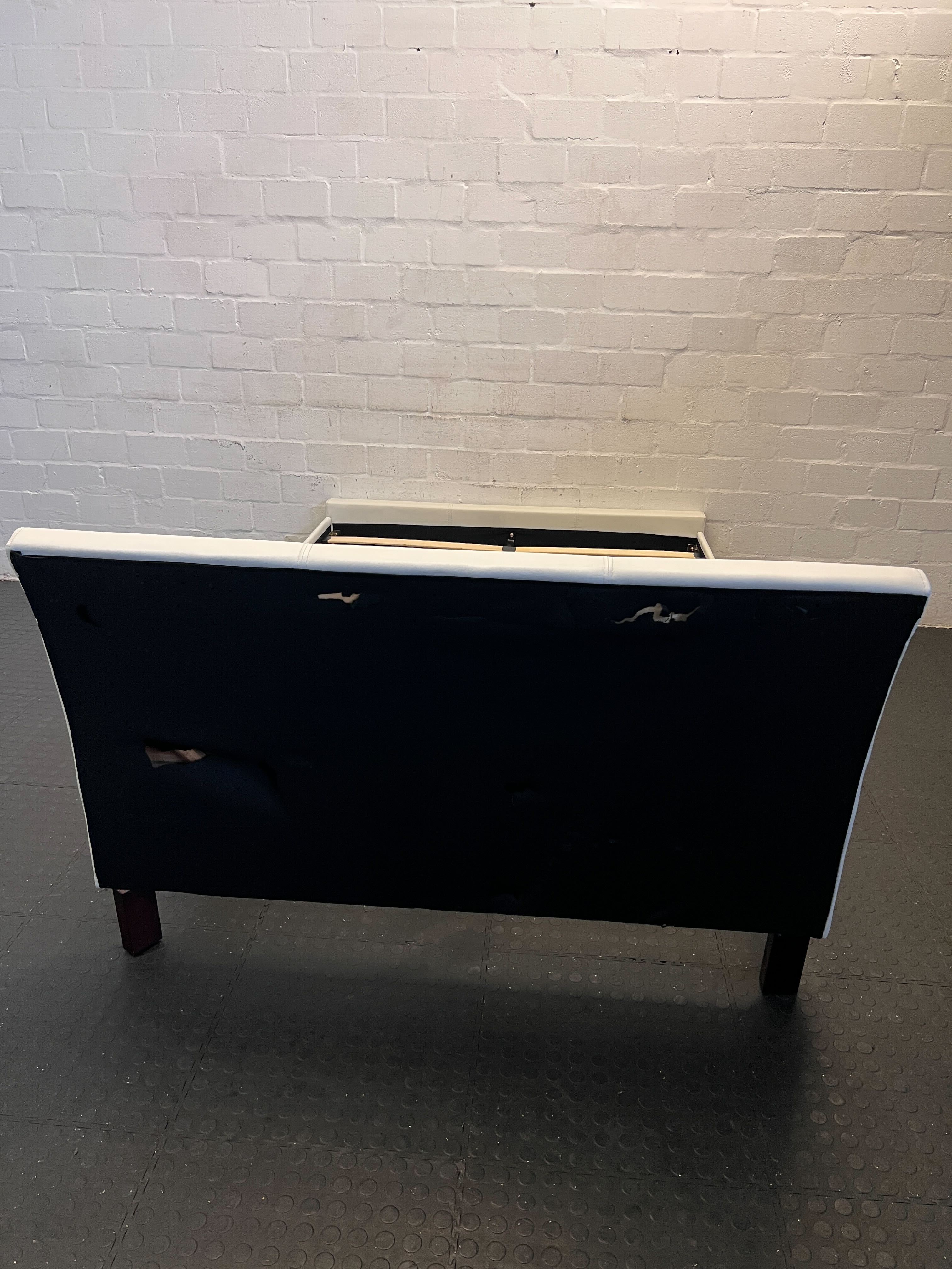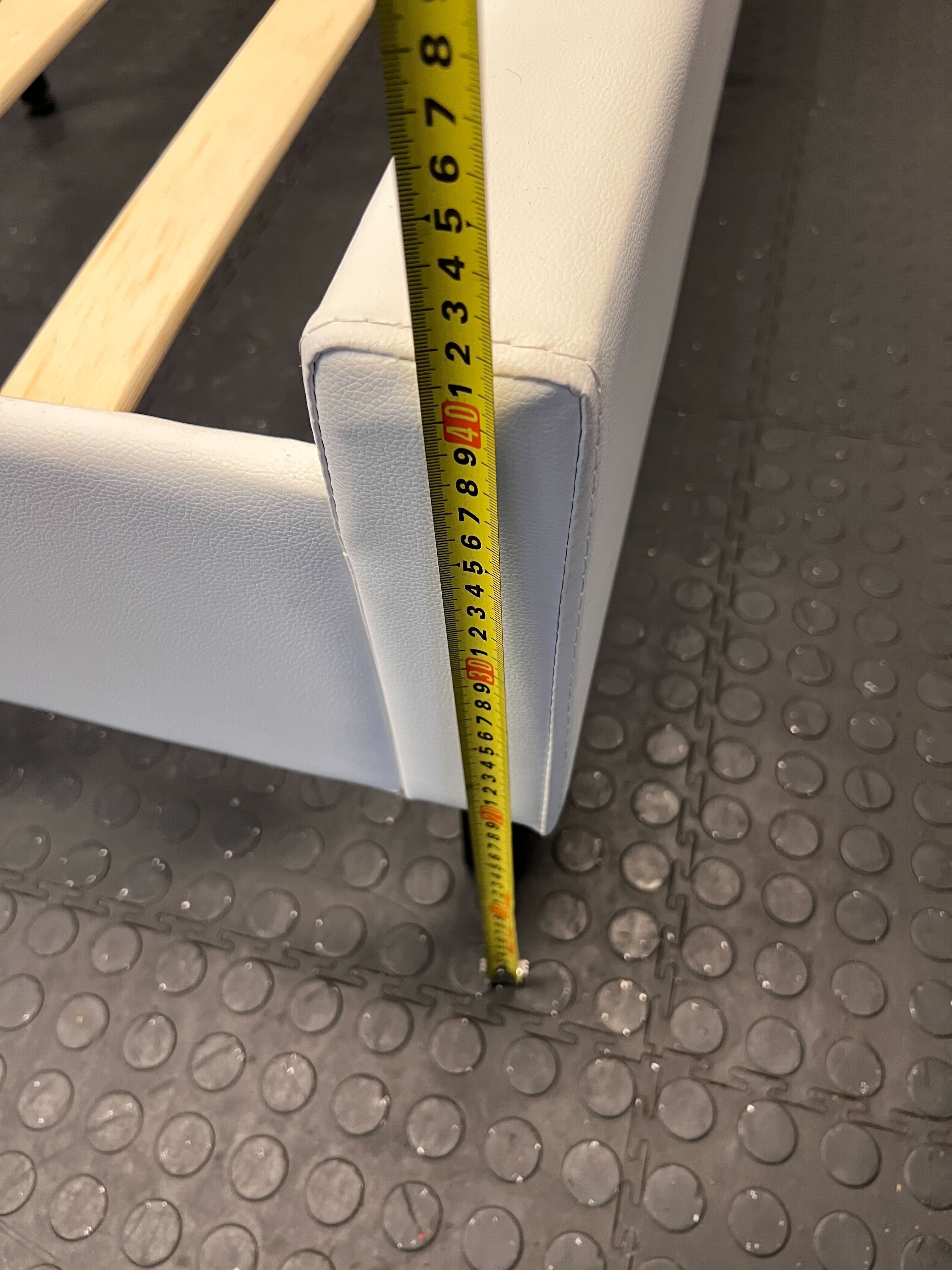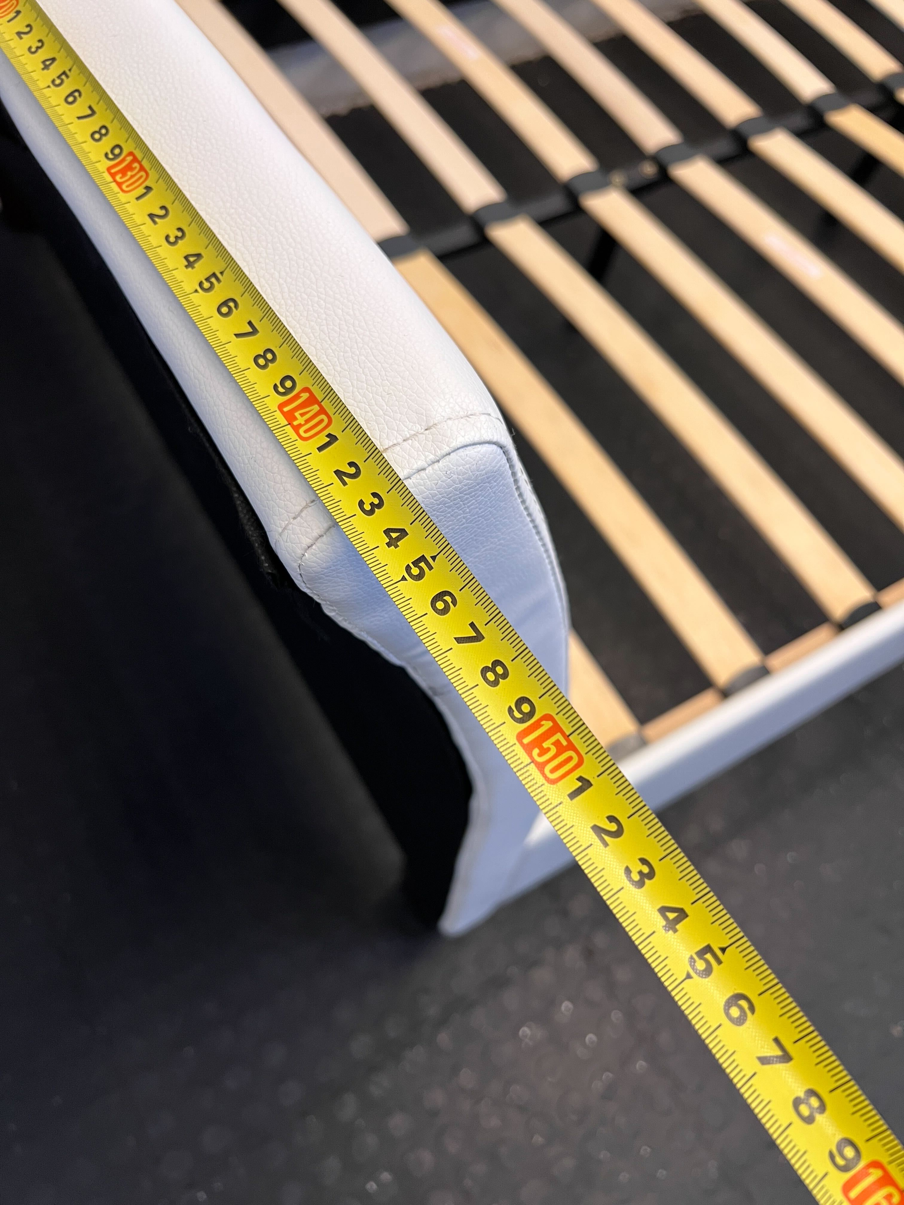 A54740 🛏️ Transform your bedroom into a serene retreat with this stylish white faux leather bed frame. Its sleek design and sturdy slatted base ensure both comfort and durability. In good condition with minimal signs of wear, it's perfect for cozy nights of restful sleep. Imagine falling into a tranquil slumber in this chic setup! 🧡 #bedframe #furniture #secondhand #2ndHandWarehouse