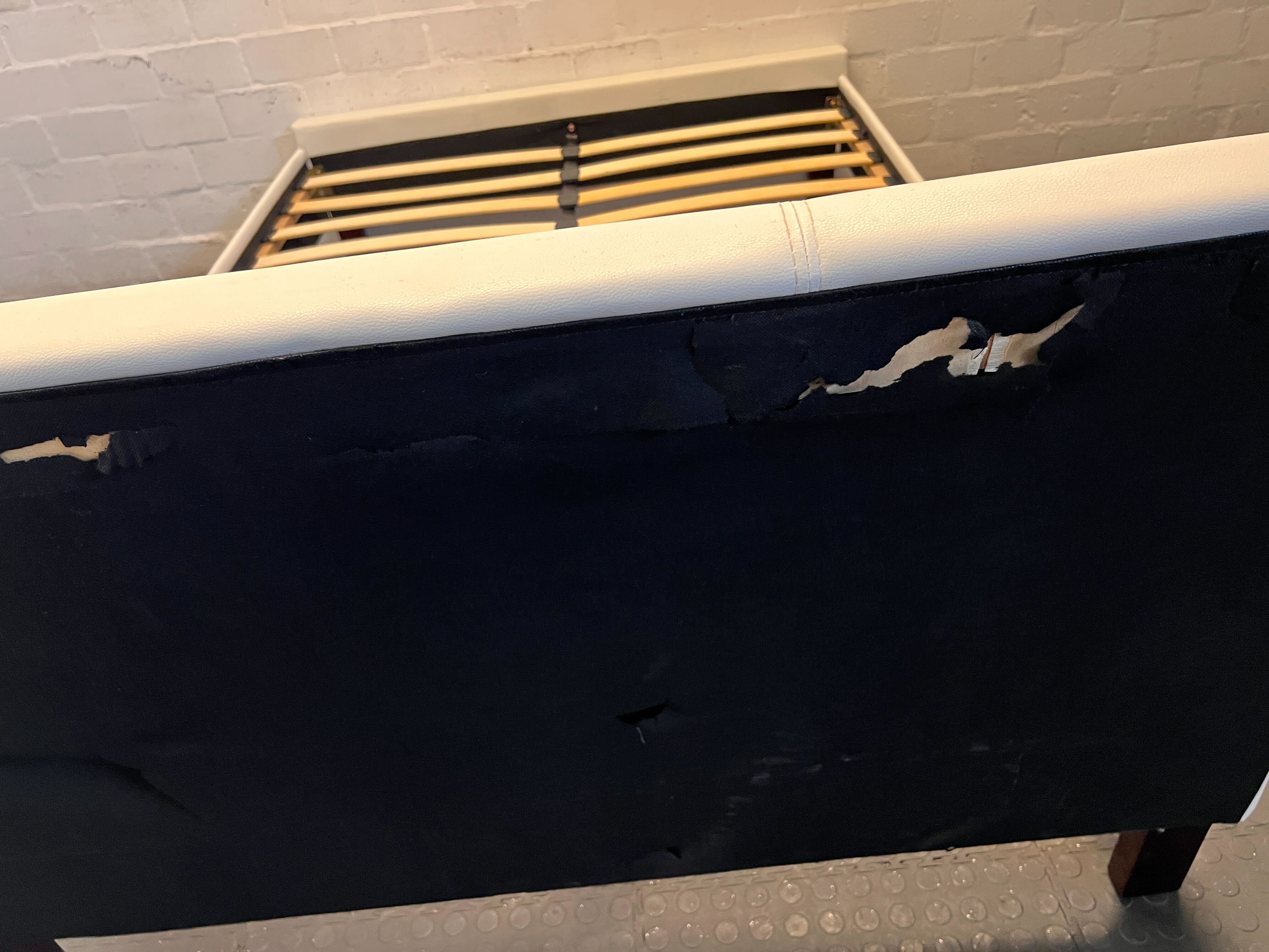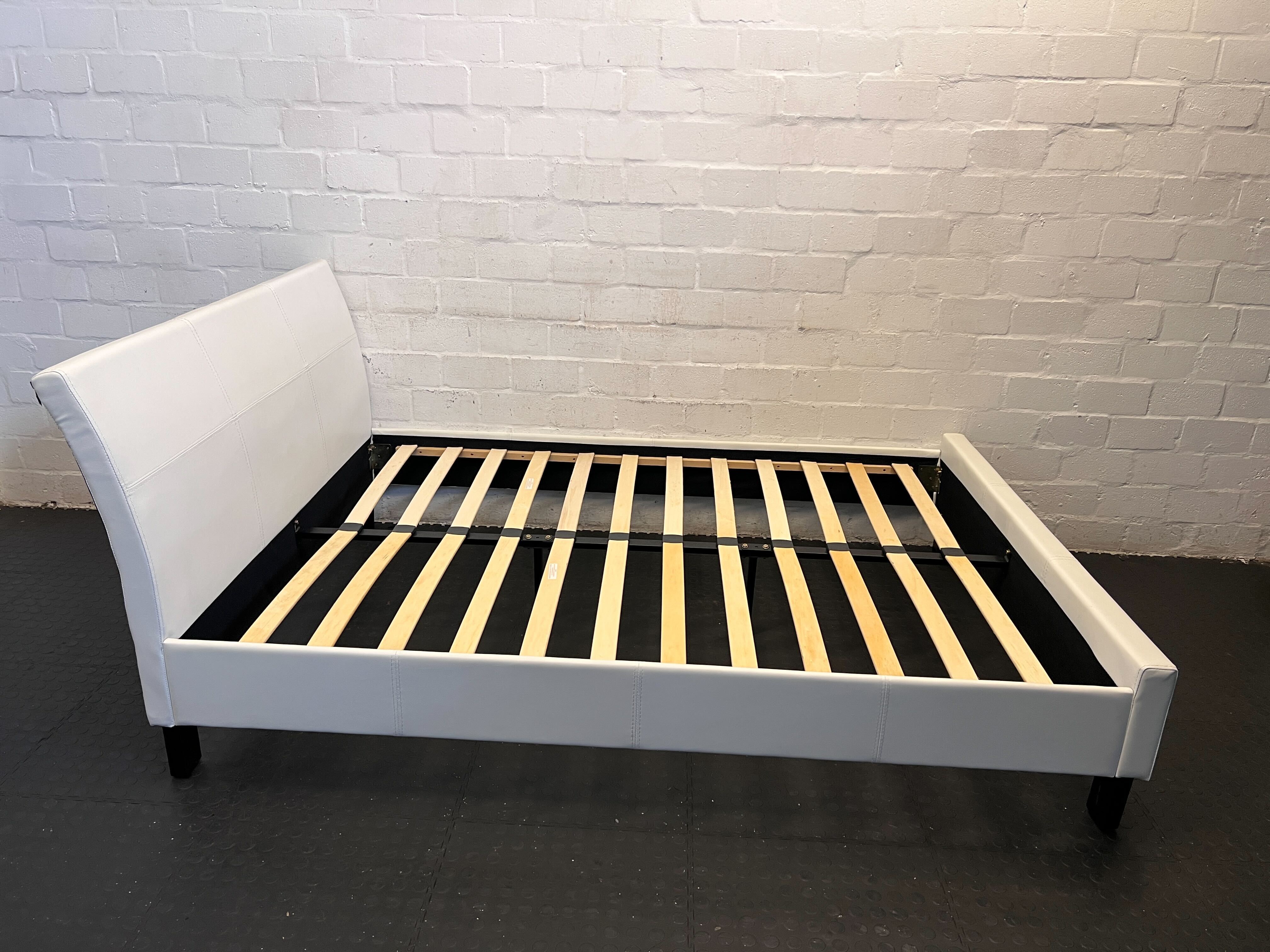 Modern White Faux Leather Double Bed Frame with Slatted Base - REDUCED