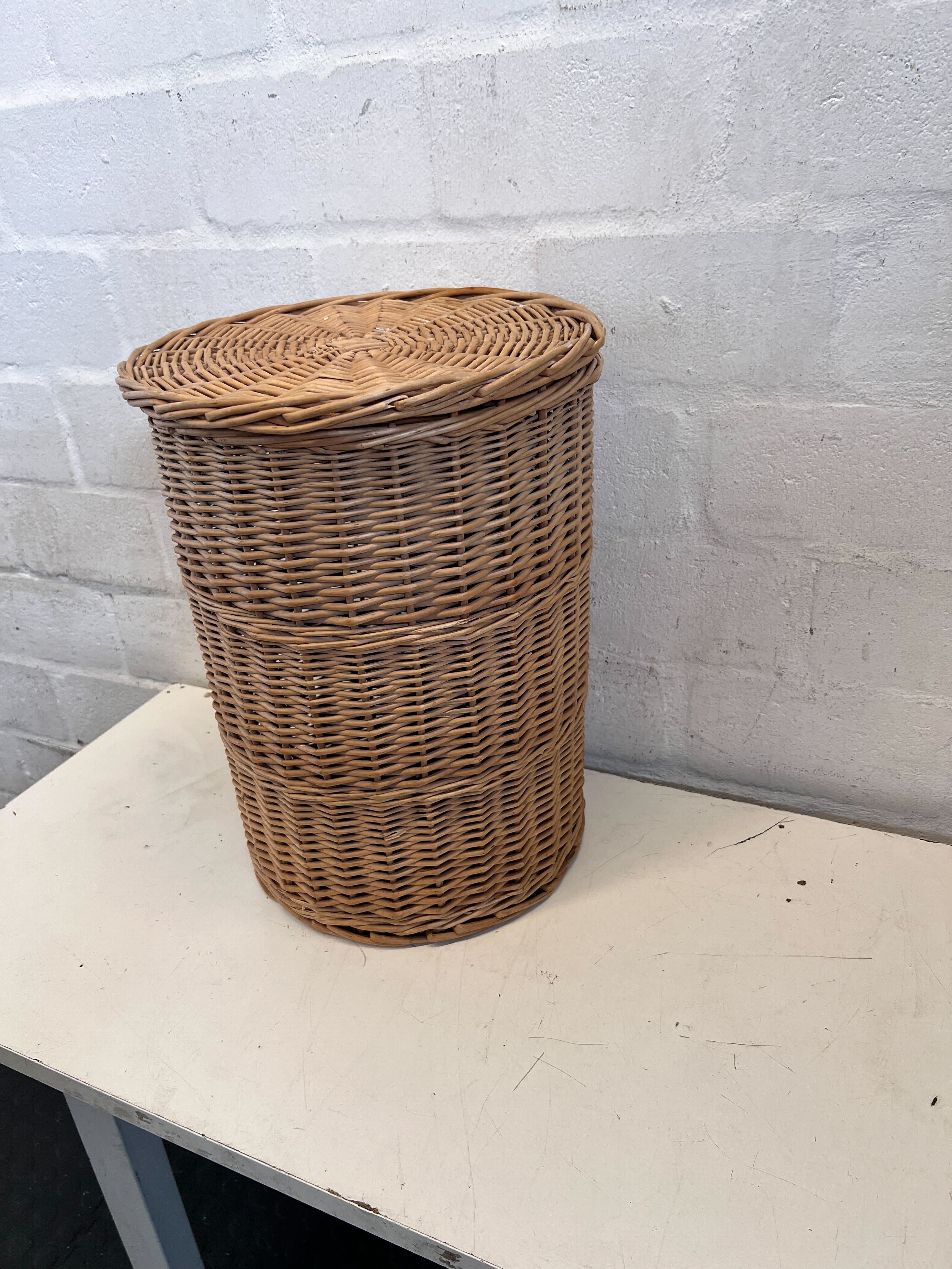 Add a touch of natural elegance and practical storage to your home with this beautiful woven wicker basket. Perfect for tucking away laundry, toys, blankets, or any clutter, its lidded design keeps contents neatly out of sight. The warm, natural tones of the wicker bring a rustic yet refined bohemian feel to any room, from the bedroom to the living area or bathroom. A truly versatile piece that combines functionality with timeless style! ✨🧺🌿 This pre-loved wicker basket is in good, used condition. As expected with natural materials and age, there may be minor variations in the weave and subtle signs of wear consistent with its previous life, adding to its authentic charm. Please examine images carefully.