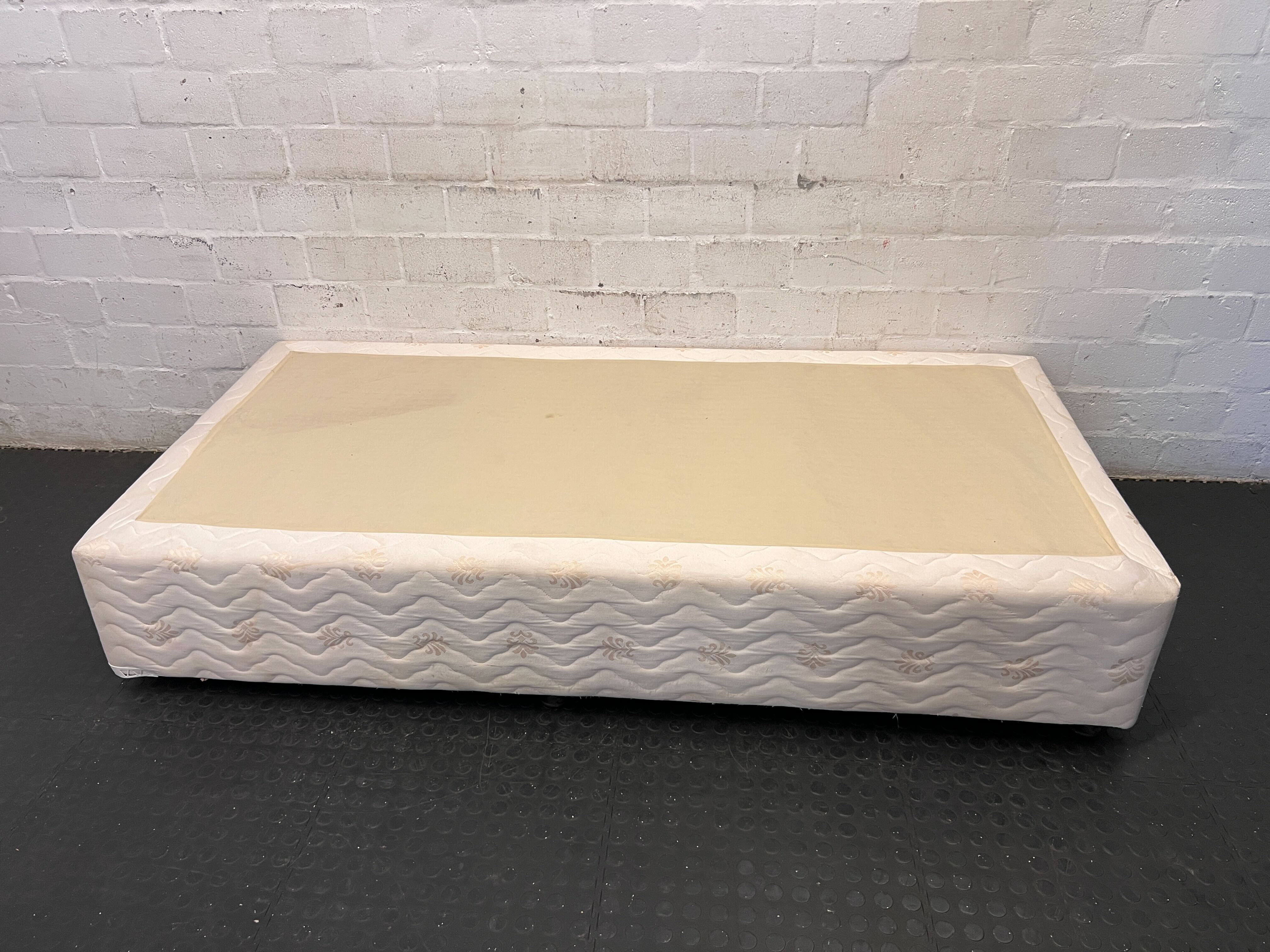 Upgrade your sleep setup with this sturdy single bed base! ✨ Perfect for a guest room, a child's bedroom, or a cozy studio apartment, this bed base provides excellent support for your mattress. Its classic design and neutral color make it a versatile addition to any decor. Get ready for restful nights with this essential piece of bedroom furniture. 🛌 This bed base is in good, used condition. There are some minor signs of wear consistent with previous use, including a few light marks or discoloration on the top fabric surface and slight wear on the fabric along the edges. The overall structure remains solid and functional, ready to provide reliable support for your mattress.