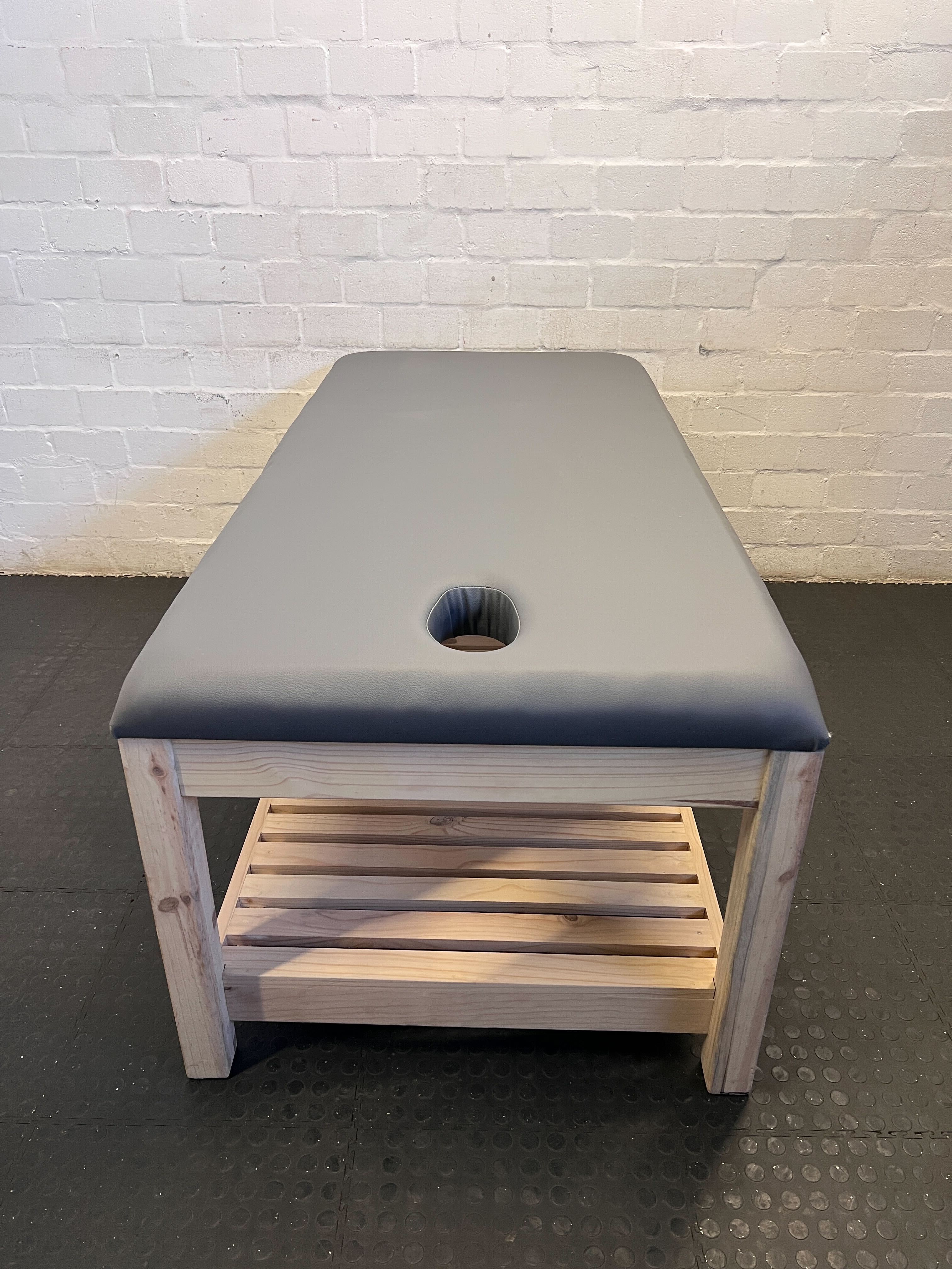 A56151 Discover unparalleled comfort and functionality with this versatile treatment or massage table, ideal for various professional settings or even a unique home setup! ✨ Boasting a sturdy natural wood frame and a plush grey padded top, this table is designed for client comfort, featuring an integrated face cradle. The practical slatted under-shelf offers ample storage for towels, oils, and other essentials, helping you maintain a tidy and organized workspace. Perfect for massage therapists, physical therapists, estheticians, or anyone needing a reliable and comfortable examination surface. 💆♀️🛋️#MassageTable #TherapyEquipment #ProfessionalUse #SpaFurniture #2ndhandwarehouse🧡