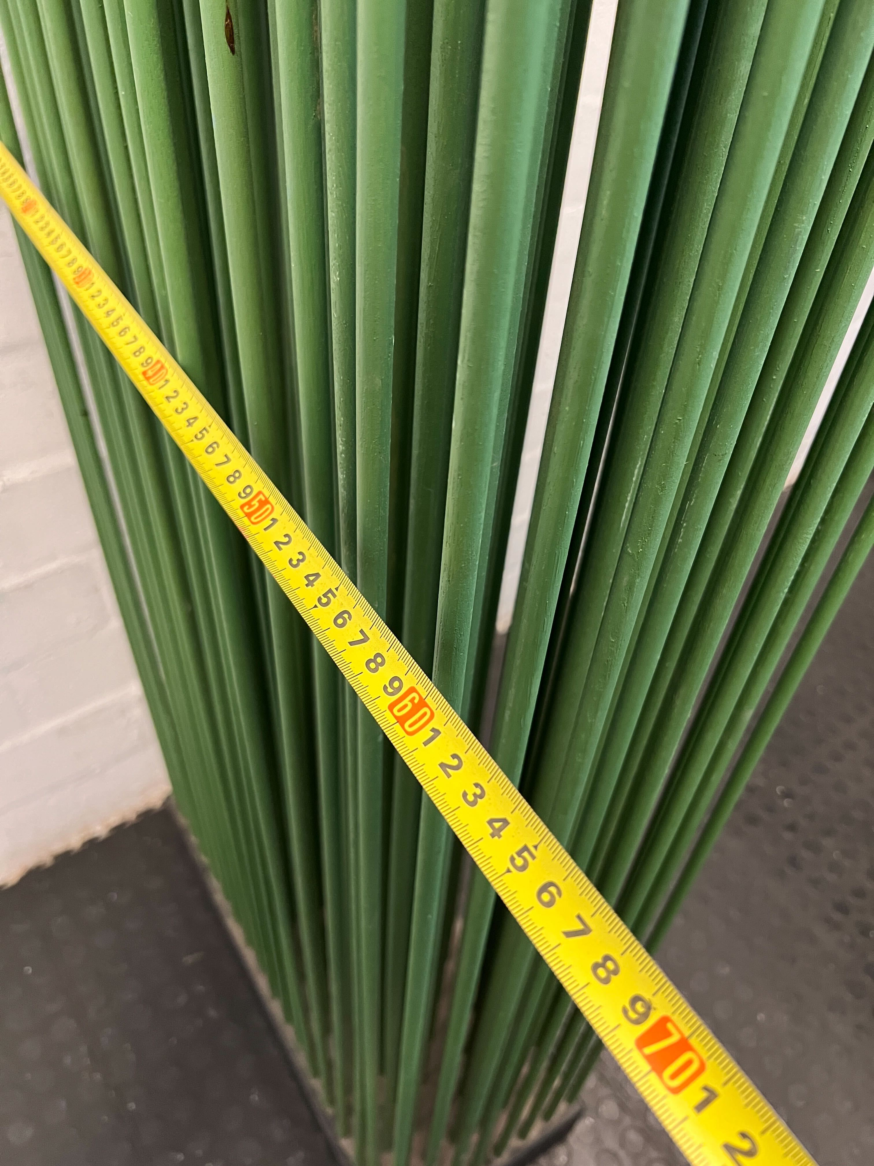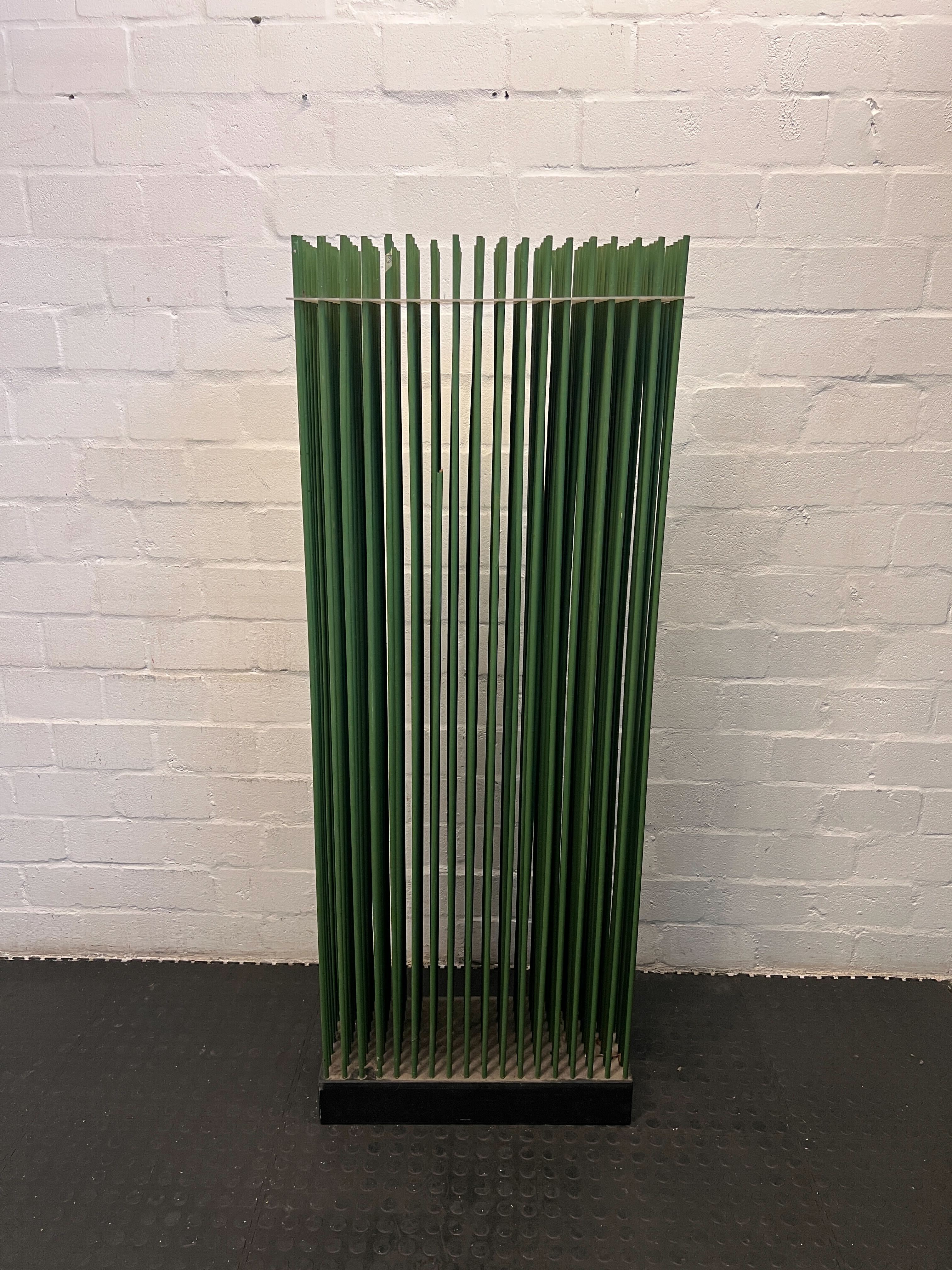 A54570 This modern vertical slat room divider offers a stylish and functional way to section off spaces without closing them off completely. Featuring a sleek, sculptural design with natural wooden slats and a sturdy black base, it’s perfect for creating visual separation in open-plan interiors. Whether used in a home, office, studio, or retail space, this piece adds a contemporary architectural element while still allowing light and air to flow freely.
