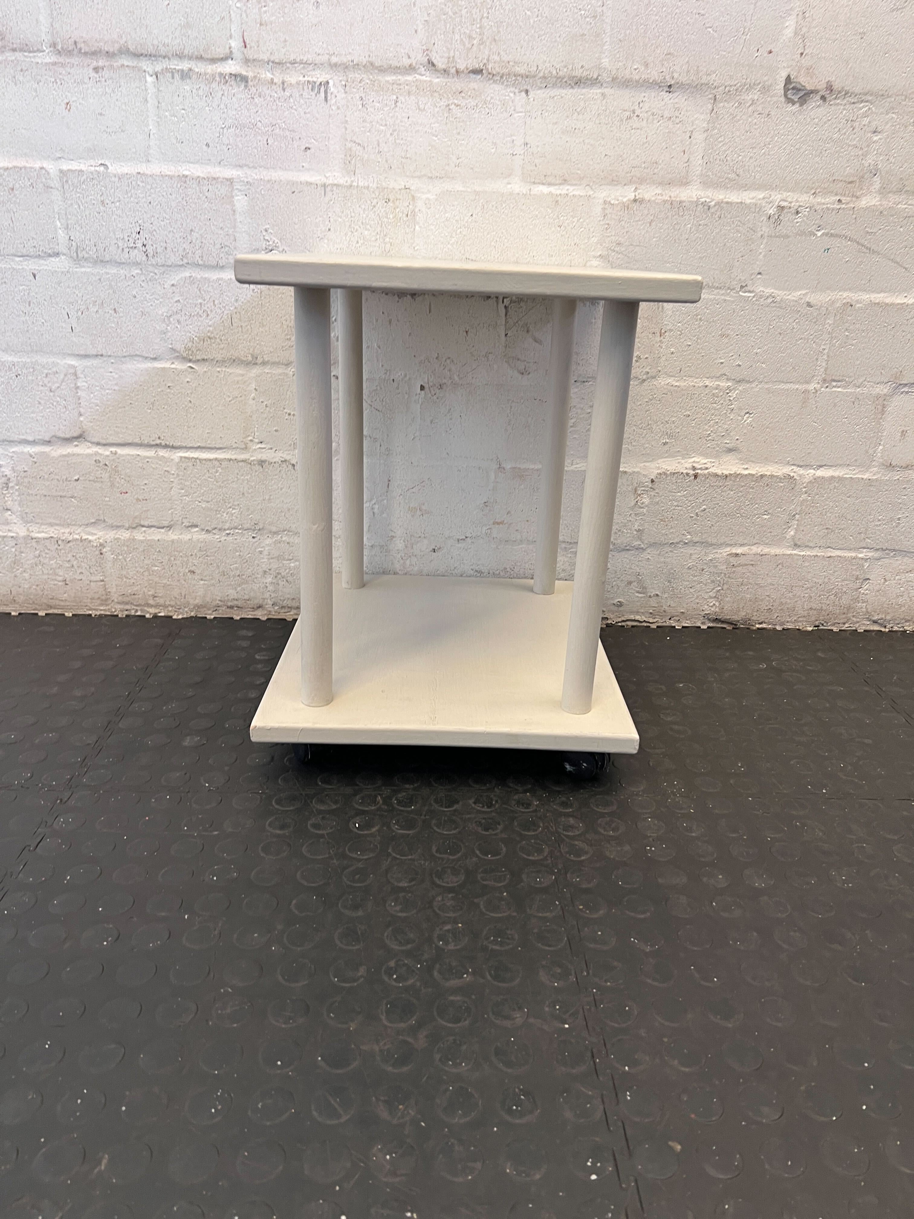 Discover this charming off-white, two-tier accent table, perfect for adding a touch of practical elegance to any room! ✨ Its compact size and versatile design make it an ideal end table next to your sofa, a convenient bedside companion, or even a stylish display stand for your favorite decor. The handy lower shelf provides extra space for books, magazines, or a small plant, keeping your essentials within easy reach. Its clean lines and neutral color blend seamlessly with various interior styles, from modern minimalist to cozy farmhouse.🛋️ This table is in good second-hand condition. There may be minor cosmetic wear consistent with its age and previous use, such as small scuffs or marks on the paint finish, but no significant damage or structural issues are visible in the image. It's ready to find a new home and continue its useful life! 💎