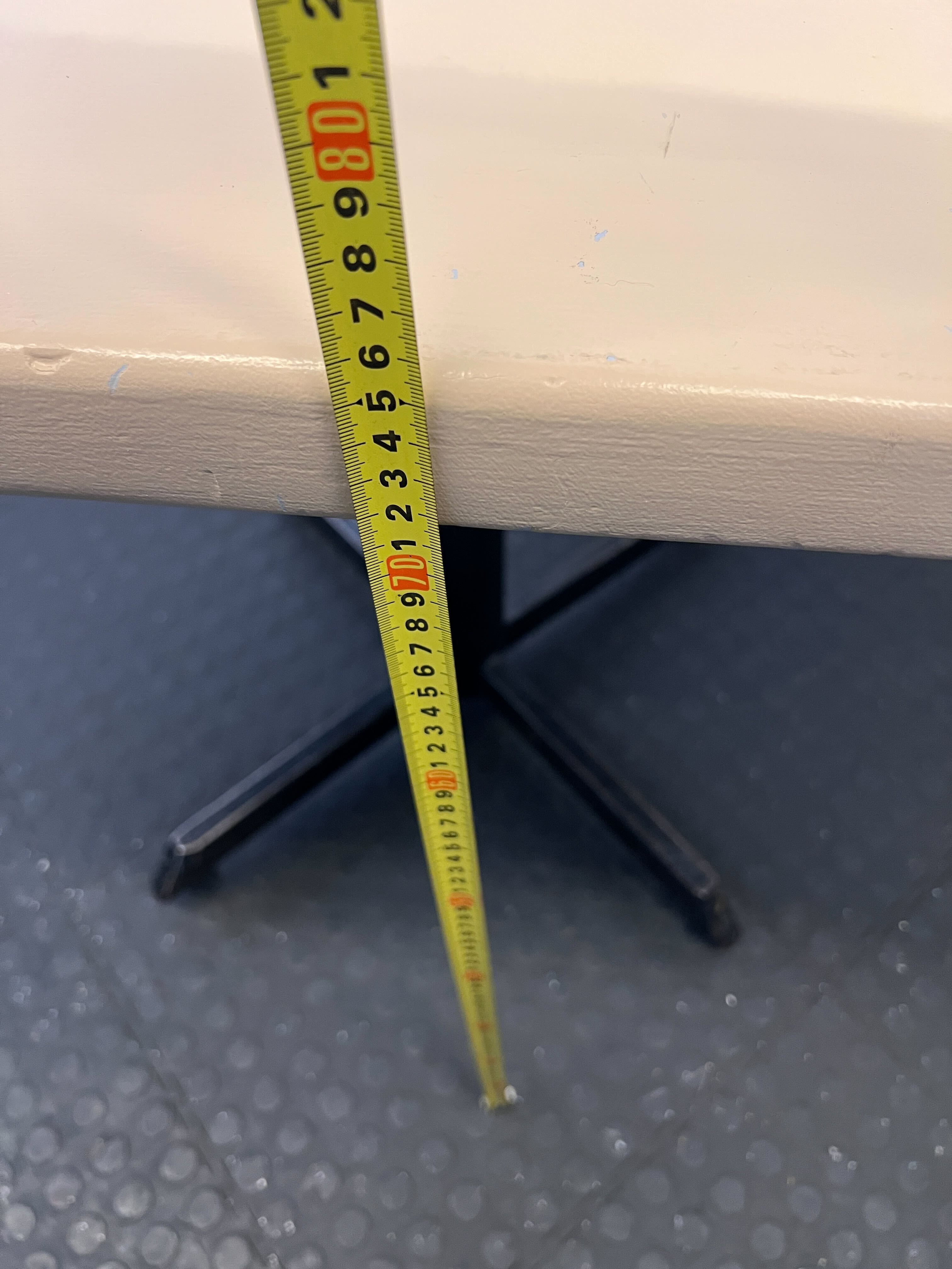 A55611 This sleek square table features a minimalist beige top paired with a sturdy black base, making it an ideal addition to any contemporary space. With minor scratches that add a touch of character, this table is perfect for a cozy dining nook or as a stylish workspace. Elevate your home with functional style today! 🧡