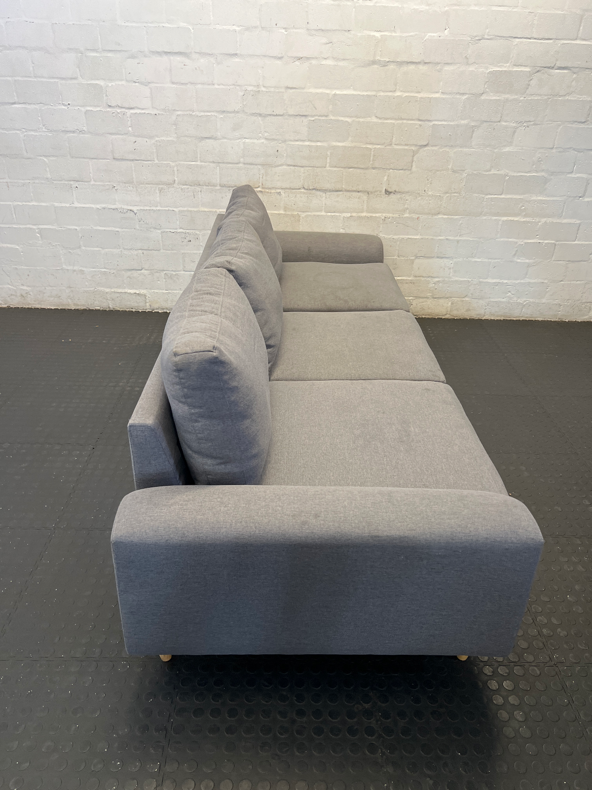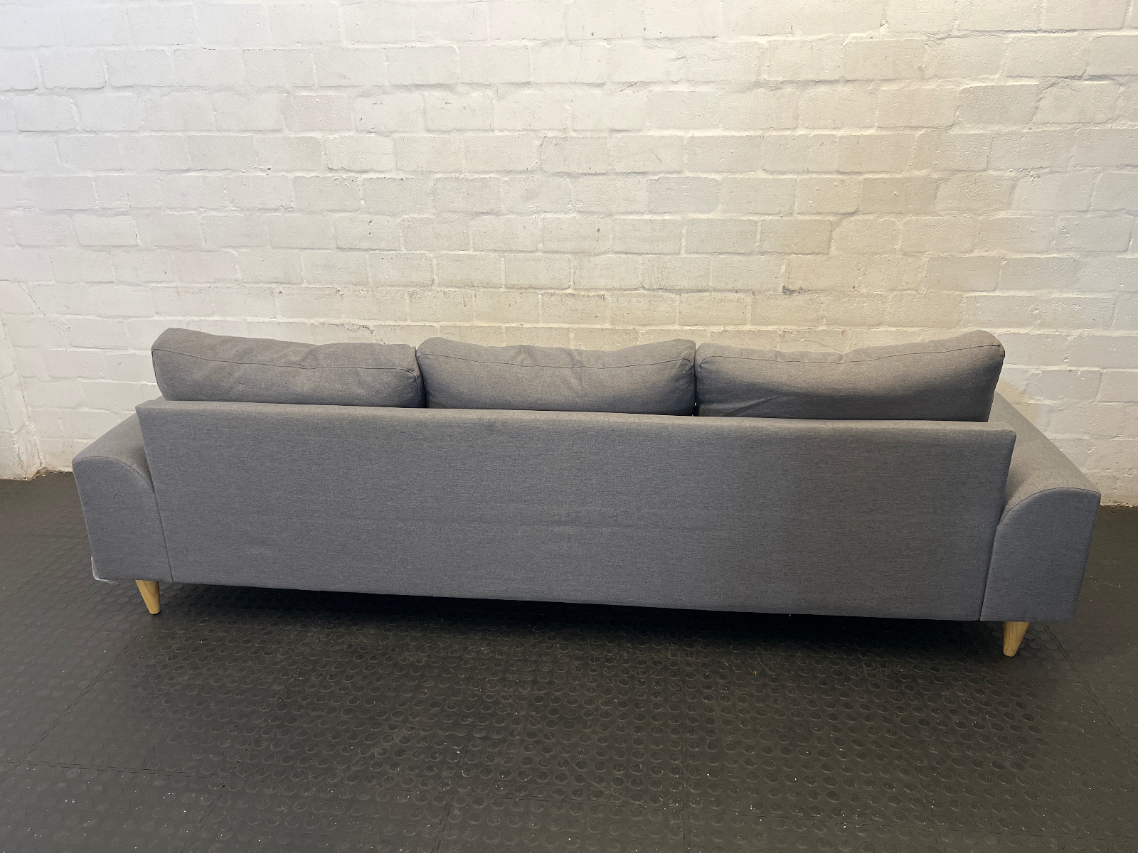 Add a touch of modern comfort to your living space with this stylish 3-seater couch in a versatile grey fabric. Its clean lines and neutral tone make it an easy fit for any contemporary home or apartment. Featuring tapered wooden legs, this piece offers a subtle Scandinavian aesthetic that is both trendy and timeless.