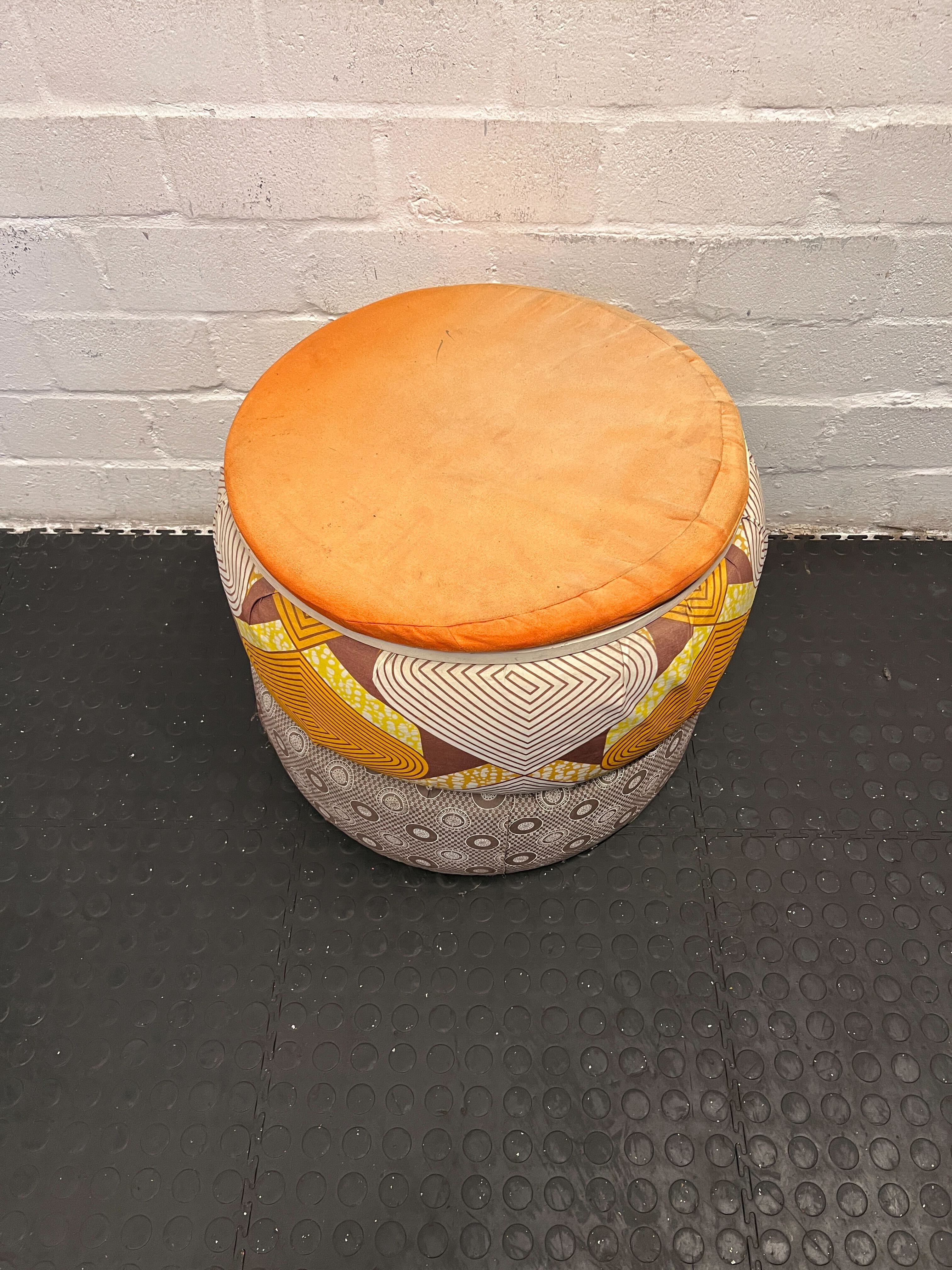 Unique Fabric and Wood Storage Ottoman - Colorful Patterns