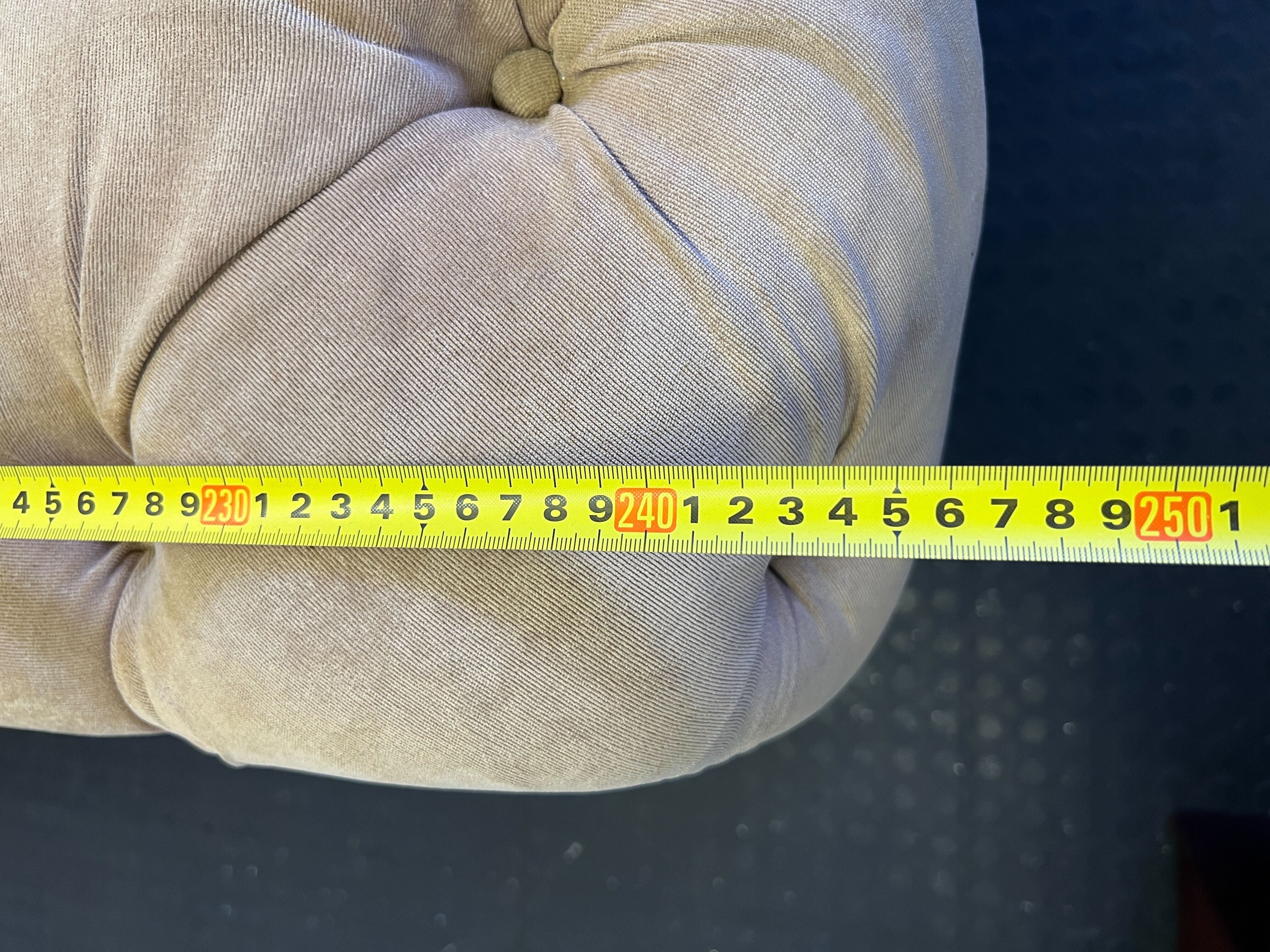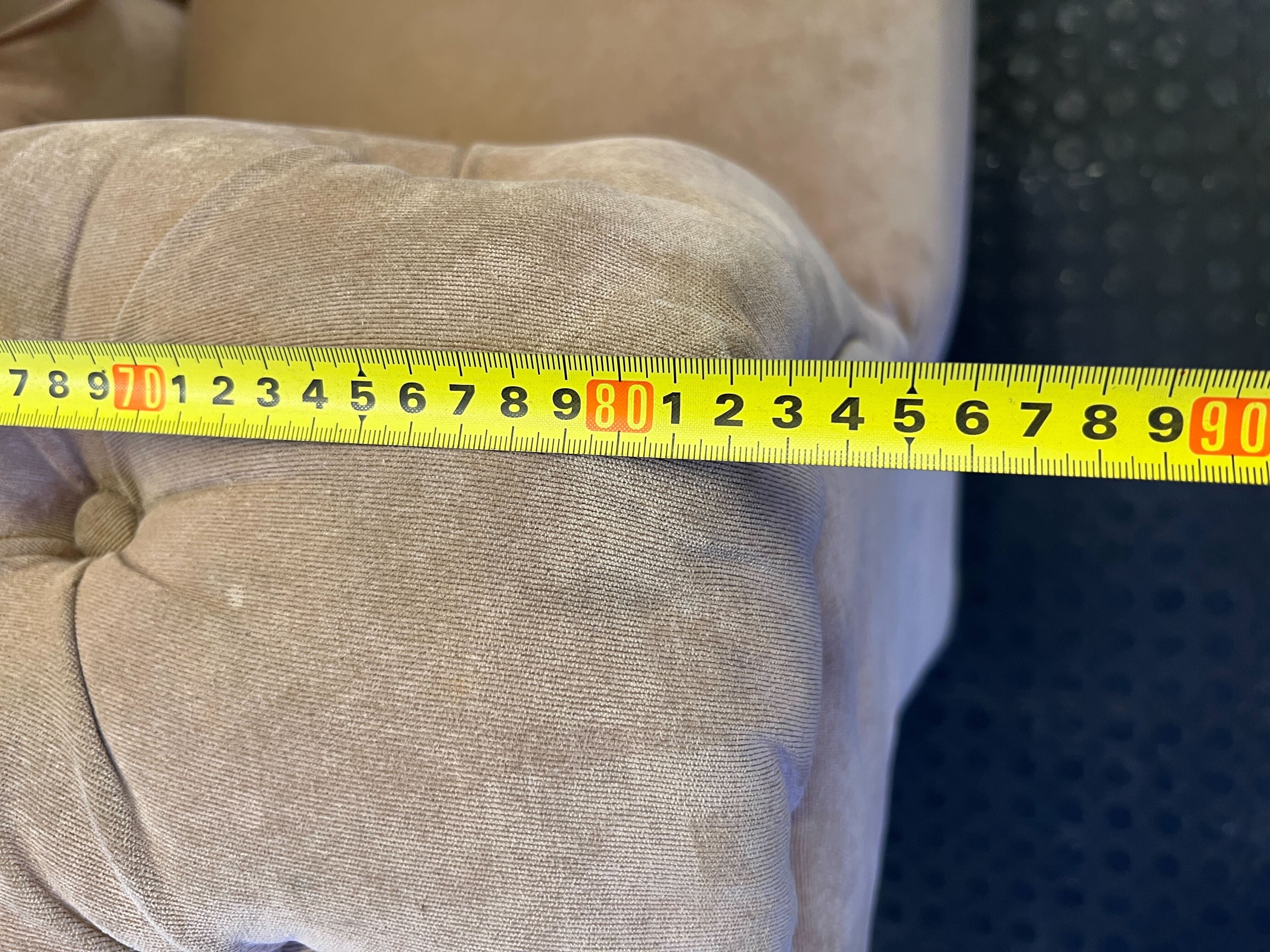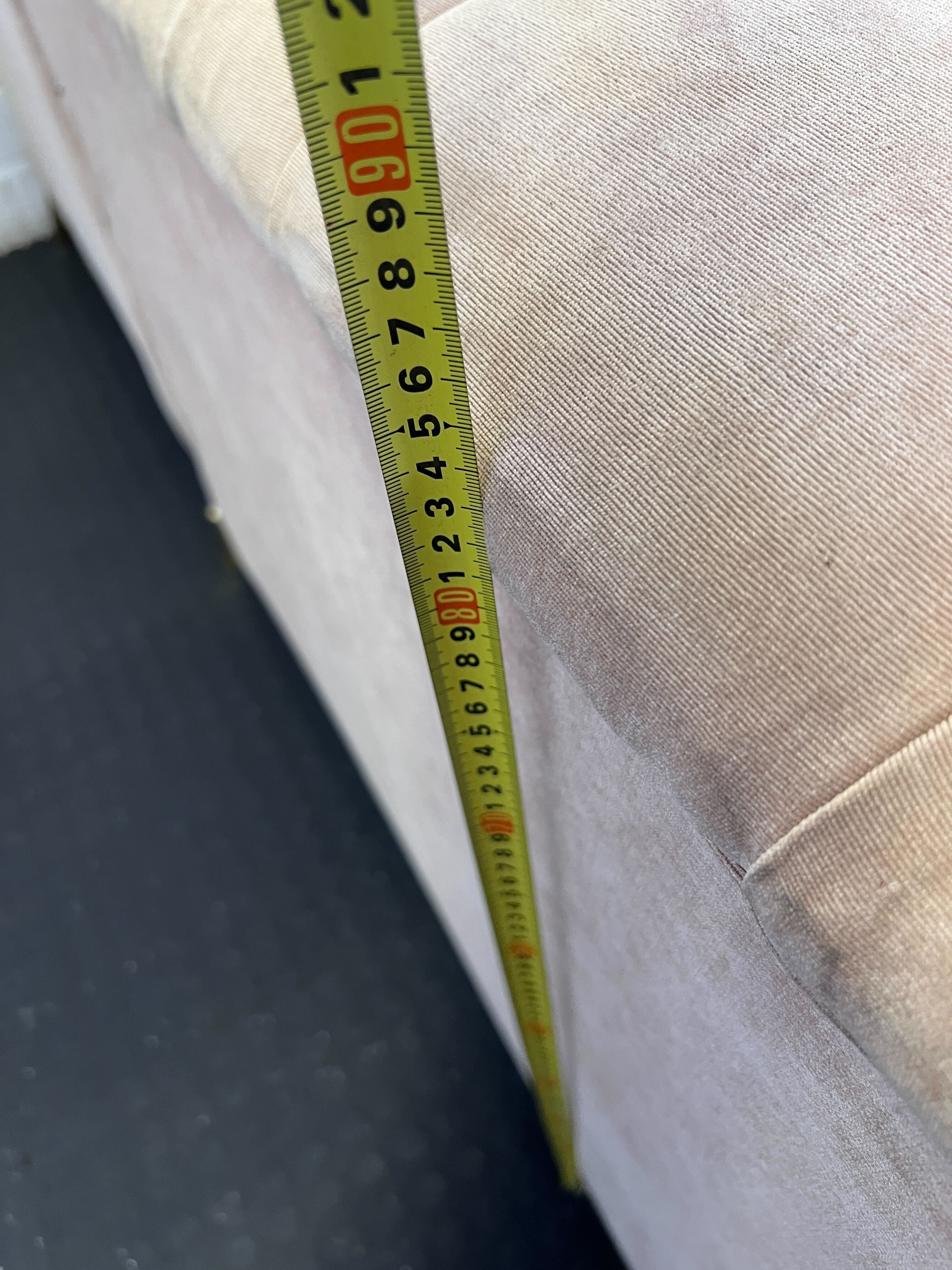 Add a touch of vintage glamour and comfort to your living space with this stunning blush pink sectional sofa. Featuring luxurious tufted upholstery and elegant gold-toned legs, this couch offers ample seating and a cozy chaise lounge perfect for relaxing. Its chic design makes it a focal point in any room, blending classic sophistication with modern style. Imagine unwinding on this beauty after a long day! ✨🛋️💎 This pre-loved sectional is in good overall condition for a second-hand piece. There are signs of gentle wear on the velvet-like fabric, including some slight discoloration and minor piling in areas consistent with regular use. The gold-toned legs may show some minor scuffs or tarnishing. Please review images carefully for details.