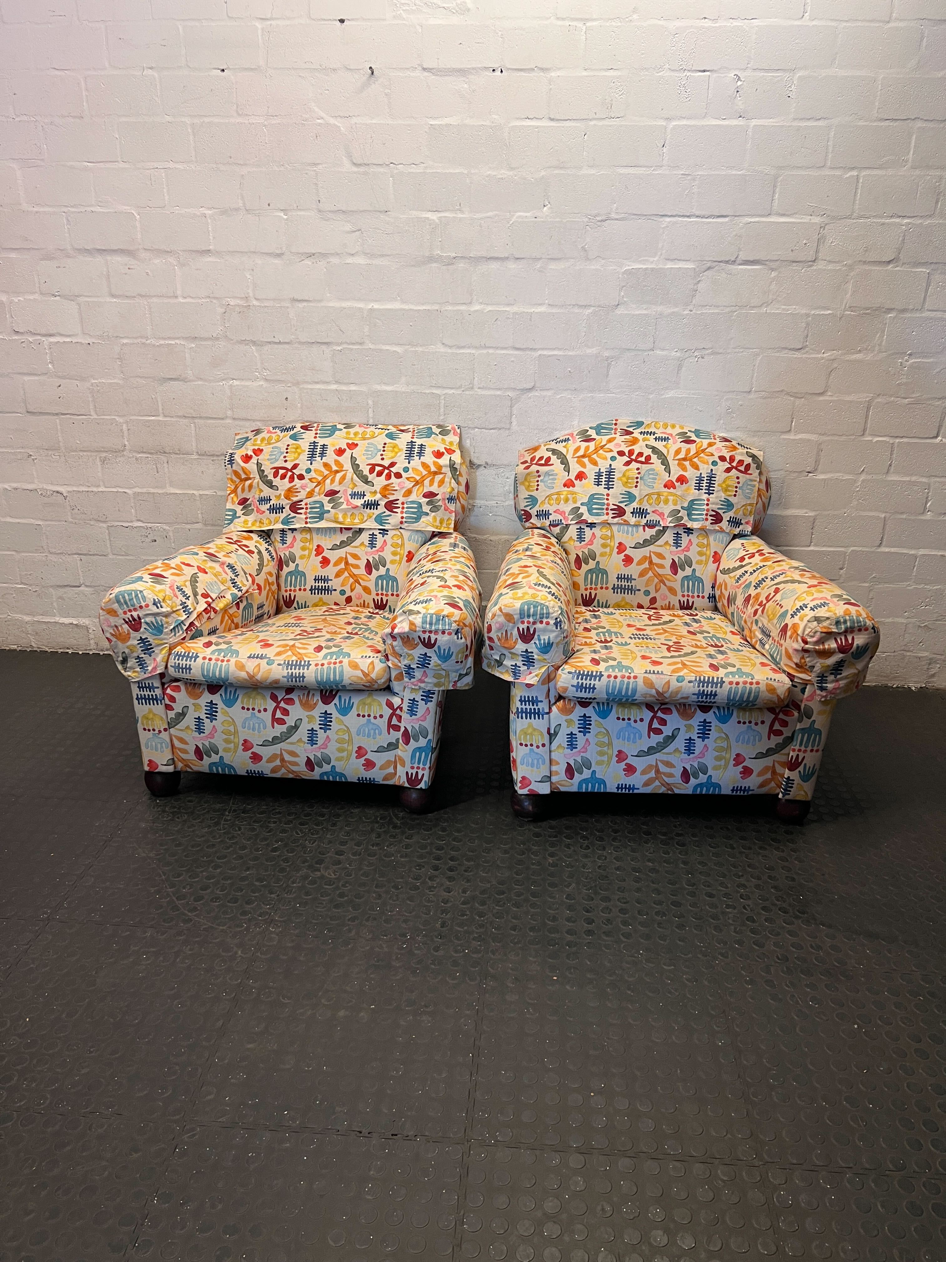 Bring a splash of joy and comfort to any child's room or play area with this delightful armchair! ✨ Upholstered in a vibrant fabric featuring a whimsical botanical print with colorful leaves and abstract shapes, this chair is sure to be a favorite spot for reading, relaxing, or imaginative play. Its sturdy design offers a cozy retreat, while the cheerful pattern adds a playful touch to your home decor. Perfect for nurseries, kids' bedrooms, or a lively living room corner! 🛋️ This charming armchair is in good pre-loved condition. The colorful fabric remains vibrant and appears clean, showing only minor signs of use consistent with a gently enjoyed item. There are no major tears or stains visible. The structure is solid and ready for its next little owner! 💎