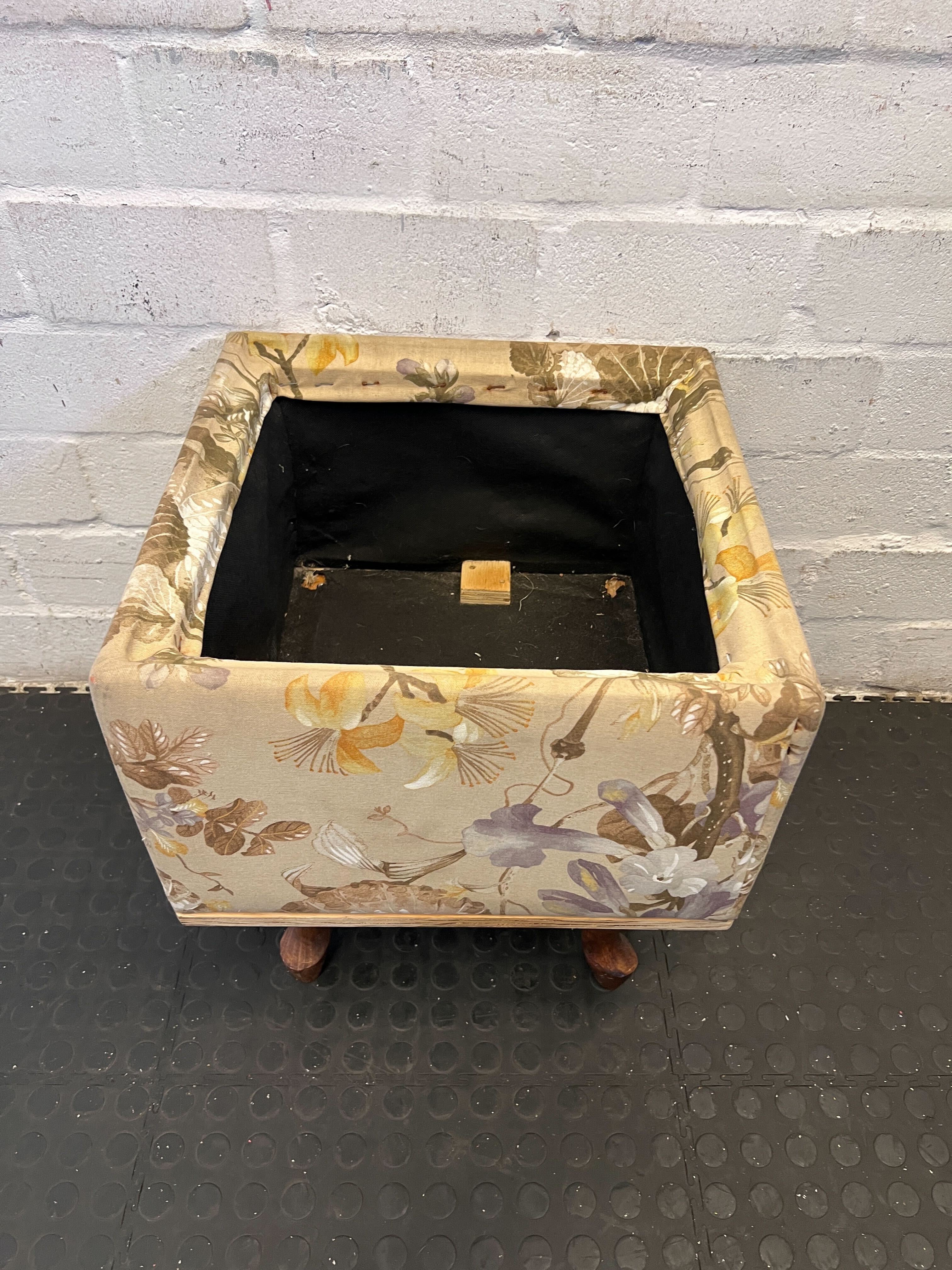 Charming Floral Upholstered Footstool with Wooden Legs