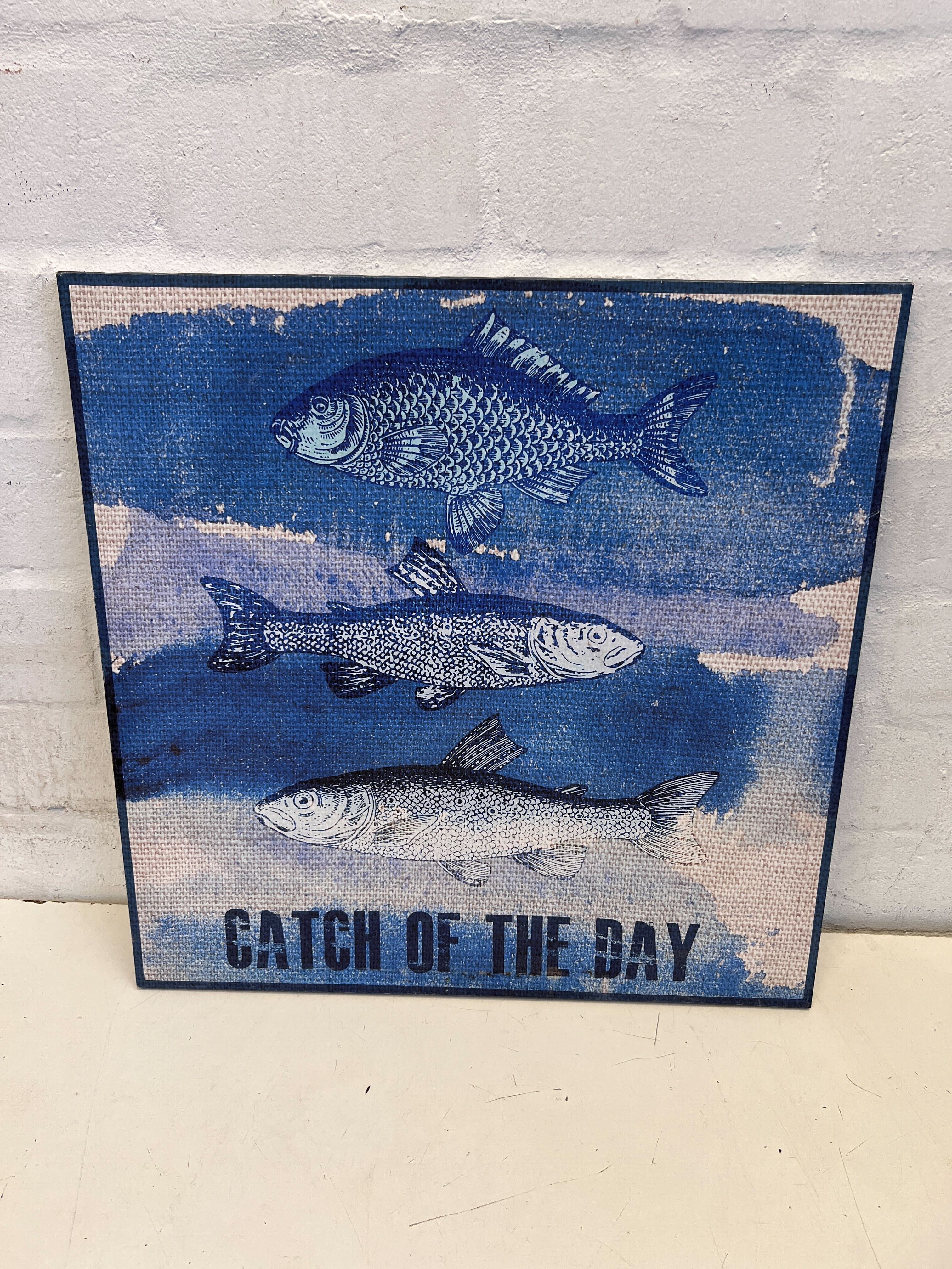 A56487 Catch of the Day: Ocean’s Blue Symphony," beautifully captures the timeless charm of the sea and its bounty. With a harmonious blend of deep blues and textured brushstrokes, it evokes the calm yet mysterious rhythm of ocean life. The trio of intricately detailed fish, set against a wave-like background, symbolizes abundance, serenity, and the simple pleasures of coastal living. Perfect for any space, this piece brings a refreshing touch of maritime spirit and artistic elegance to the home.