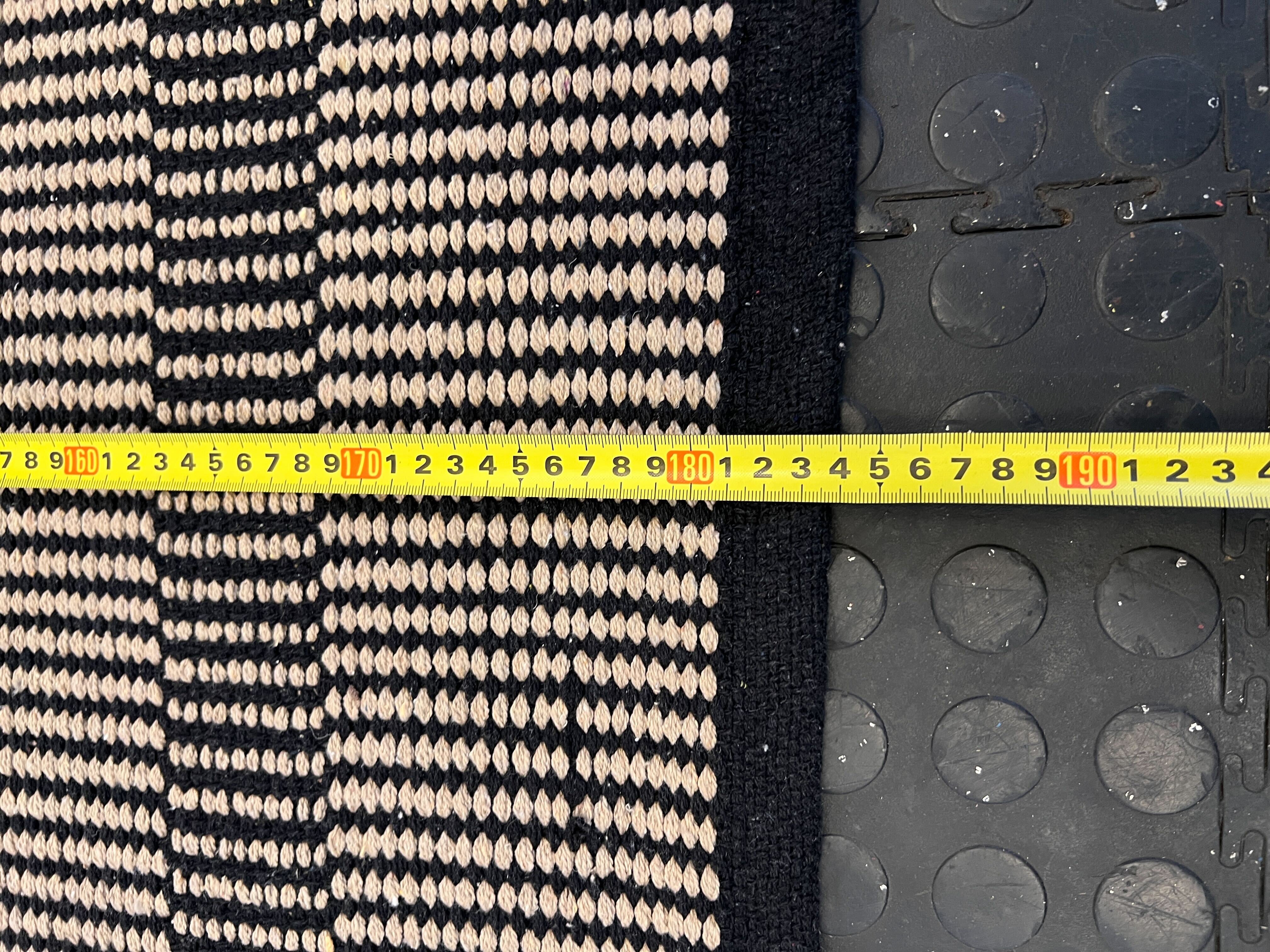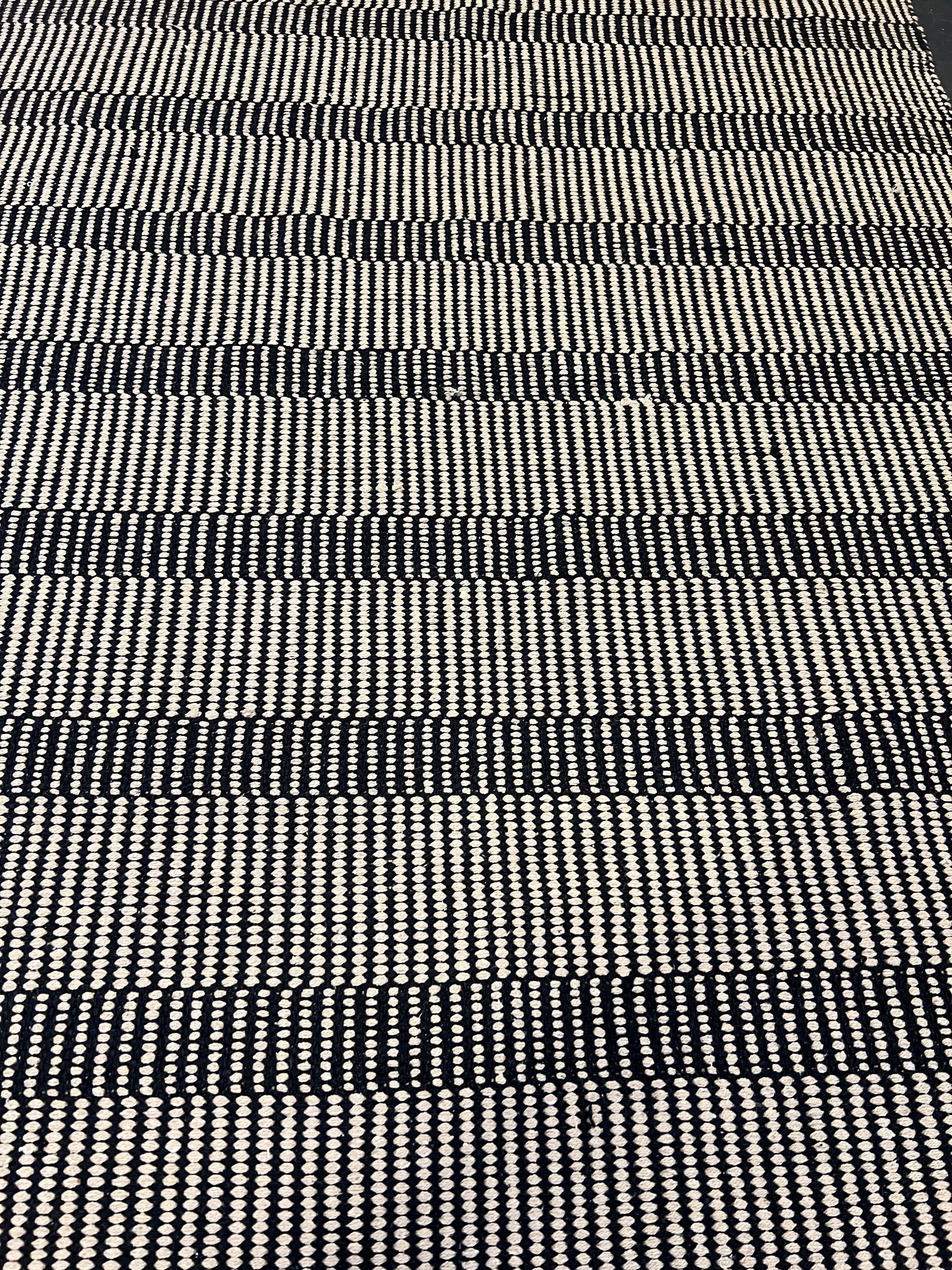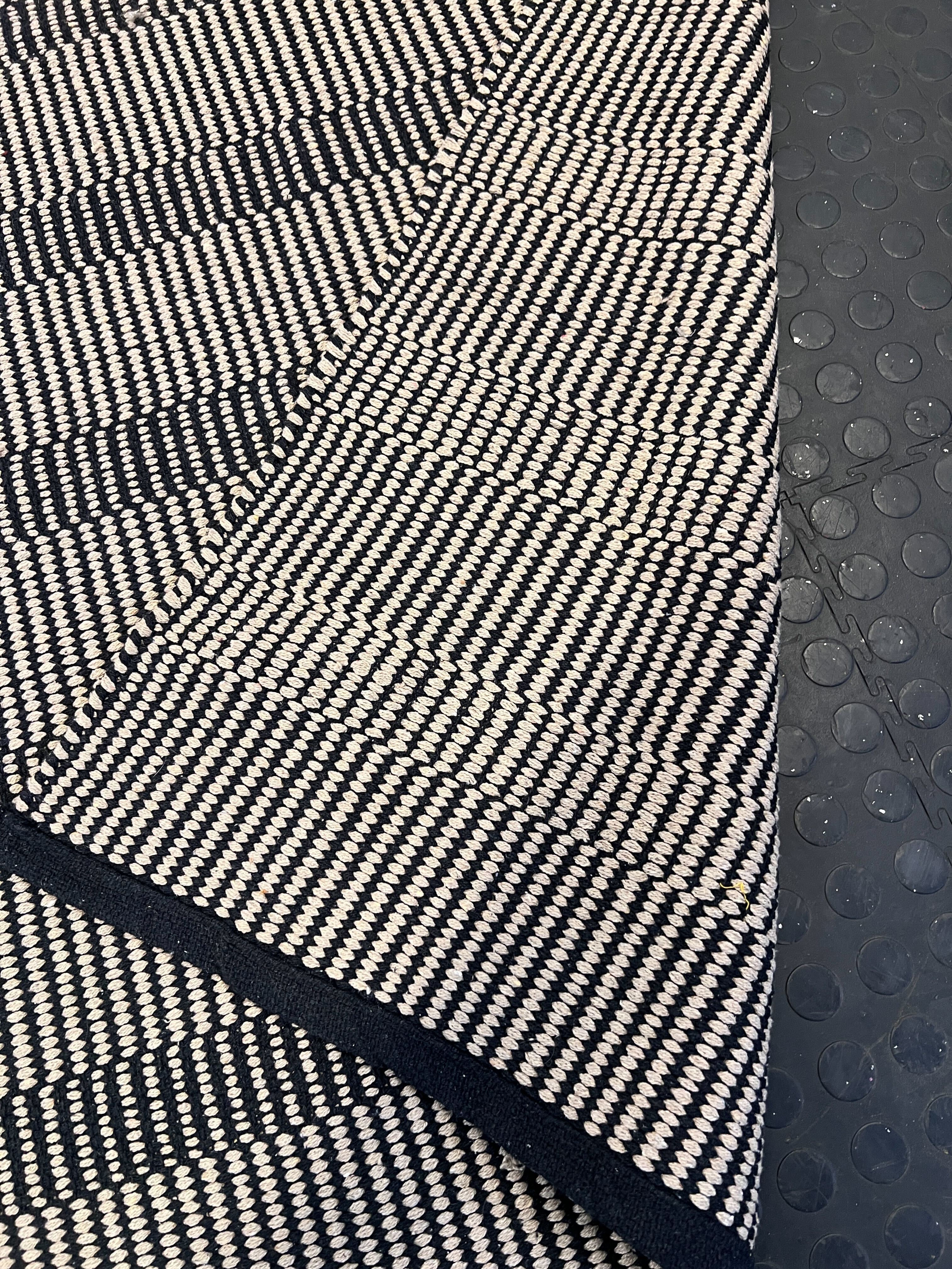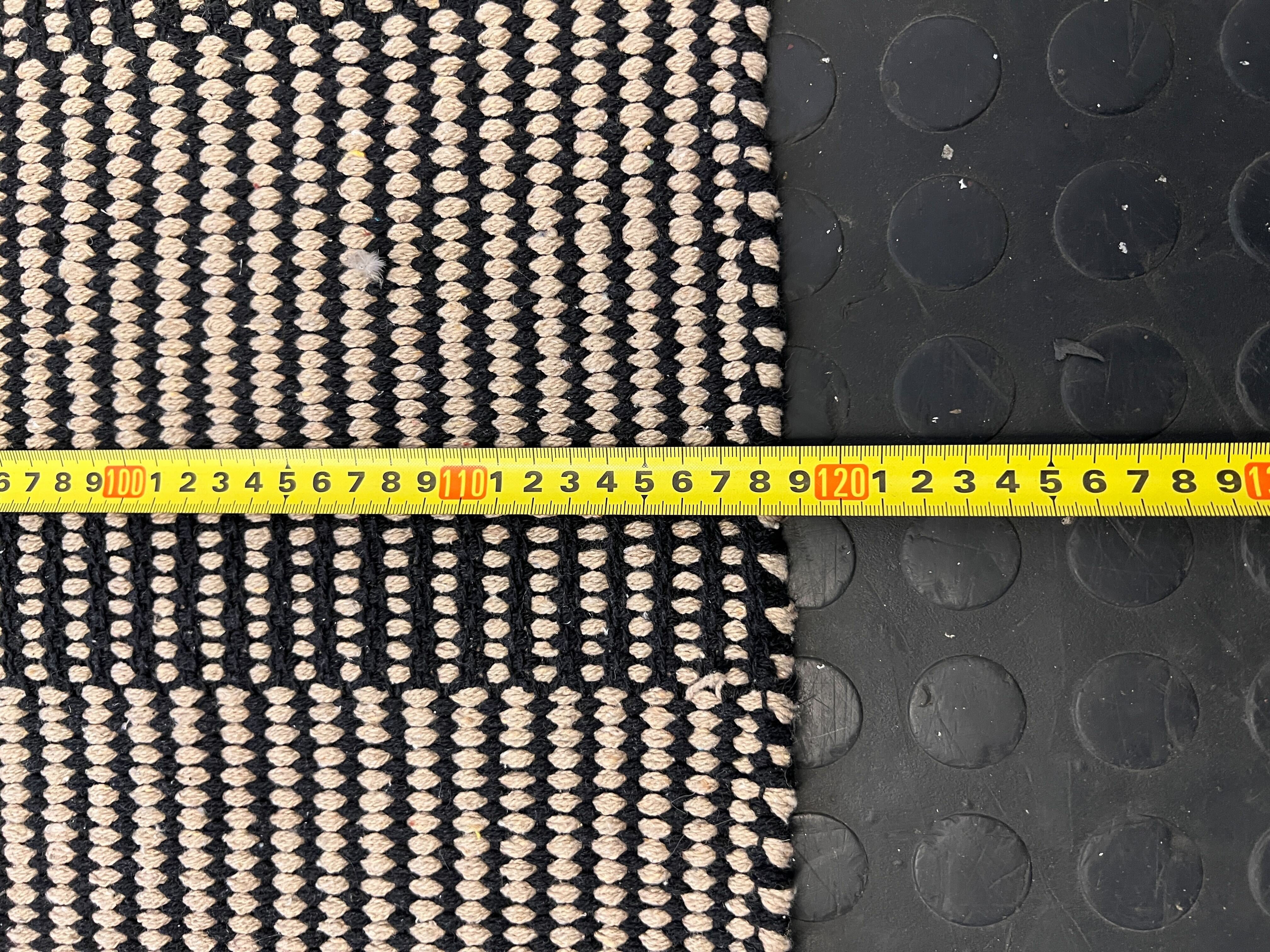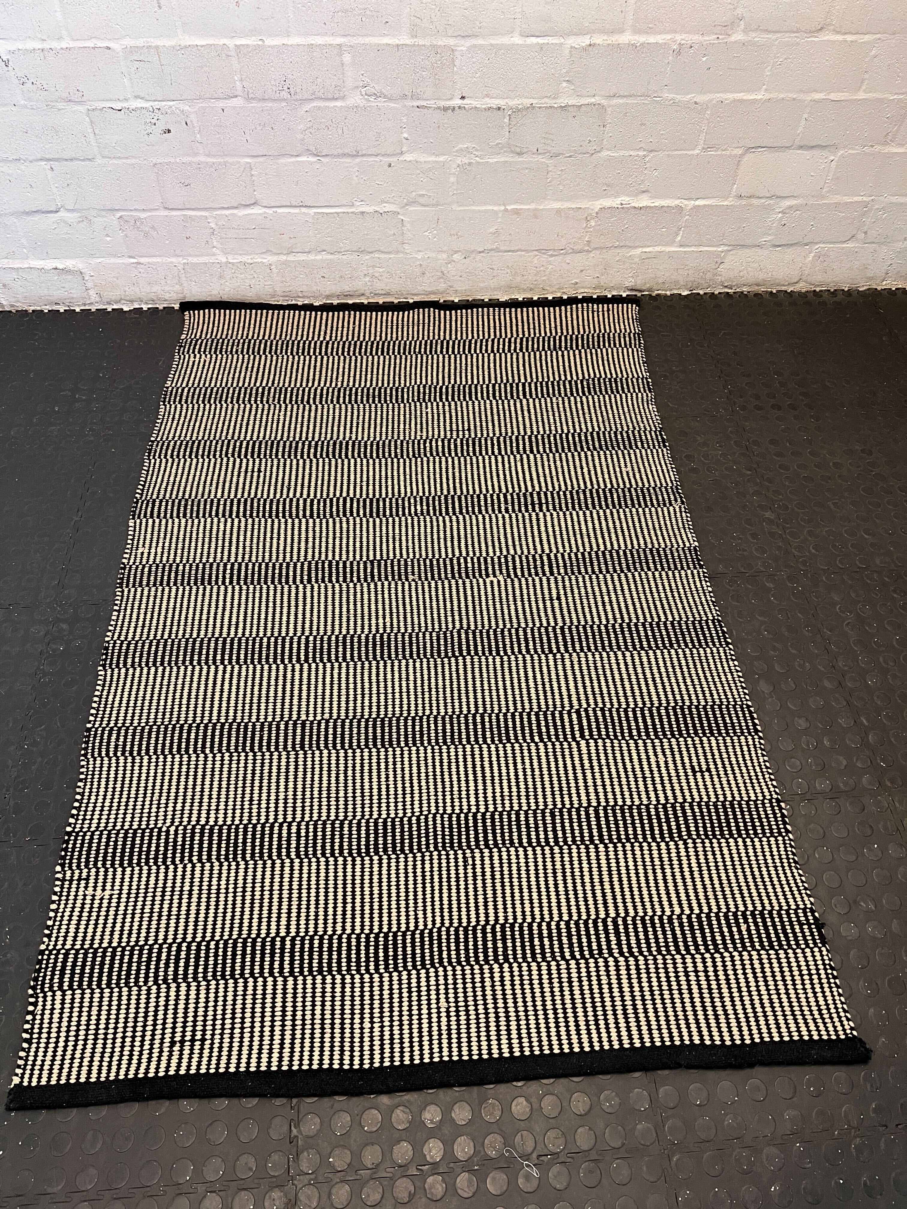 Stylish Black and White Woven Area Rug - Minimalist Design, Slight Wear