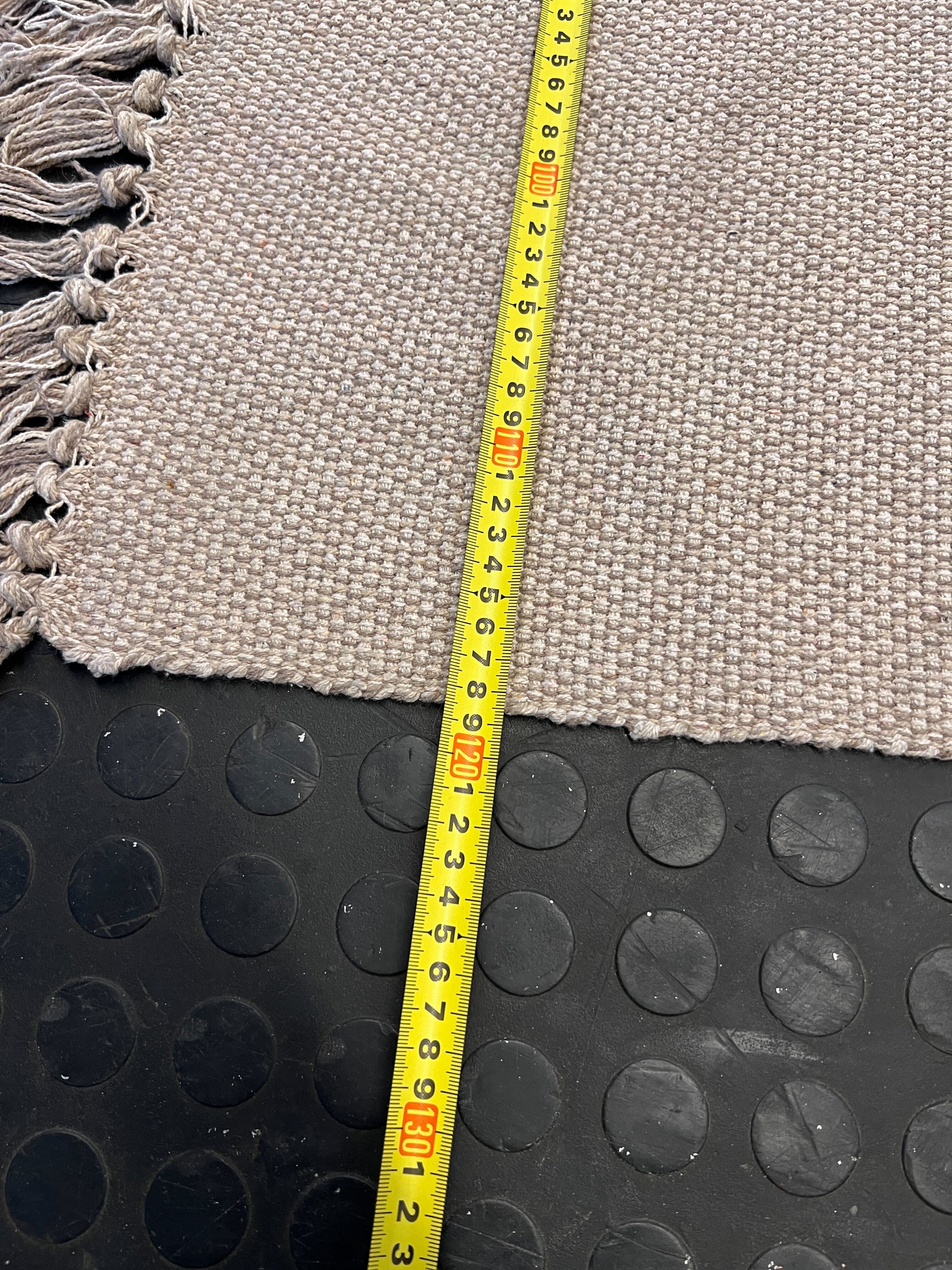 Natural Beige Woven Area Rug with Fringed Edges - Great Condition