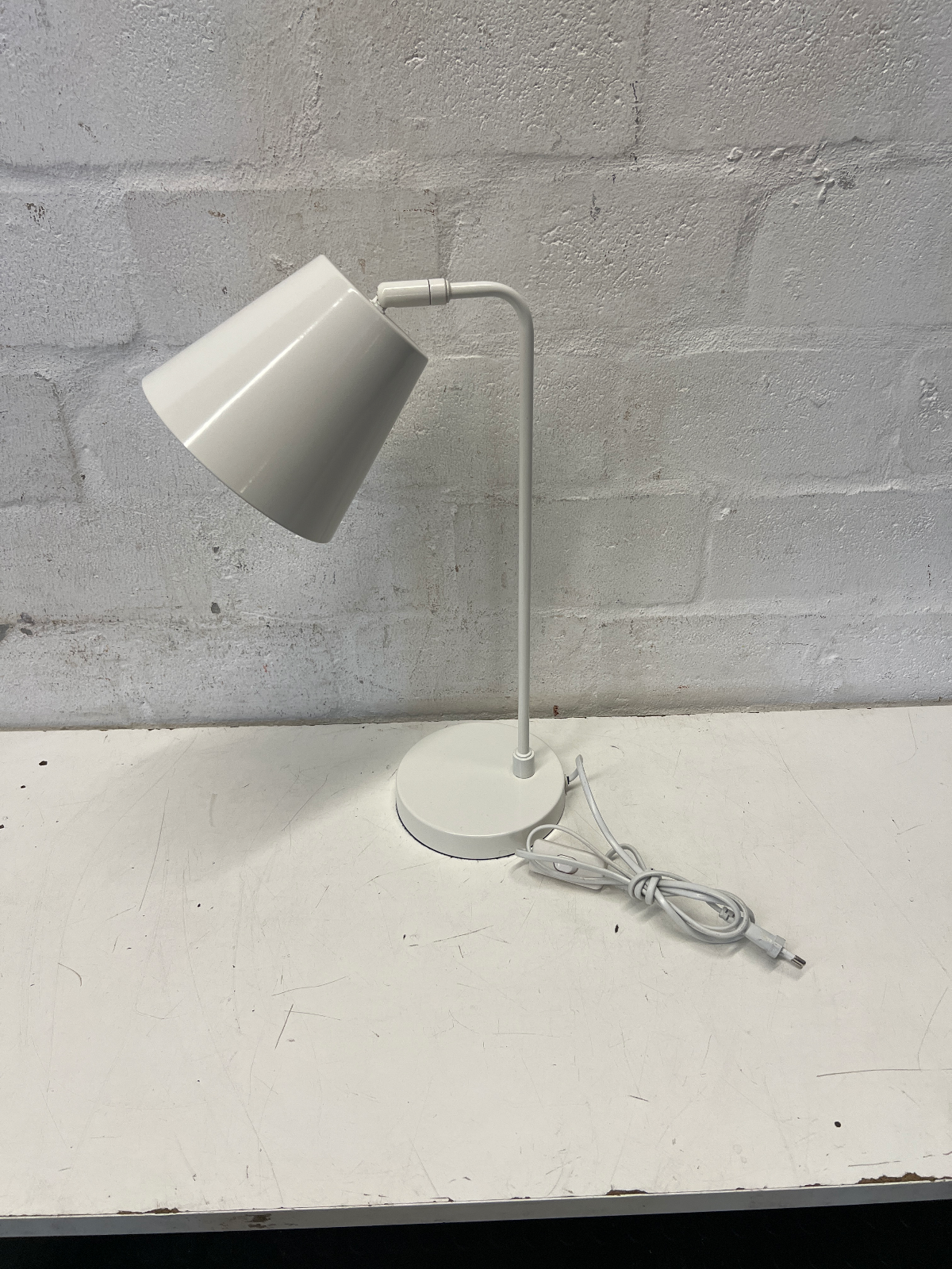 Brighten up your workspace or bedside with this pair of minimalist white metal desk lamps. Featuring a clean, industrial-inspired design, these lamps offer a sleek aesthetic that fits perfectly with modern, Scandi, or minimalist decor styles. Their slender profiles and neutral white finish make them versatile additions to any room in the house.