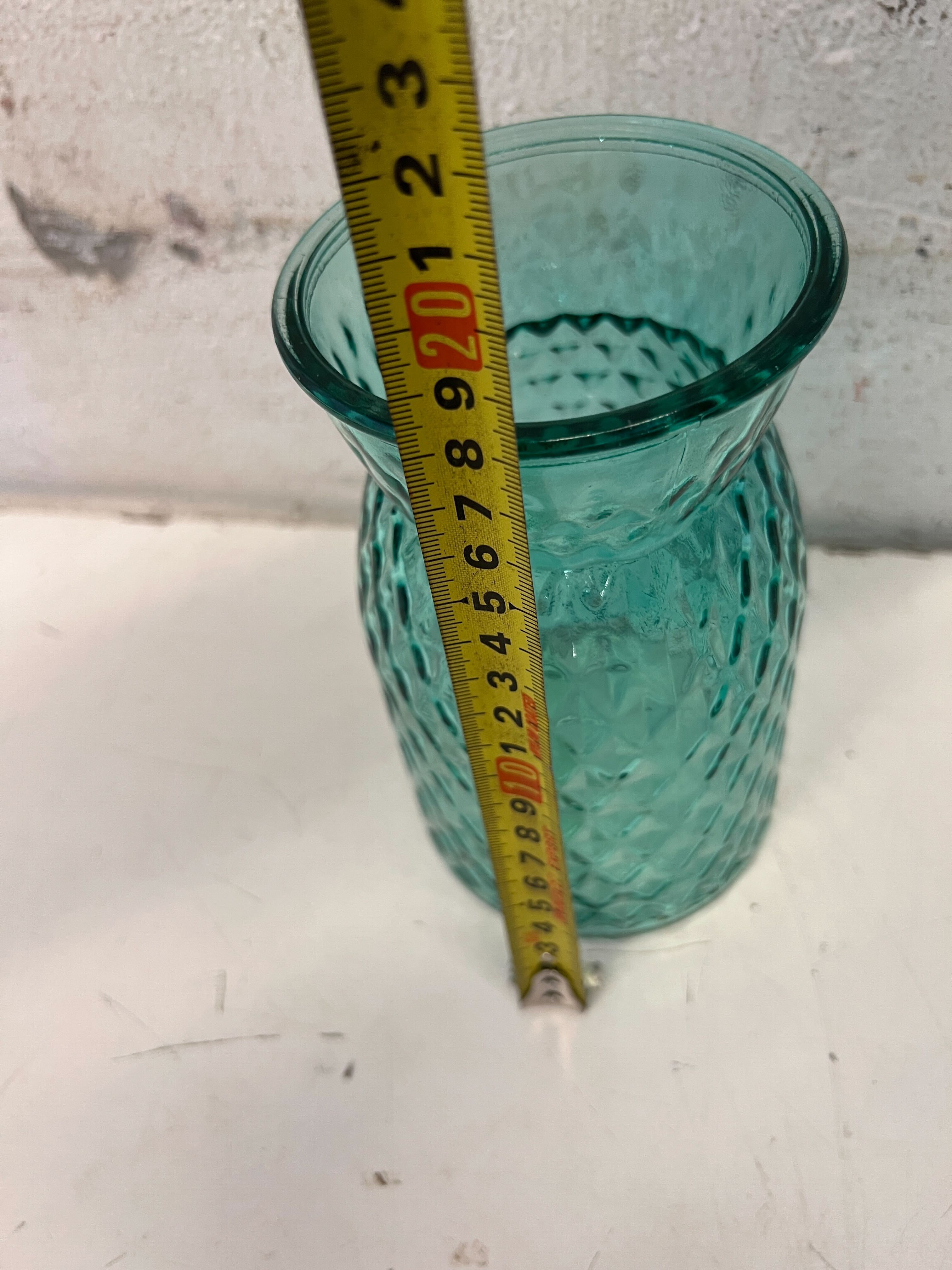 Add a pop of serene color and elegant texture to your home with this charming teal glass vase! ✨ Its distinctive diamond-patterned surface catches the light beautifully, making it a delightful accent piece for any room. Perfect for displaying a small bouquet of flowers, holding a votive candle, or simply standing alone as a stylish decorative ornament. This versatile piece will effortlessly enhance your living space with its vintage-inspired charm. 🌿 This lovely glass vase is in good pre-owned condition. It shows minimal signs of wear consistent with normal use, and there are no visible chips, cracks, or significant damage. It's ready to bring a touch of elegance to its new home!
