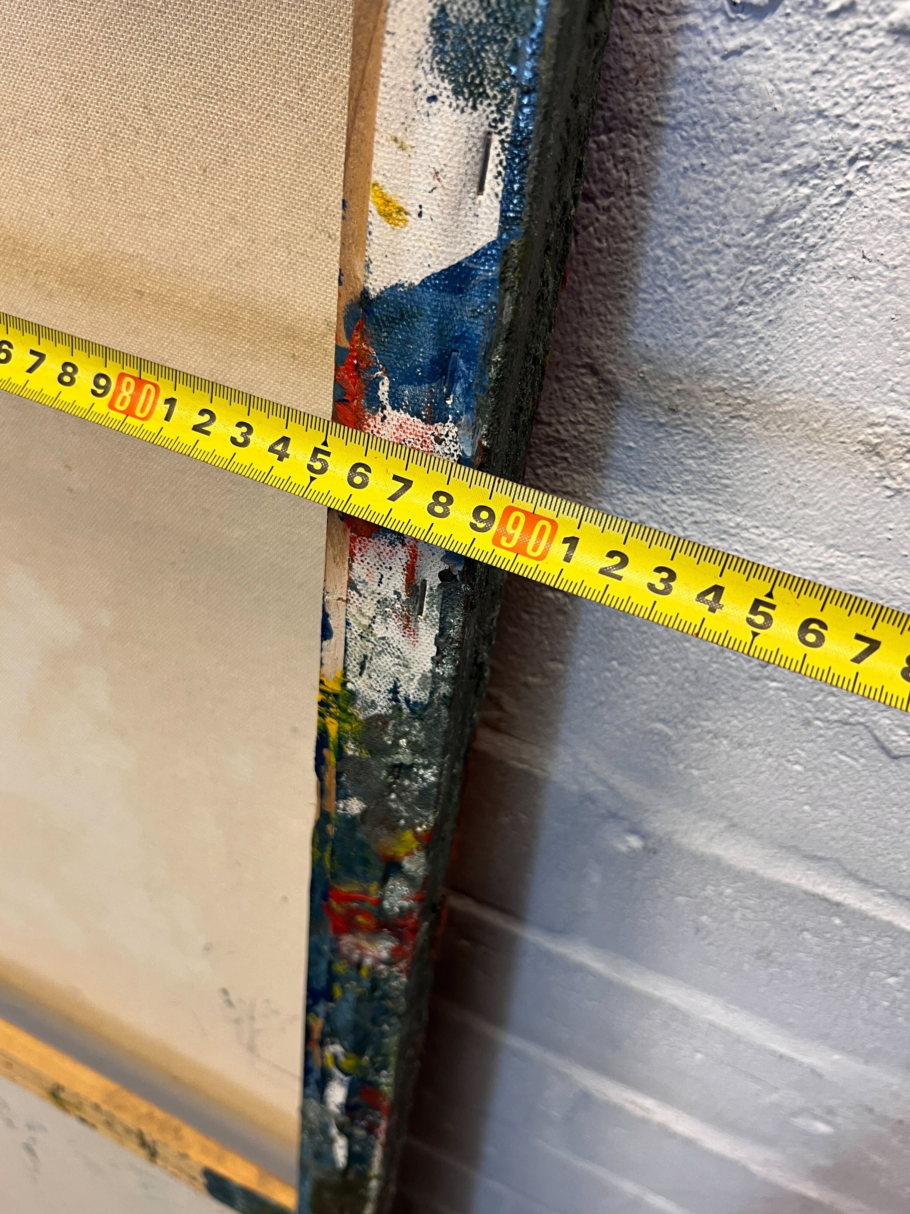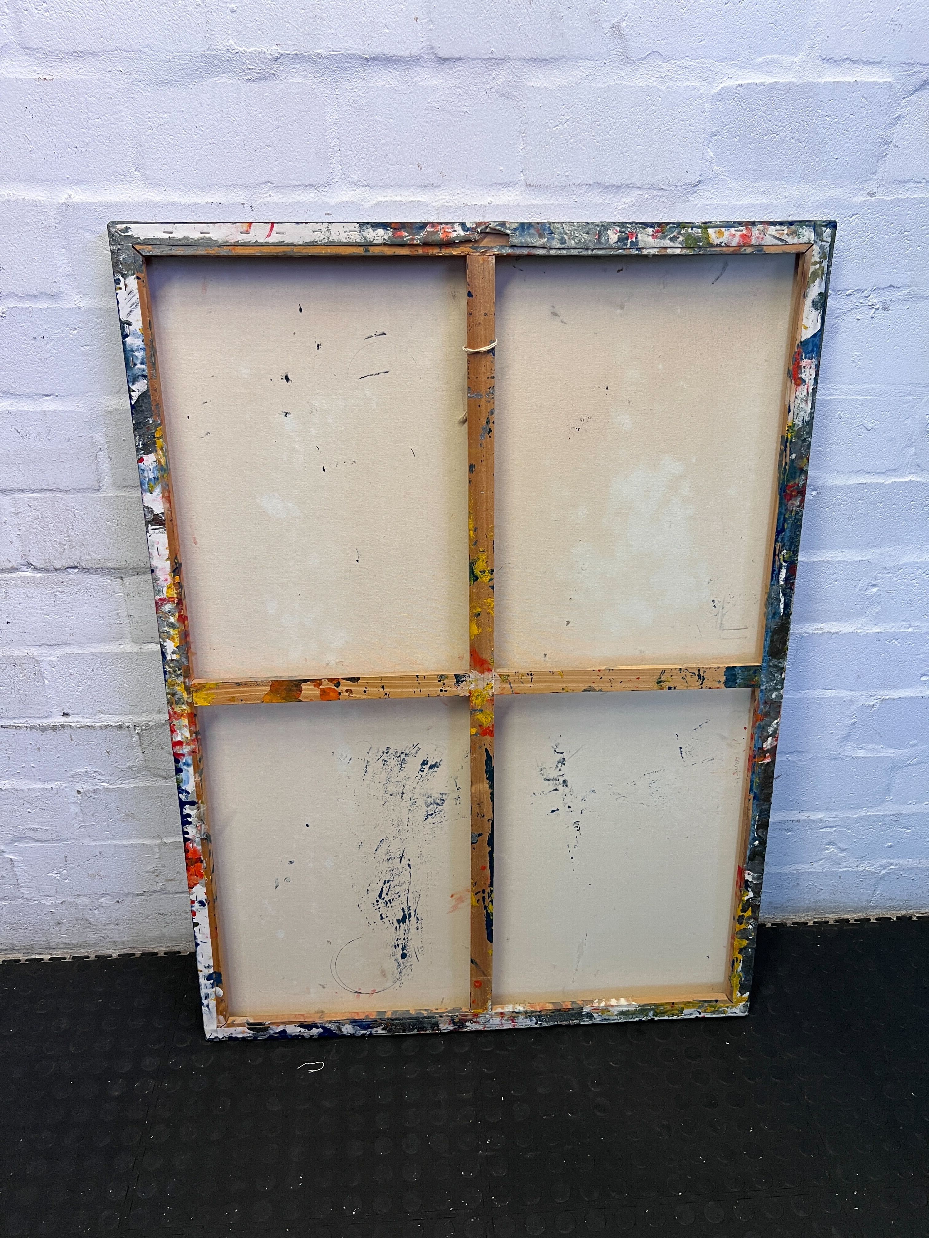 Infuse your space with vibrant energy with this captivating abstract artwork! ✨ Featuring a stunning blend of fiery reds, warm oranges, and bright yellows, accented with deep blues, this painting evokes a sense of dynamic movement and passion. Its expressive brushstrokes and rich texture make it a striking focal point, perfect for adding a modern touch and a splash of color to your living room, bedroom, or office. A true conversation starter that will brighten any wall! 🖼️🔥This abstract painting is in excellent pre-loved condition. The colors remain bright and vivid, and there are no visible signs of damage, tears, or significant wear to the canvas or the painted surface, as seen in the images. It's ready to bring warmth and artistry to its new home.
