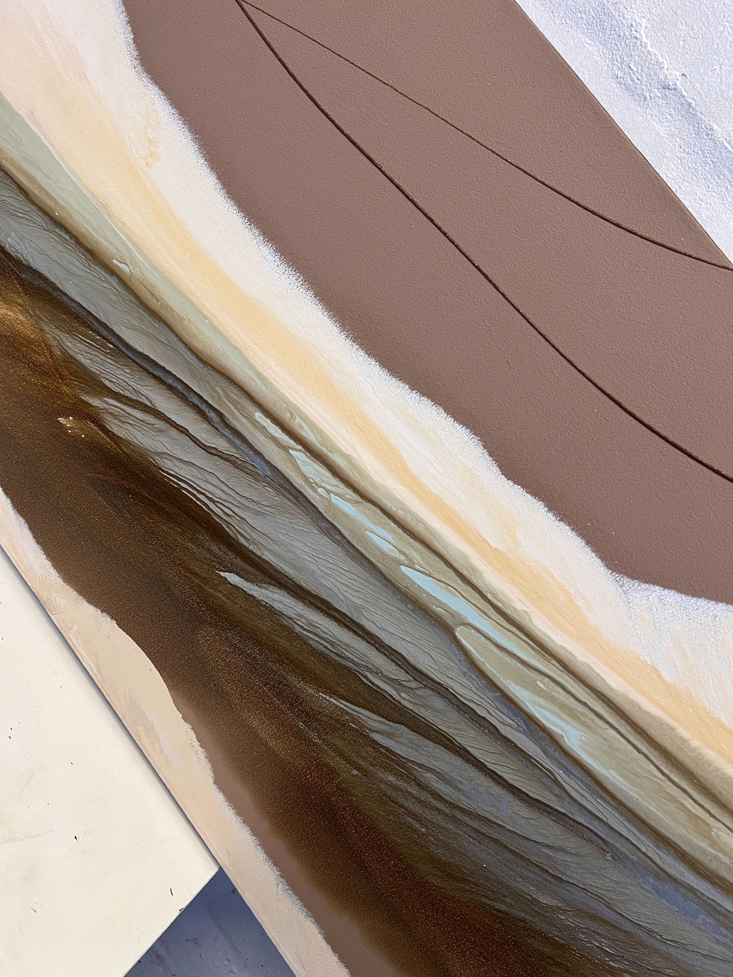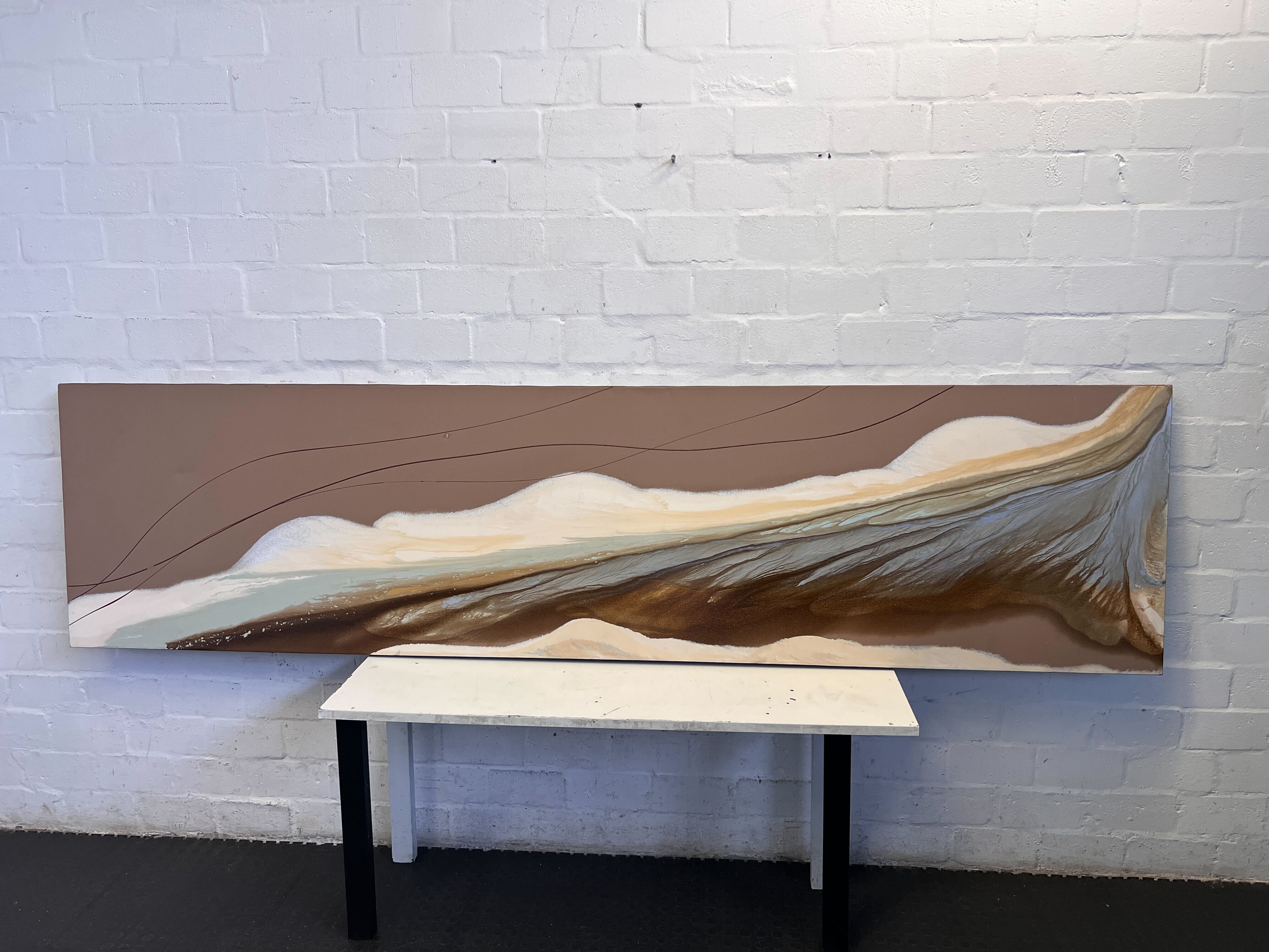 A56244 Transform your space with this captivating abstract canvas art, featuring a tranquil flow of earthy tones. This contemporary piece showcases a beautiful blend of deep browns, soft beiges, and creamy whites, accented by subtle hints of light blue and grey, reminiscent of a serene landscape or a geological formation. Its long, horizontal format makes it an ideal statement piece for a living room, dining area, or even a sophisticated office, bringing a sense of calm and natural elegance to any wall. ✨#AbstractArt #WallArt #HomeDecor #EarthyTones #ContemporaryArt #2ndhandwarehouse 🧡