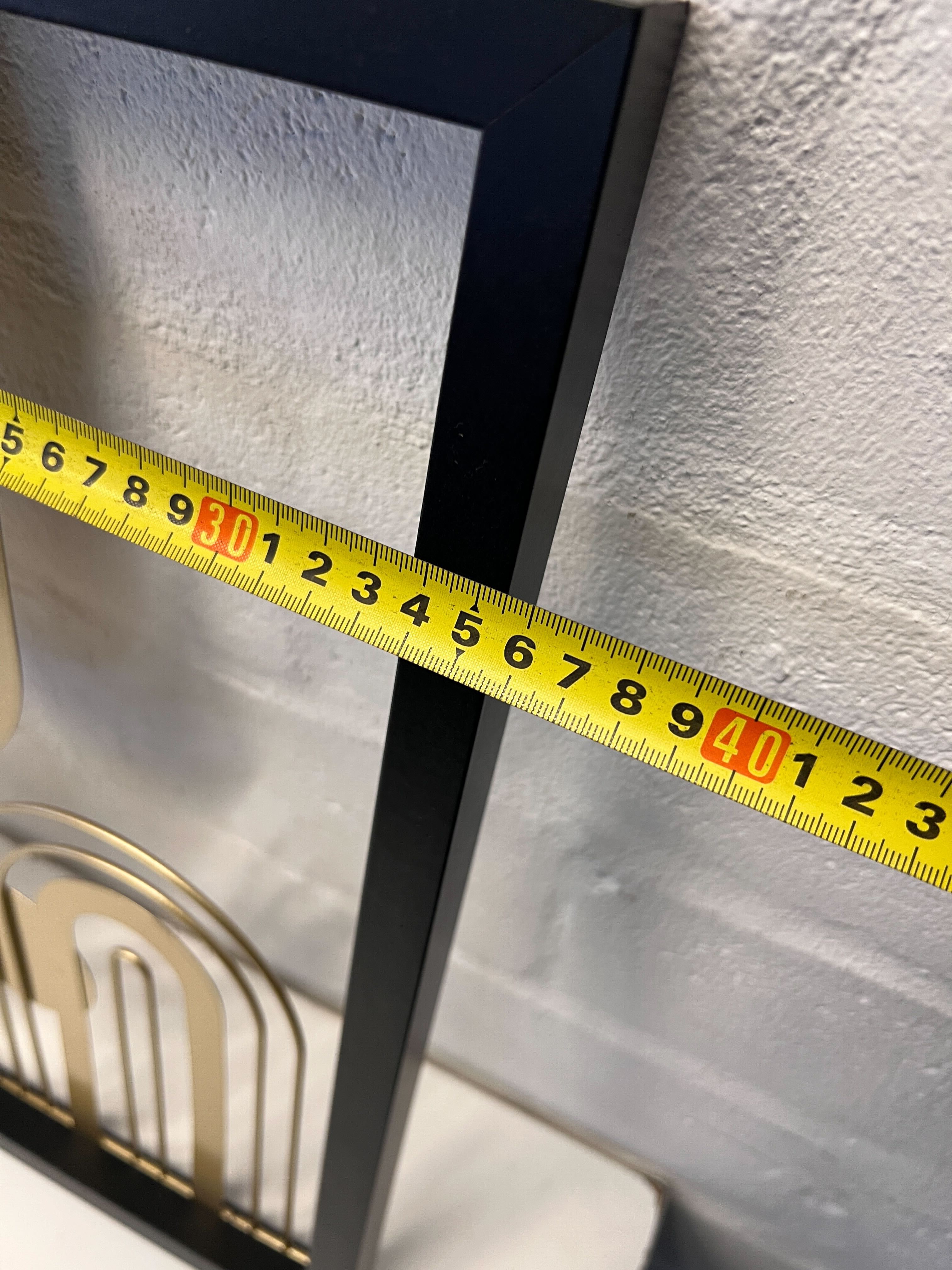 A55049 🖼️ Elevate your home décor with this striking modern wall art featuring a sleek black frame and stunning gold geometric shapes. Its unique design adds a touch of sophistication to any room, making it a perfect centerpiece for your living space or office. In excellent condition, this piece is sure to be a conversation starter! 🧡 #WallArt #HomeDecor #GeometricDesign #2ndHandWarehouse