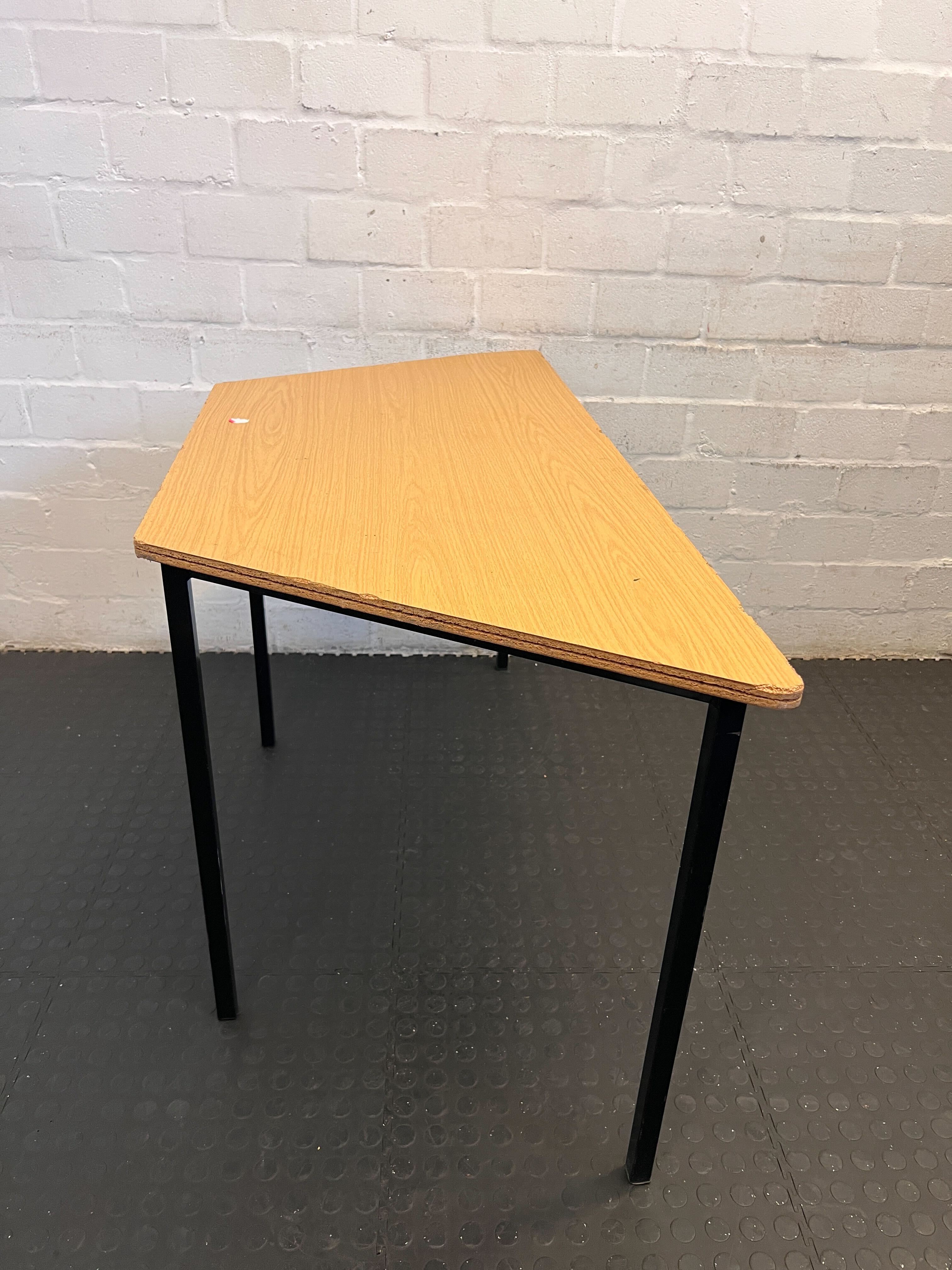 Modern Triangle-Shaped Light Oak Table with Black Legs - Minor Wear