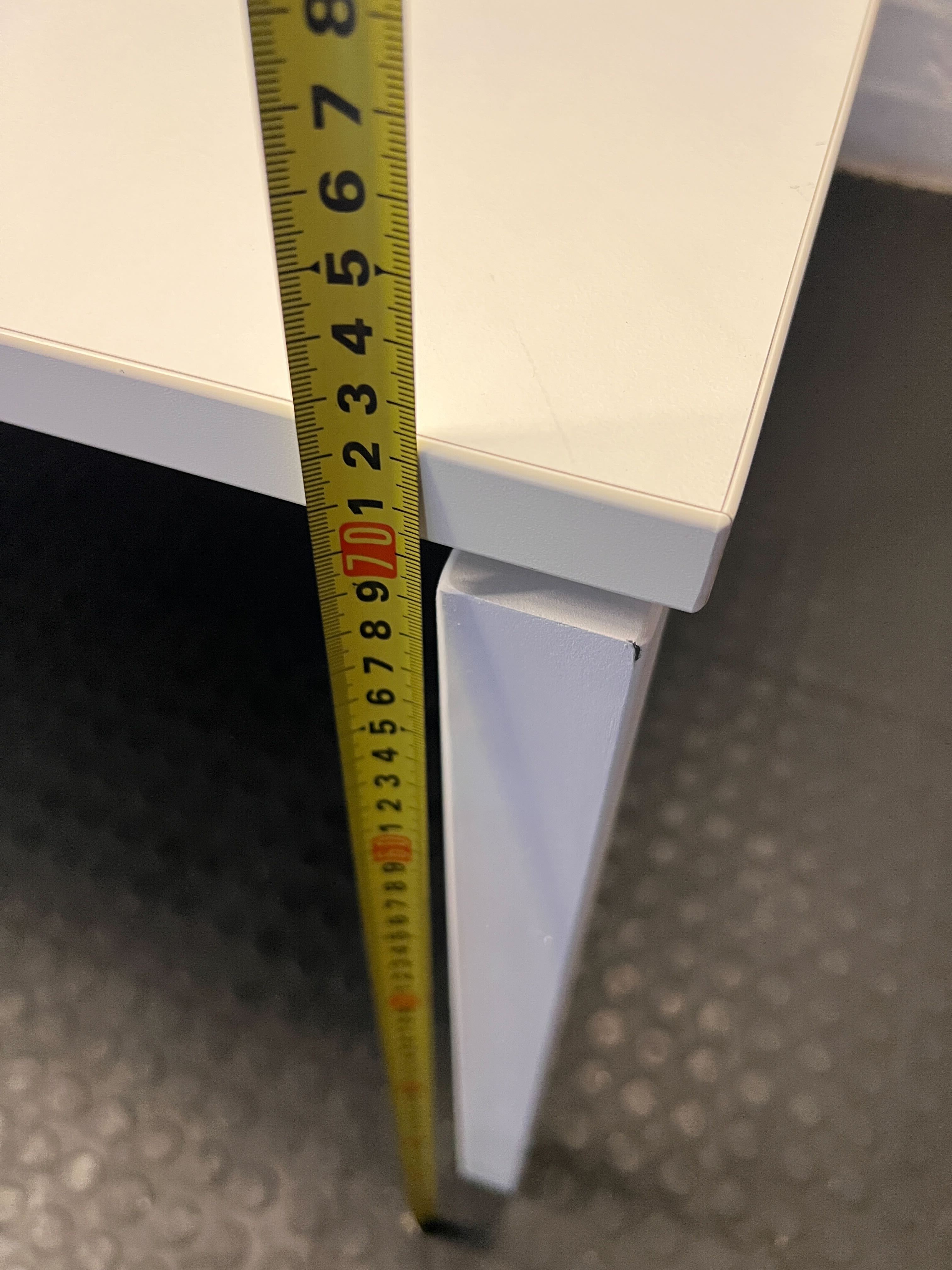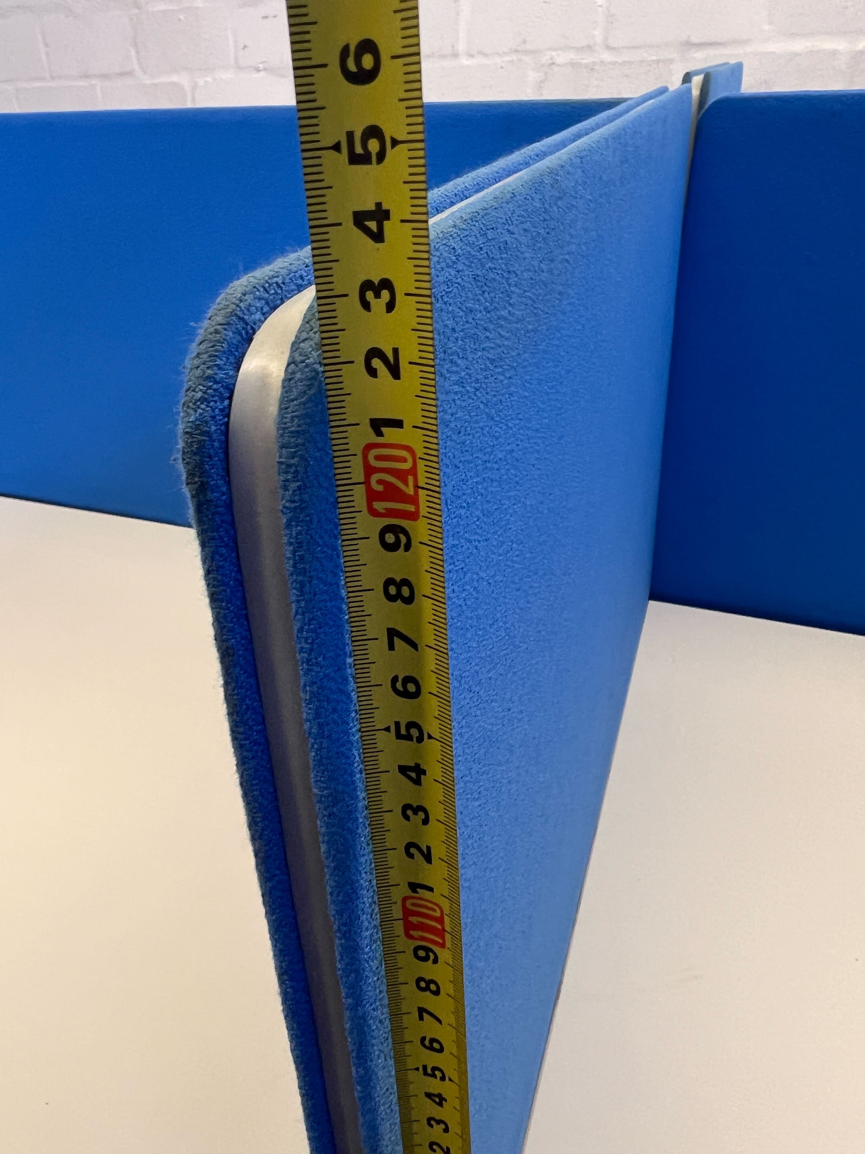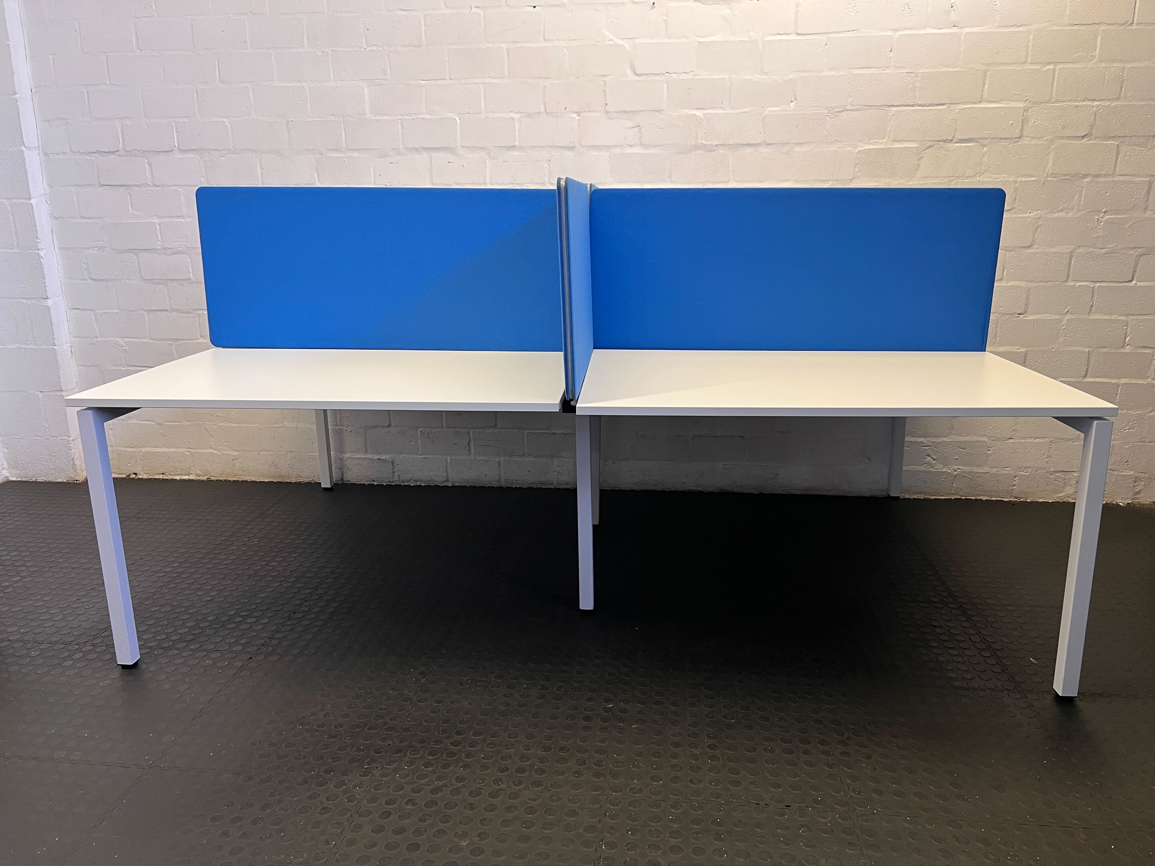 A55317 Elevate your workspace with this sleek, modern white office desk featuring vibrant blue privacy screens. Crafted from durable materials, this desk is in excellent condition with minor signs of use, making it an ideal solution for focused work or collaborative projects. Perfect for creating a productive home office setup or enhancing your business environment! 🧡