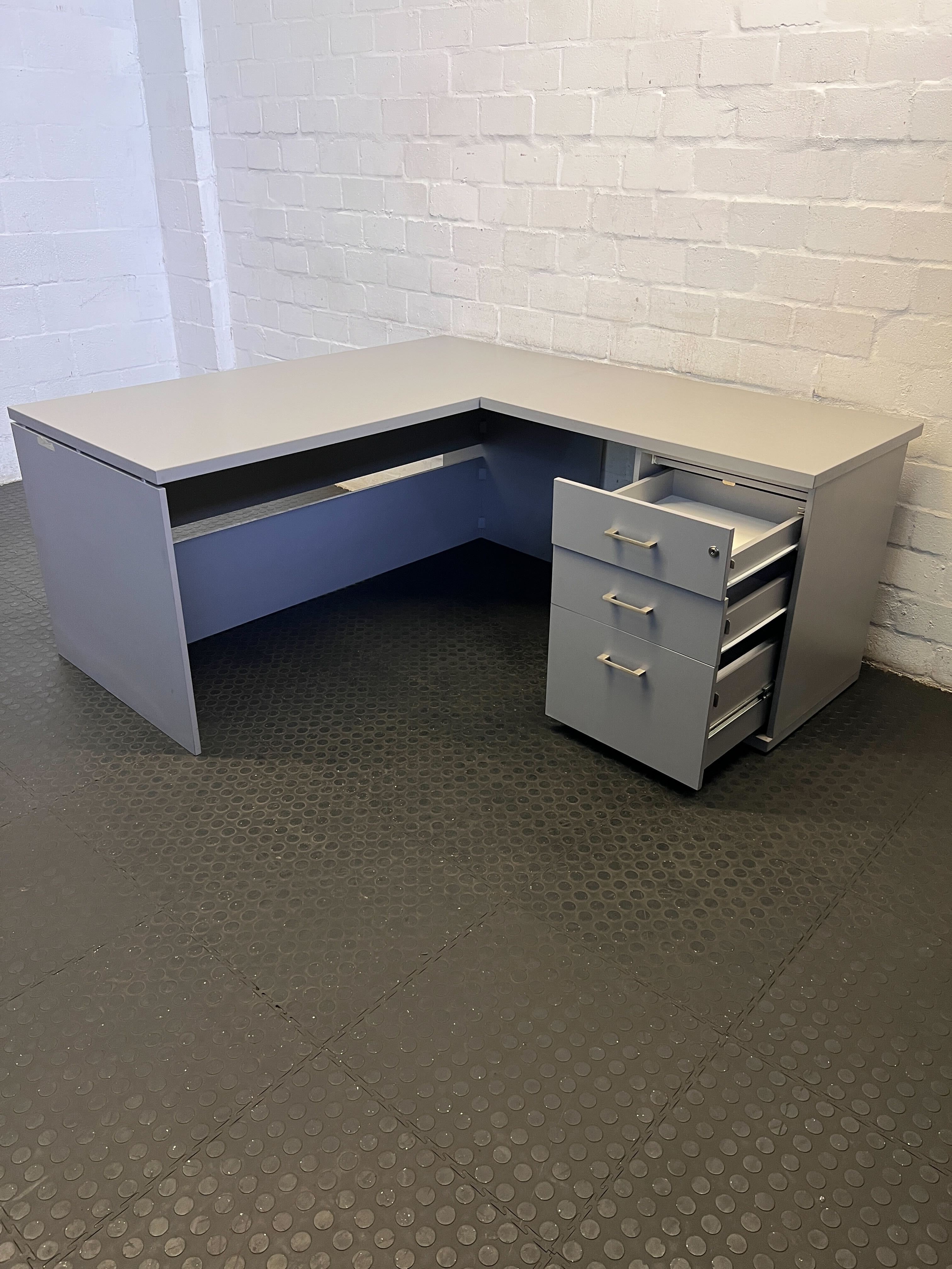 Compact Grey L-Shaped Office Desk with Storage