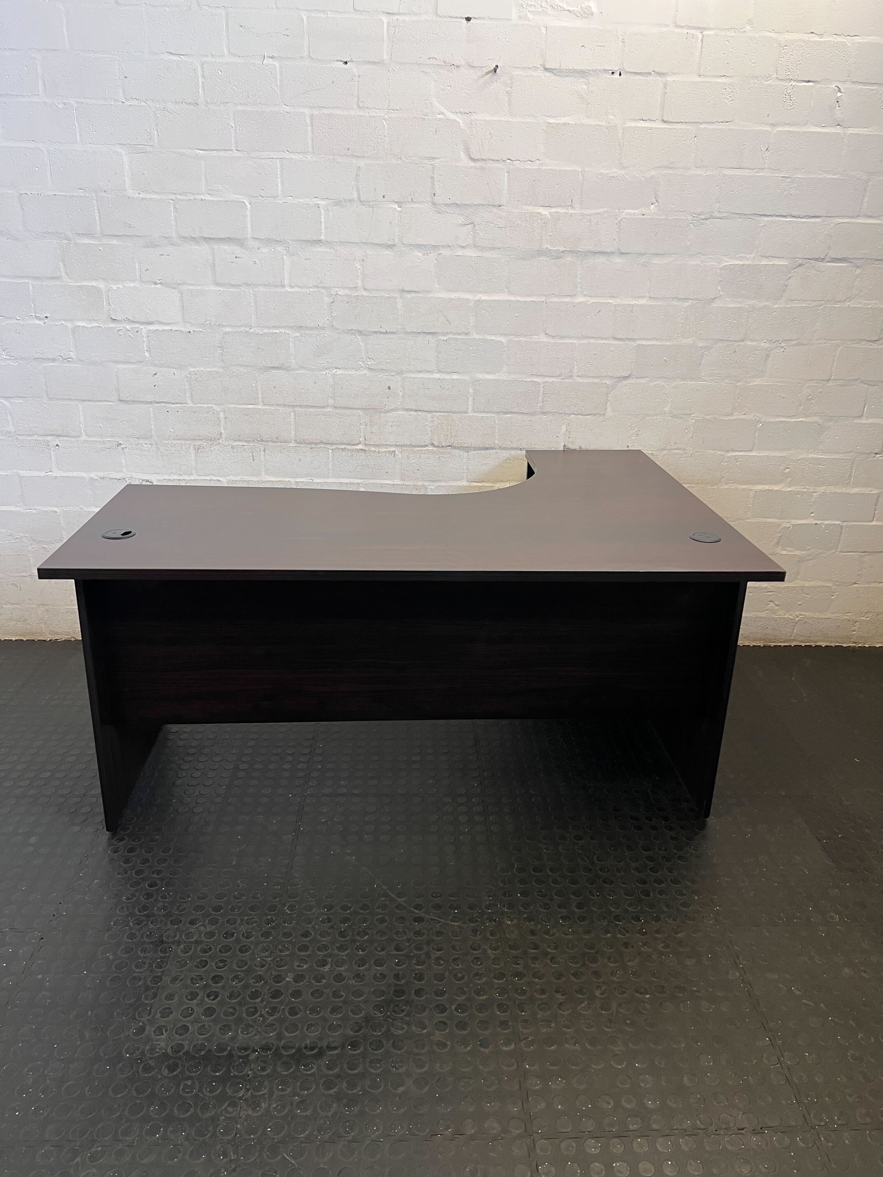 A56881 Upgrade your workspace with this sleek and functional L-shaped office desk! ✨ Featuring a rich dark wood finish, this desk offers ample surface area for all your work essentials, perfect for a home office, study, or business environment. Its intelligent design maximizes corner space, providing a productive and organized setup for your computer, documents, and creative projects. Two integrated cable management holes keep your cords tidy and out of sight. A versatile piece that combines style with practicality! 💻#LShapedDesk #OfficeFurniture #HomeOffice #WorkFromHome #2ndhandwarehouse🧡