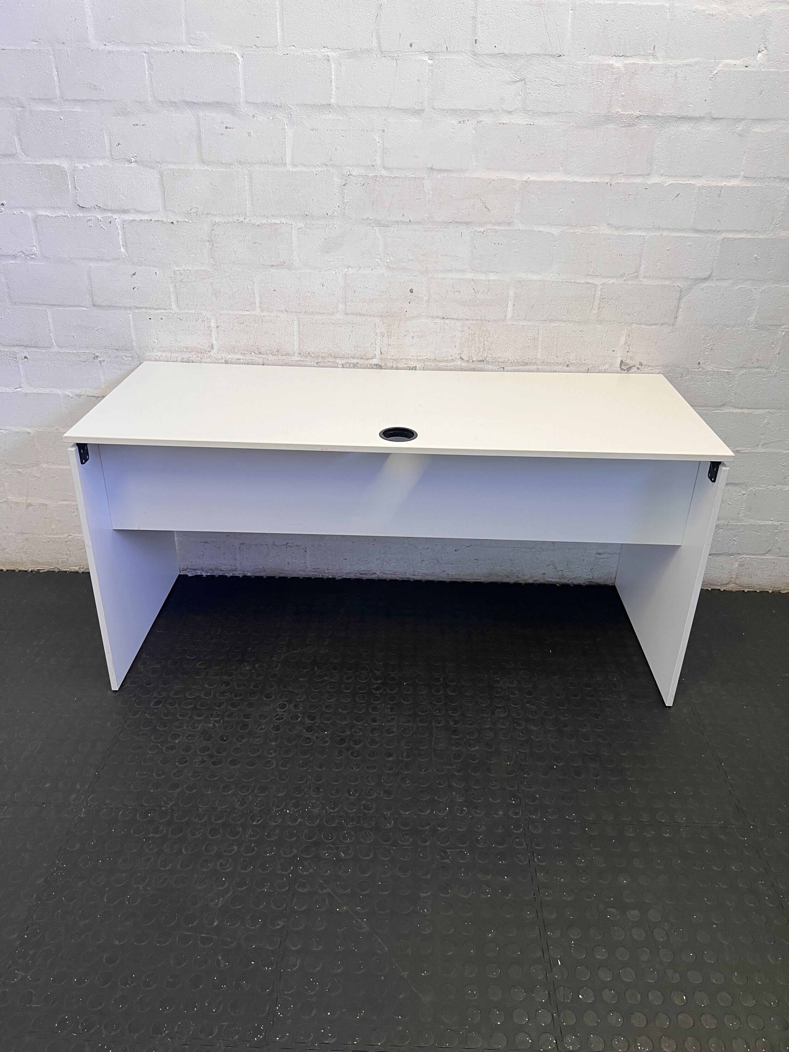 A56879 Upgrade your workspace with this sleek and minimalist white desk, perfect for a home office, study nook, or small business. Its clean lines and compact design make it versatile for any room, while the built-in cable management grommet helps keep your setup tidy and organized. Create an inspiring and productive environment with this stylish addition! ✨#homedesk #officedesk #whitedesk #studyfurniture #2ndhandwarehouse🧡