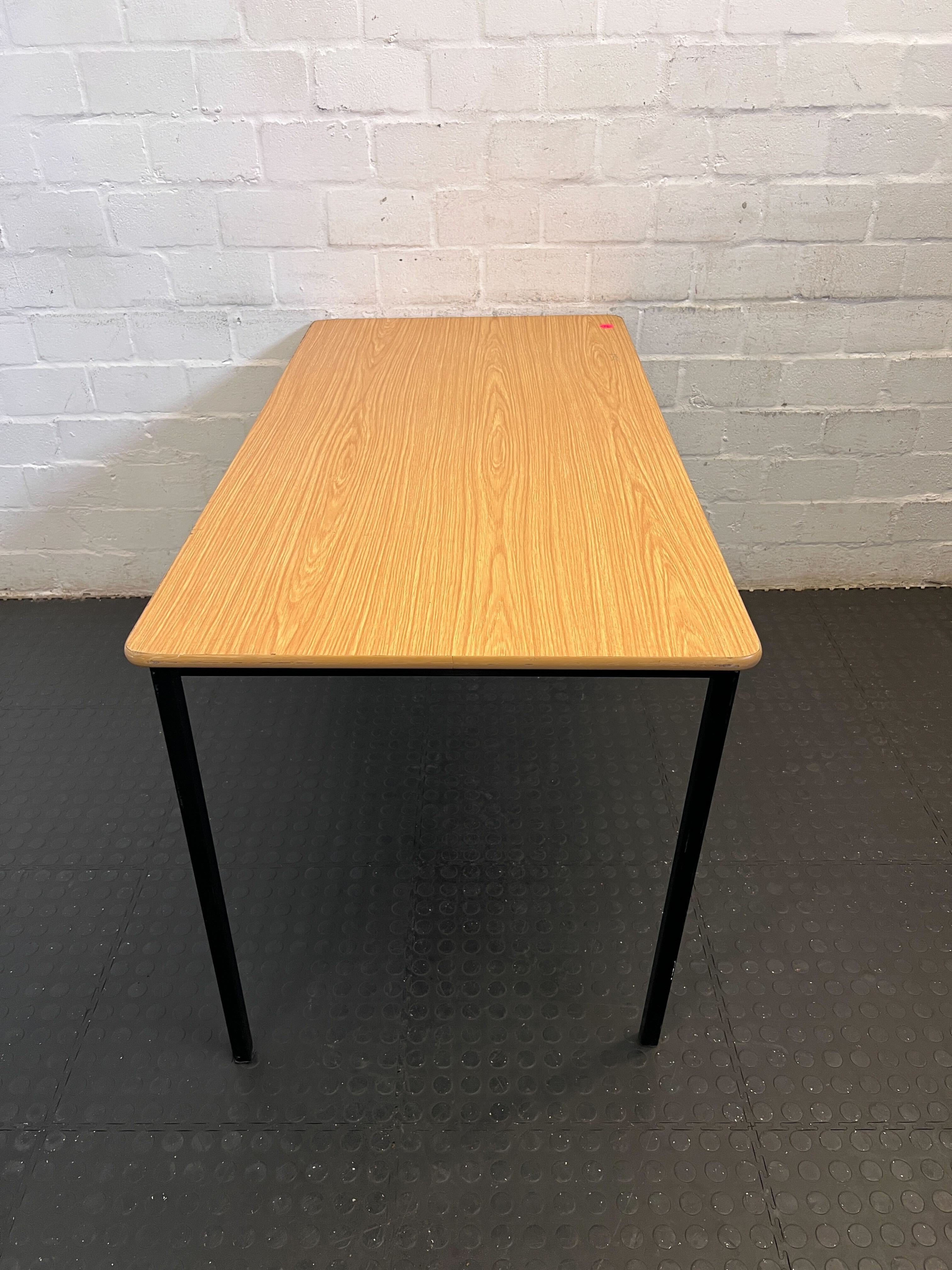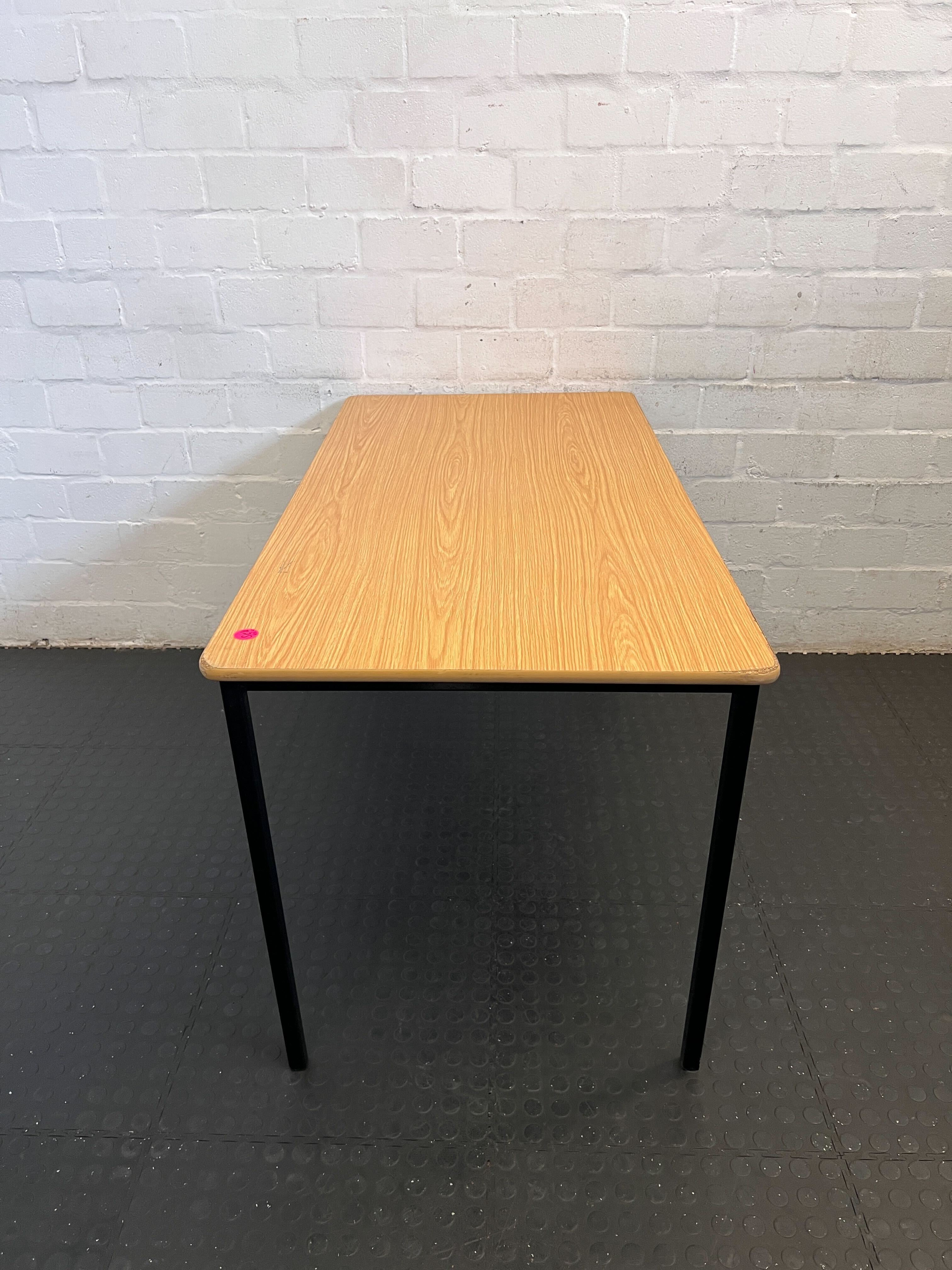 Sleek Black Metal and Light Wood Writing Desk - Minor Scuffs
