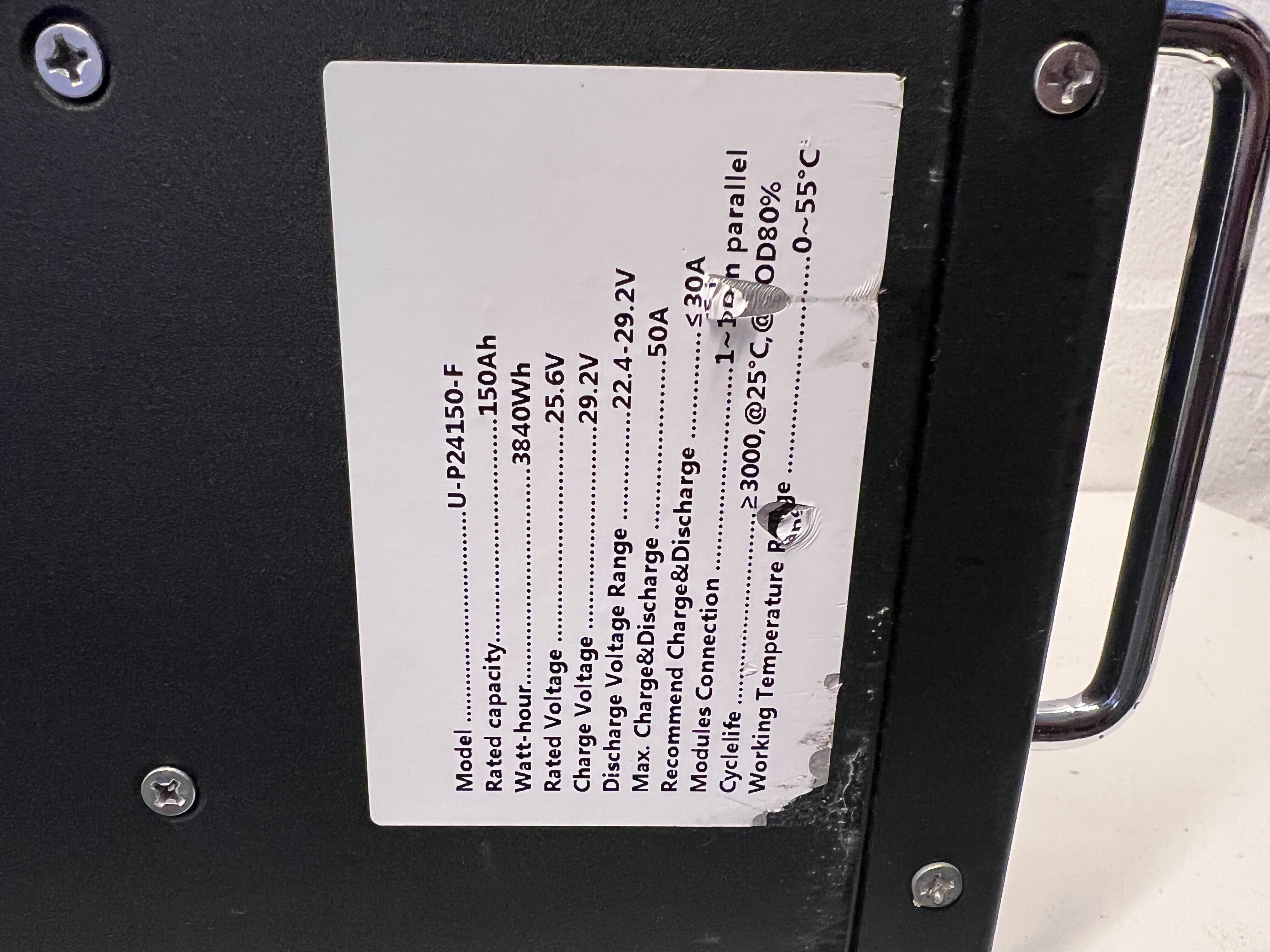 🔋LiFePO₄ 24 V 150 Ah (3.84 kWh) wall-mount battery —25.6 V nominal,29.2 V charge,≥3000 cycles @ 80% DOD