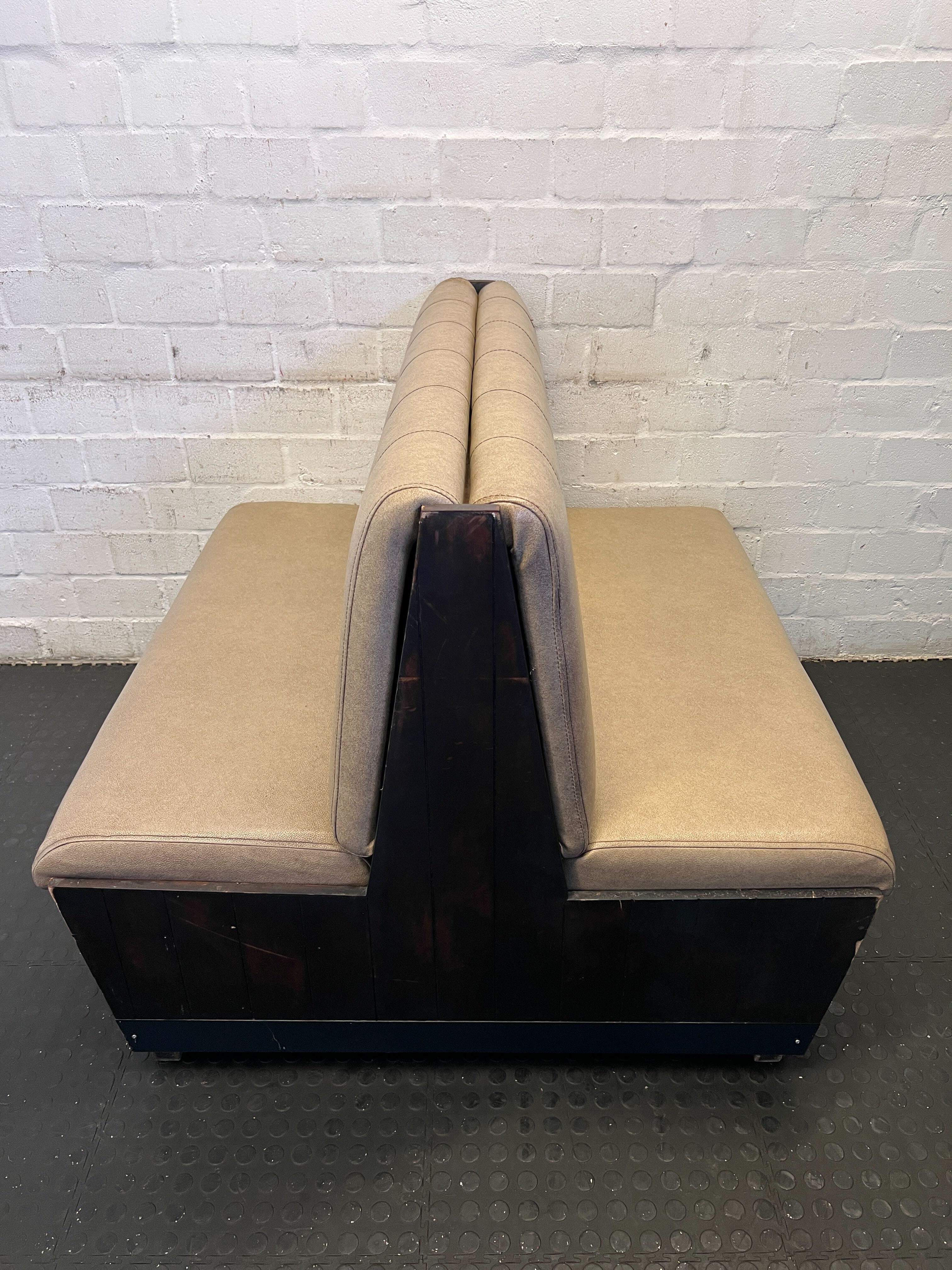 A54210 Elevate your dining space with this stylish beige upholstered restaurant booth seat featuring a sturdy wooden frame. Measuring 120cm and designed for double-sided seating, it offers both comfort and durability. Its minimal wear ensures a fresh look while providing a cozy, inviting atmosphere for your guests. Perfect for enhancing any restaurant or café setting with timeless elegance and practical functionality.🛋️🧡 #SecondHandFurniture #CapeTown #2ndHandWarehouse