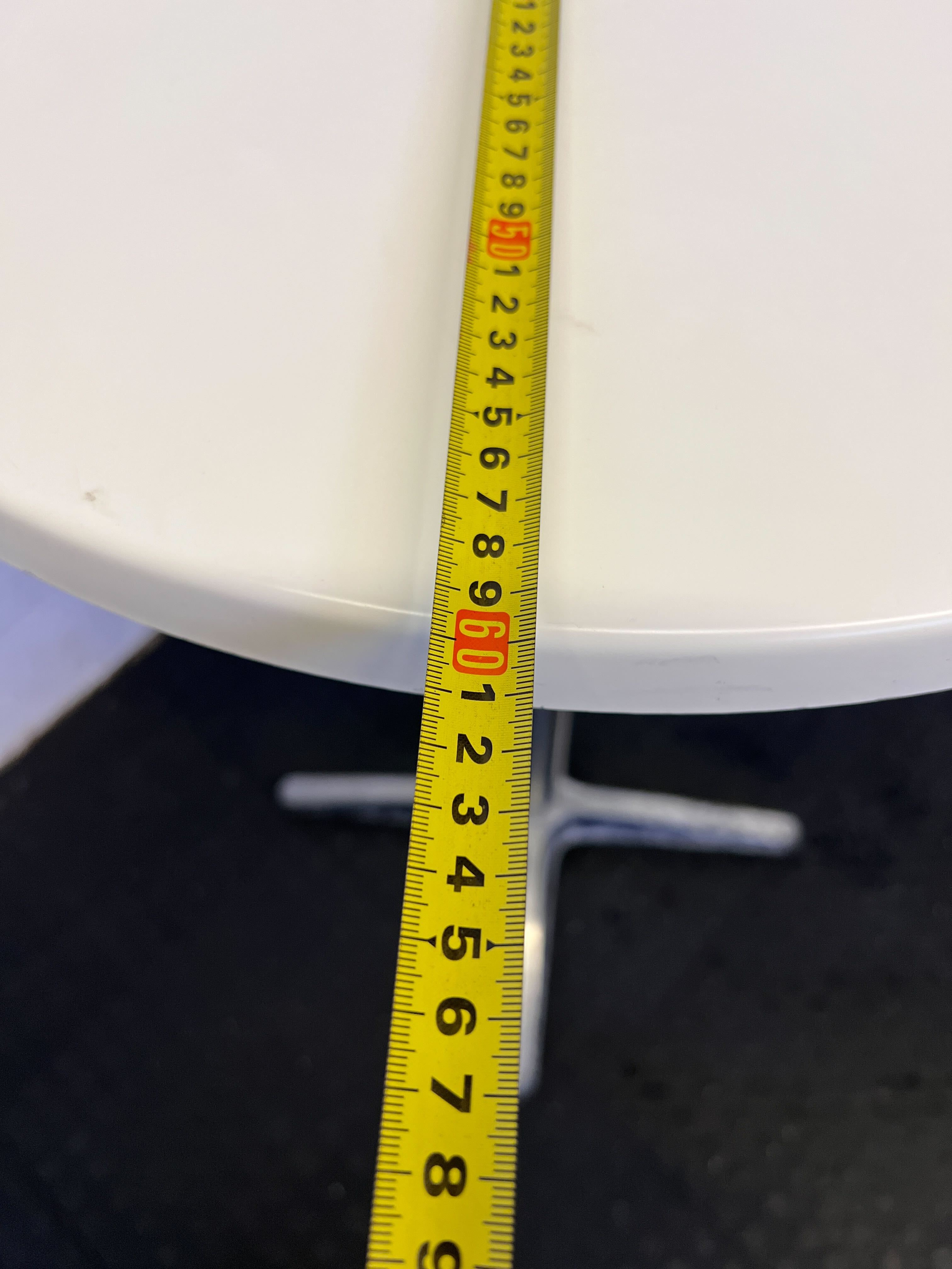 A55373 โœจ This modern round table features a sleek white top complemented by a sturdy chrome base, making it an ideal addition to your kitchen or dining area. Despite some minor wear on the base, it remains a stylish and functional piece perfect for casual meals or entertaining guests. Imagine cozy brunches or family game nights around this table! ๐Ÿงก #RoundTable #DiningFurniture #HomeDecor #2ndHandWarehouse