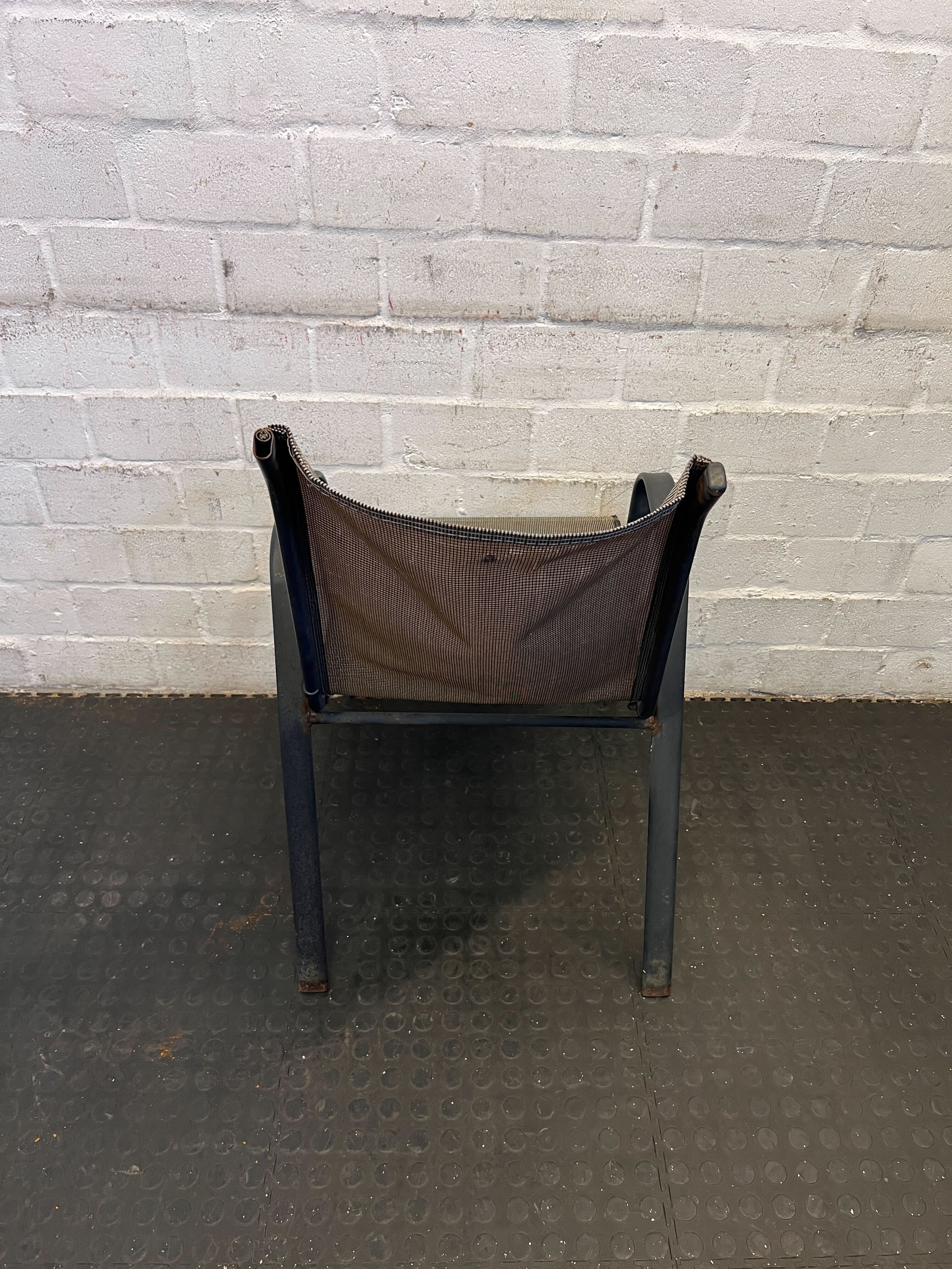 Sturdy Black Metal Outdoor Chair with Mesh Seat – Minor Wear