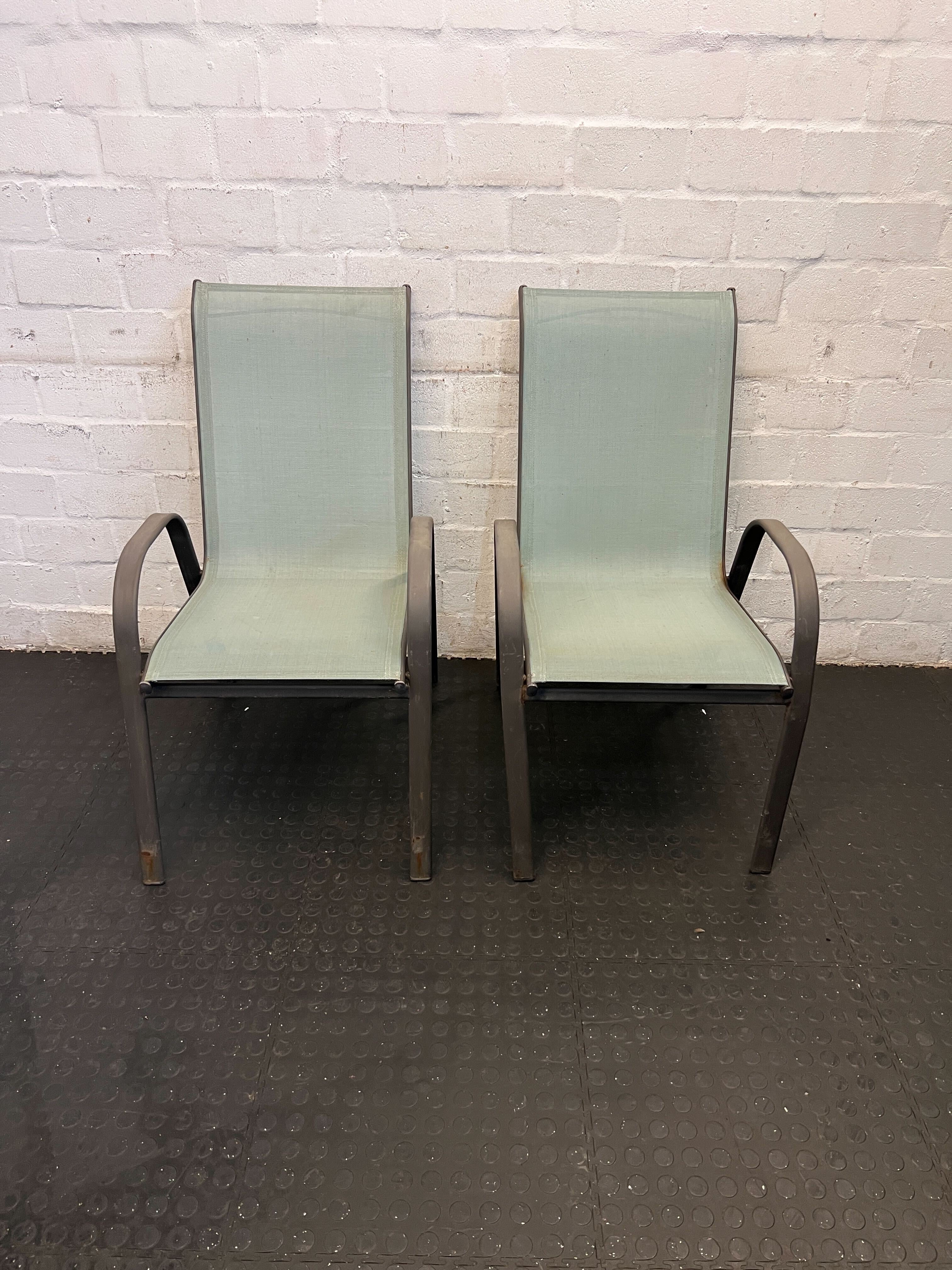 Contemporary Metal Garden Chair with Mint Green Fabric - Slight Rust