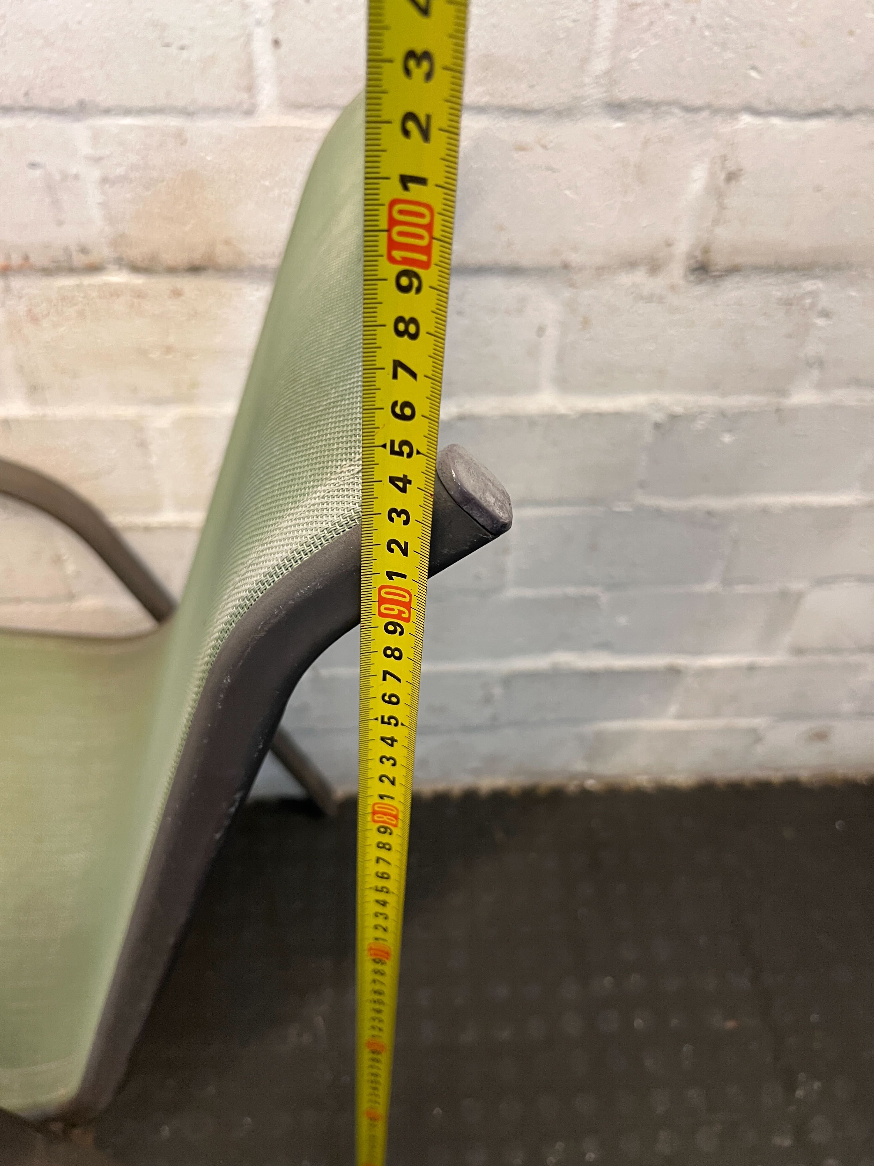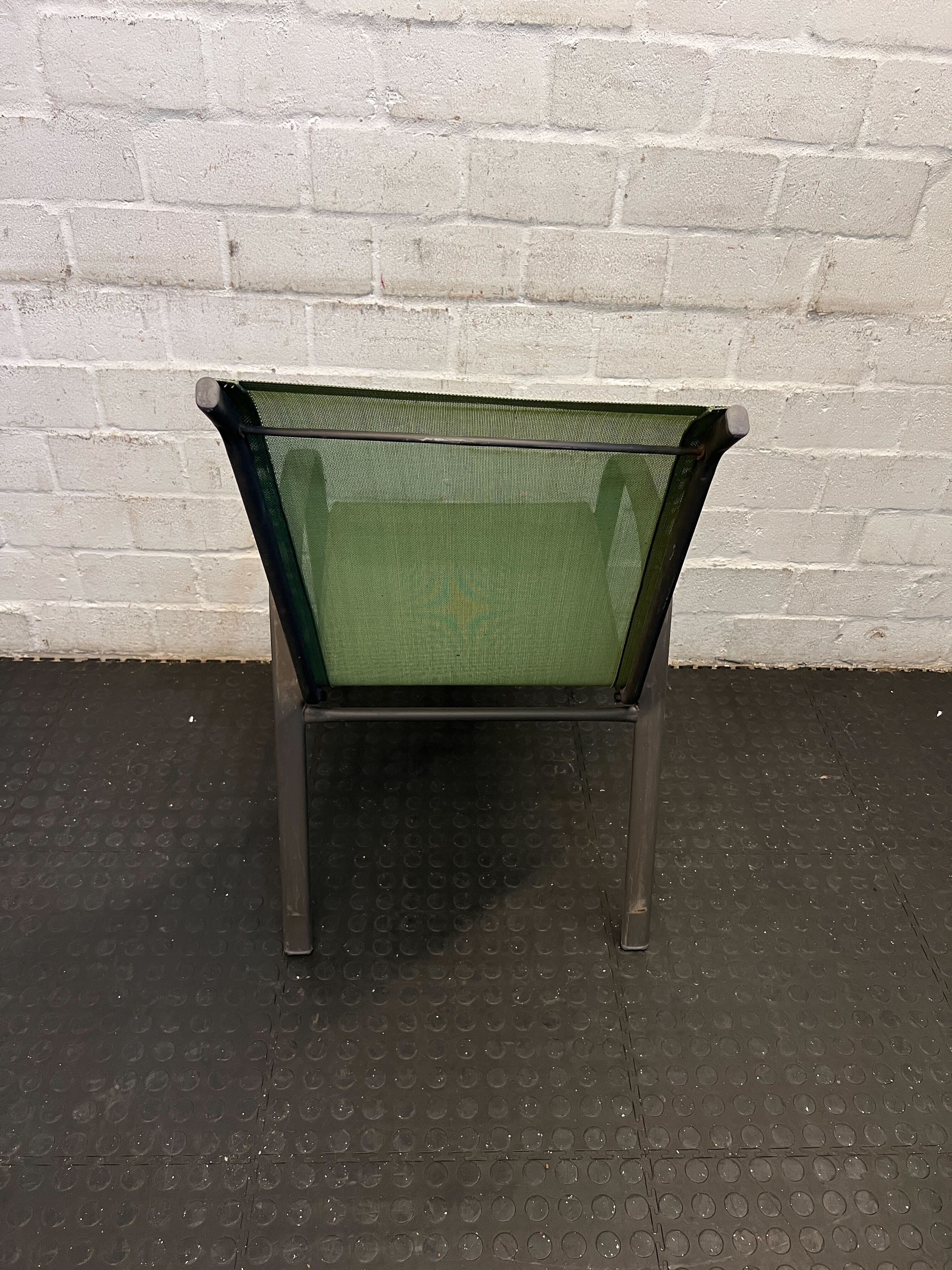 A53563 ☀️ This chic green patio chair features a durable metal frame and breathable mesh fabric, perfect for those sunny days outdoors. With a few minor rust spots, it still offers great comfort and style for any garden or balcony setting. Imagine lounging with a cold drink in hand while enjoying nature! 🧡 #PatioChair #OutdoorFurniture #GreenChair #2ndHandWarehouse