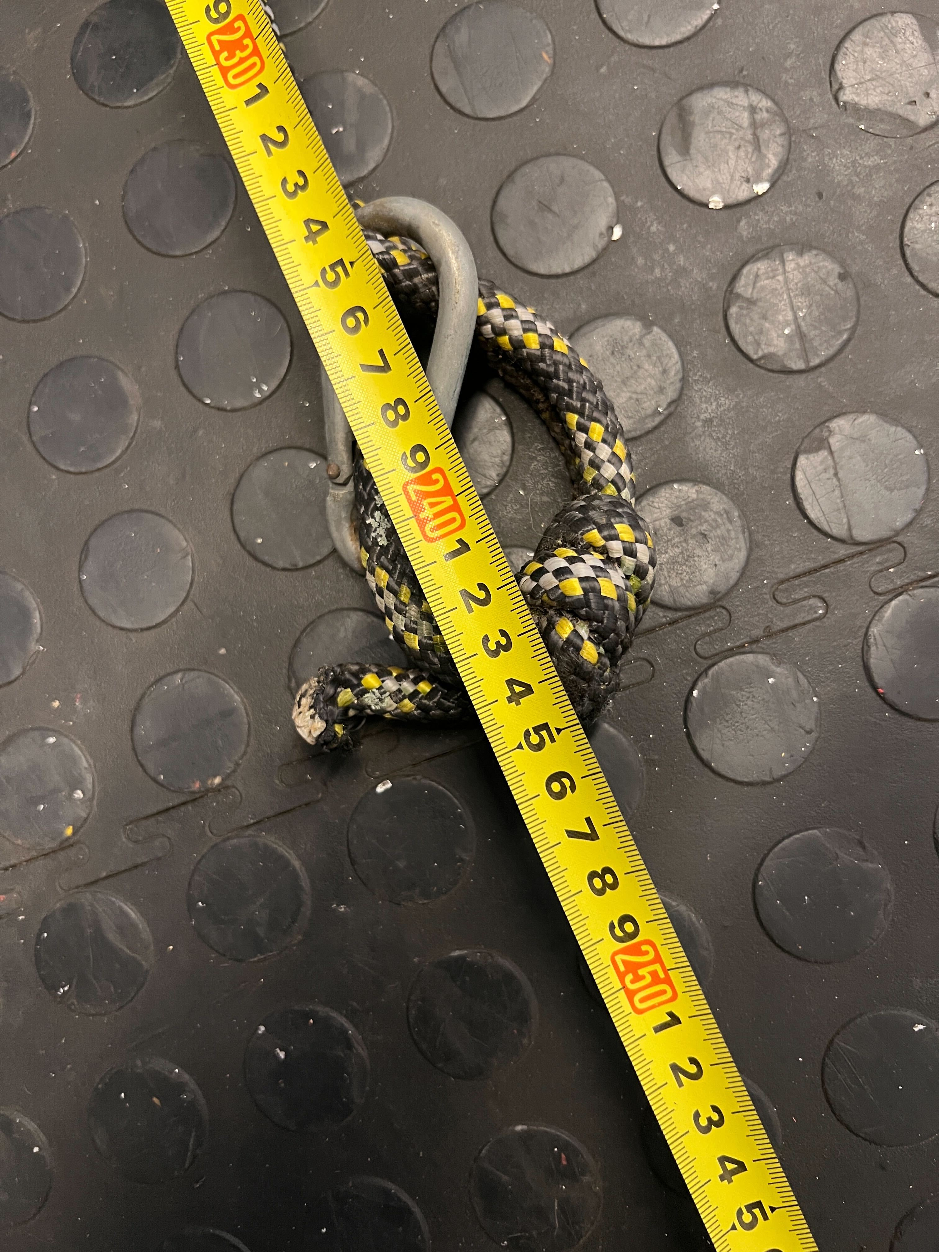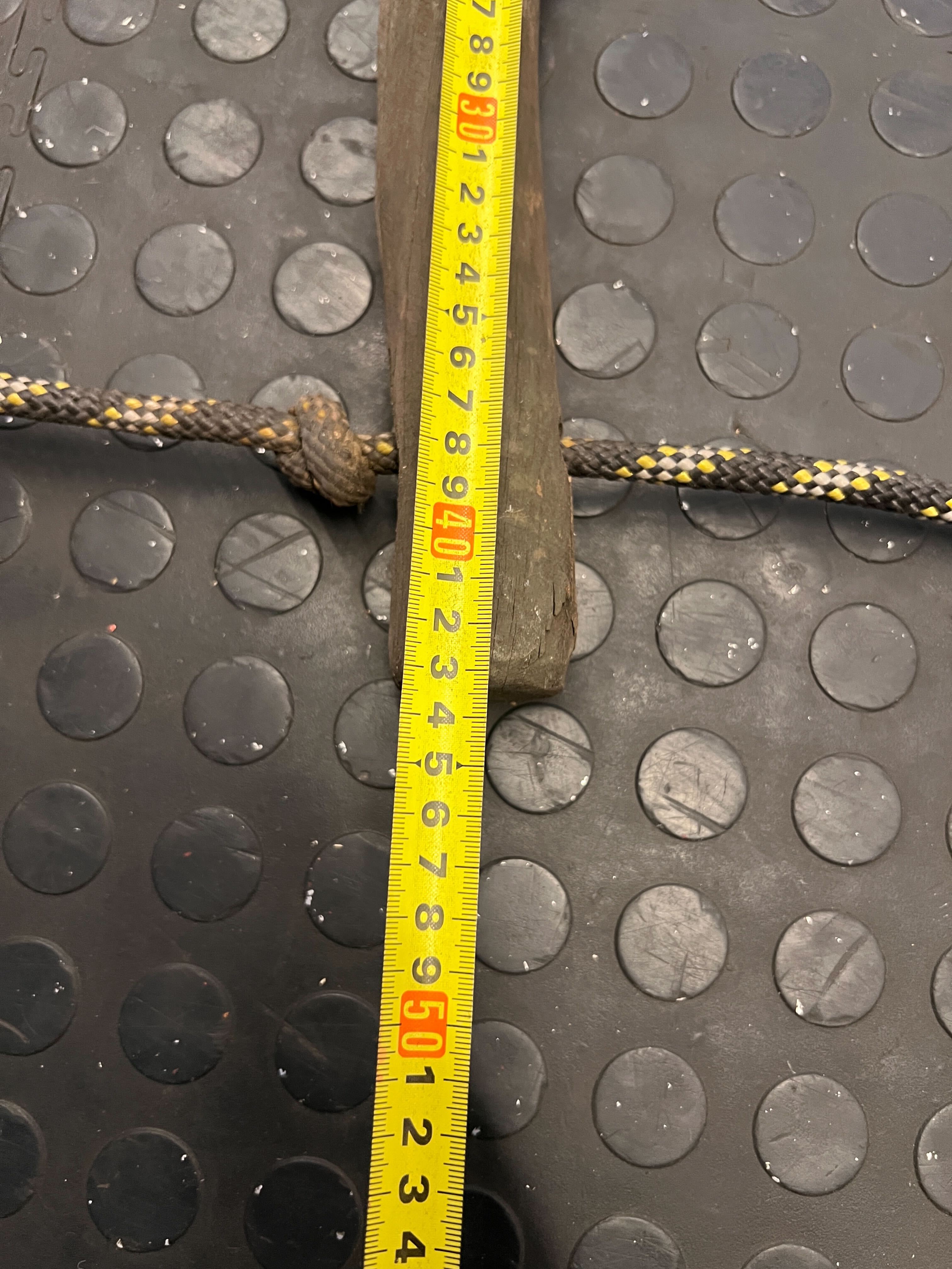 This pre-loved wooden rope ladder is in good, sturdy condition, consistent with its natural, rustic appeal. The wooden rungs show natural variations and textures, with some minor scuffs and marks expected from gentle use. The rope is intact and strong, ready for its next adventure!