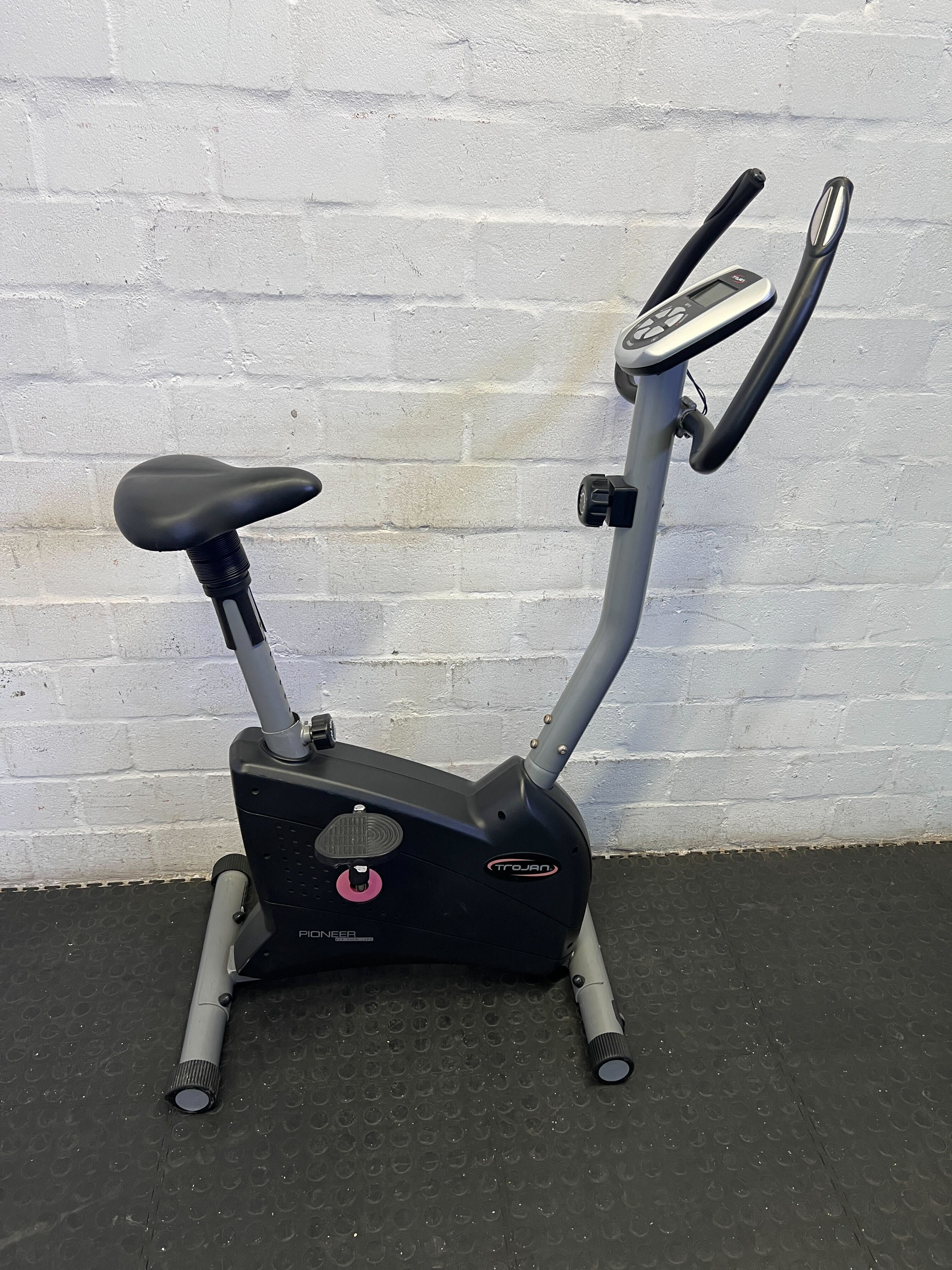 A56325 Boost your home fitness routine with this robust Trojan Pioneer Exercise Bike! ✨ Perfect for cardio workouts, improving endurance, and toning muscles from the comfort of your own space. This sleek black and grey stationary bike features an easy-to-read digital display to track your progress, comfortable adjustable seating, and secure foot pedals with straps for a smooth and effective ride. Get ready to cycle your way to a healthier you!#TrojanPioneer #ExerciseBike #HomeGym #FitnessEquipment #CardioWorkout #2ndhandwarehouse🧡