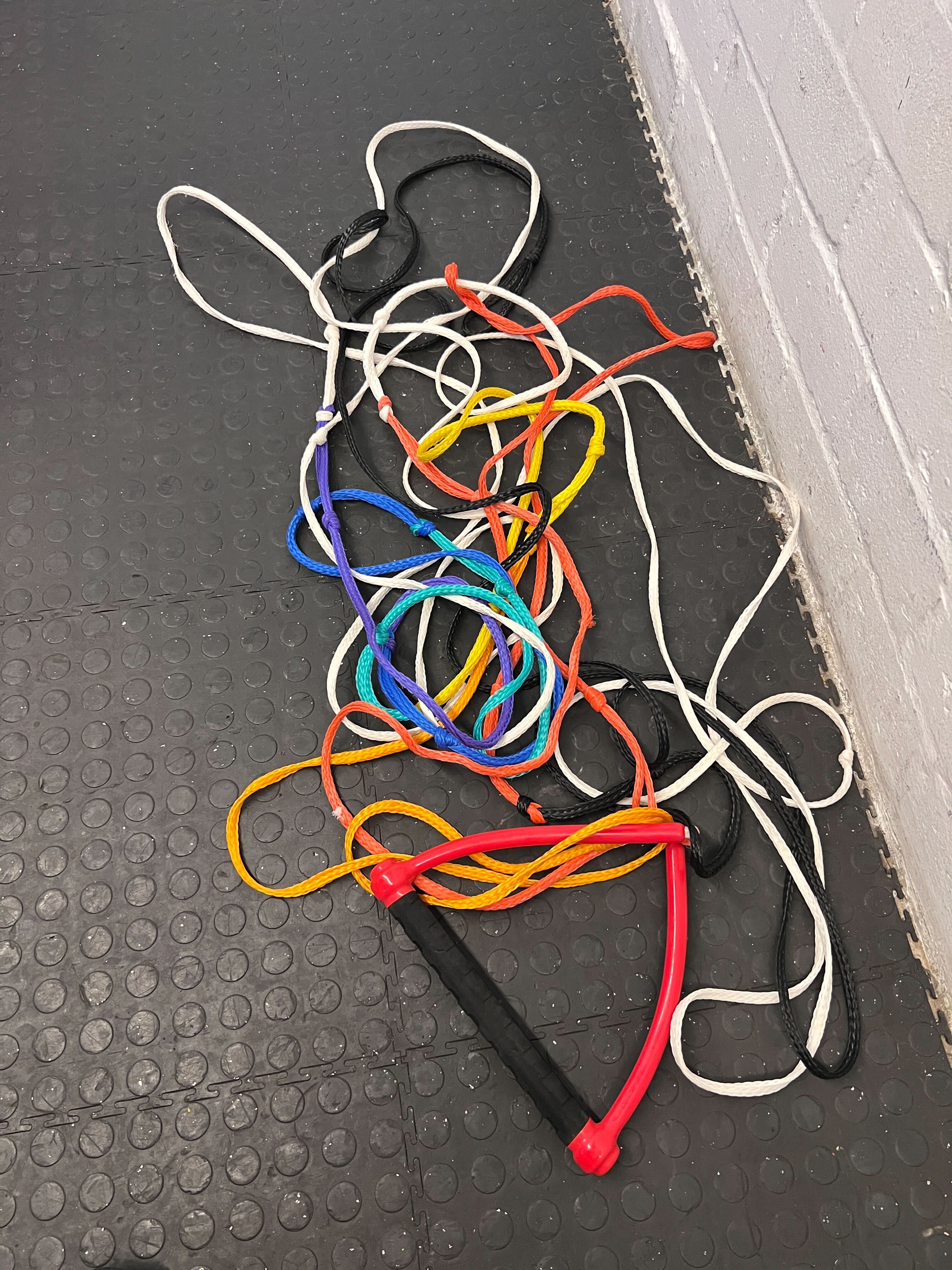 A54734 Get ready to elevate your fitness routine with this colorful resistance bands set! Featuring various resistance levels and a comfortable grip handle in vibrant red, these bands are perfect for enhancing your strength training and flexibility at home or in the gym. In good condition, with minor signs of use, they’re ready to help you achieve your fitness goals! 🧡