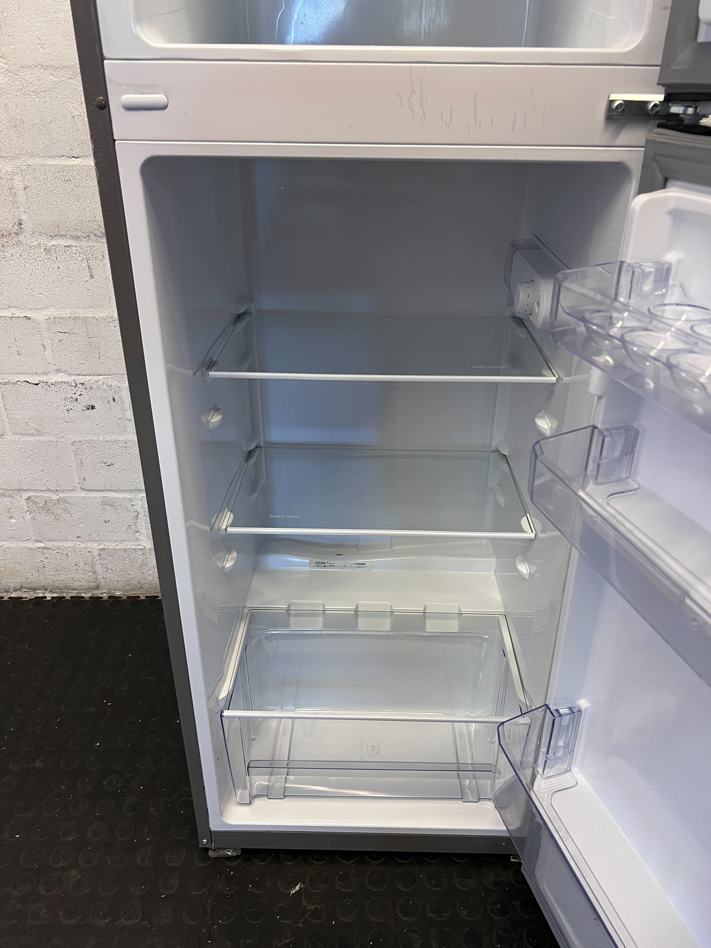 Upgrade your kitchen with this stylish Defy Top-Freezer Refrigerator! ✨ Perfect for apartments, smaller homes, or as a secondary fridge, this appliance offers efficient cooling and freezing in a compact design. Its modern grey finish will seamlessly blend with any contemporary decor, providing reliable food storage without compromising on style. A practical and essential addition to any living space, ensuring your groceries stay fresh and your frozen items perfectly preserved. This refrigerator is in good pre-owned condition. As visible in the images, there may be some minor surface marks or reflections consistent with normal use, but these do not impact its functionality. It has been well-maintained and is ready for its new home.