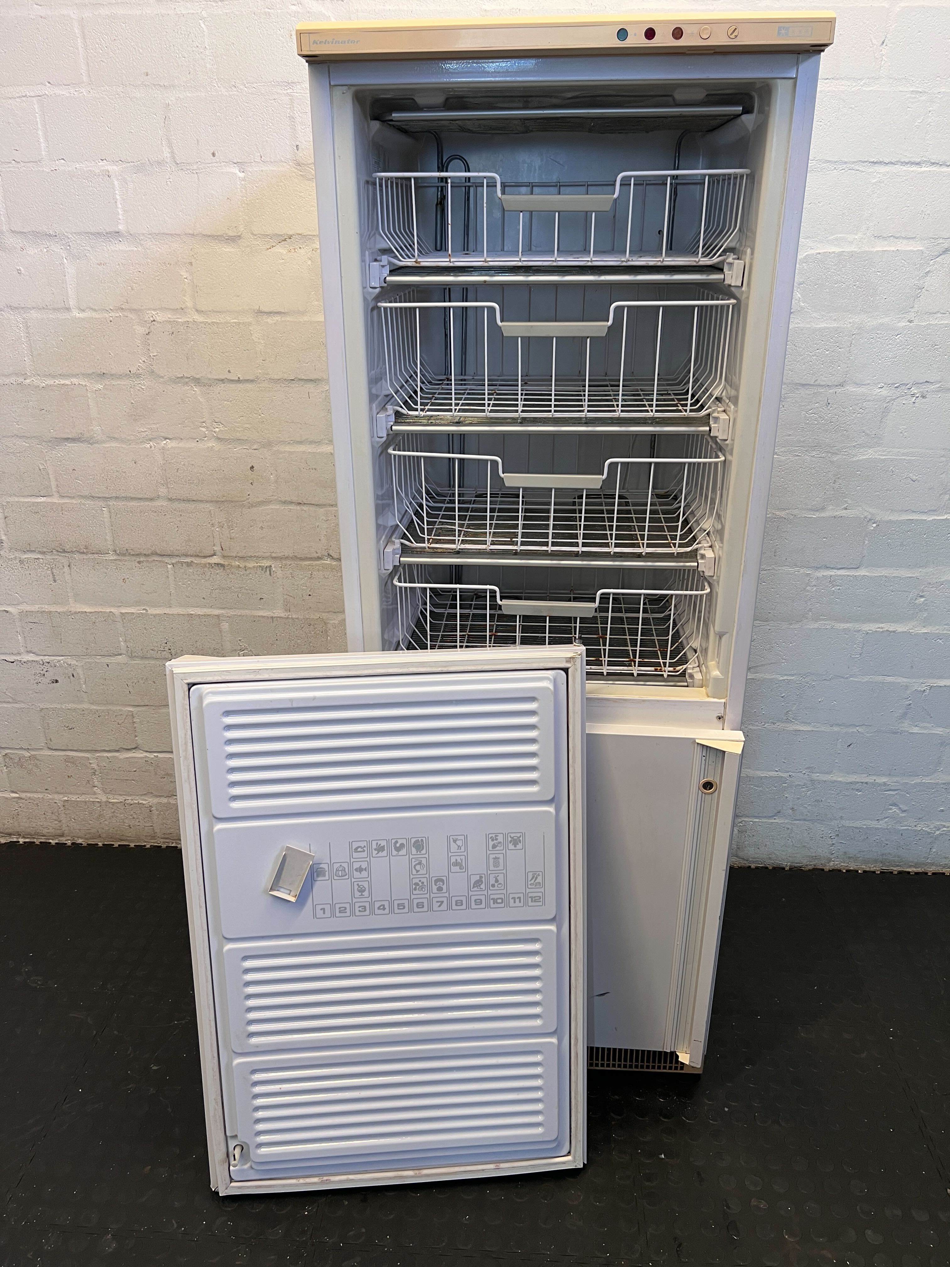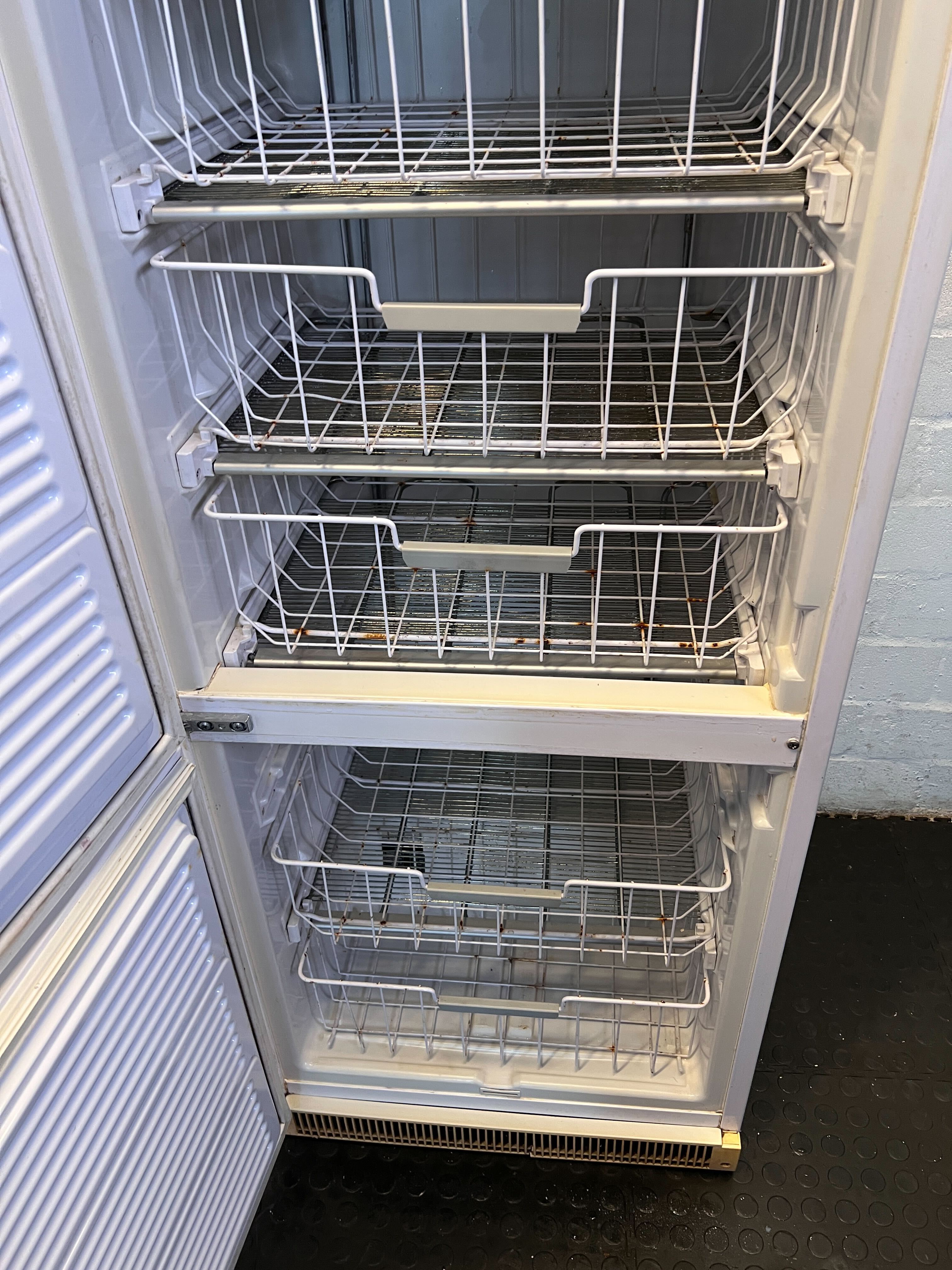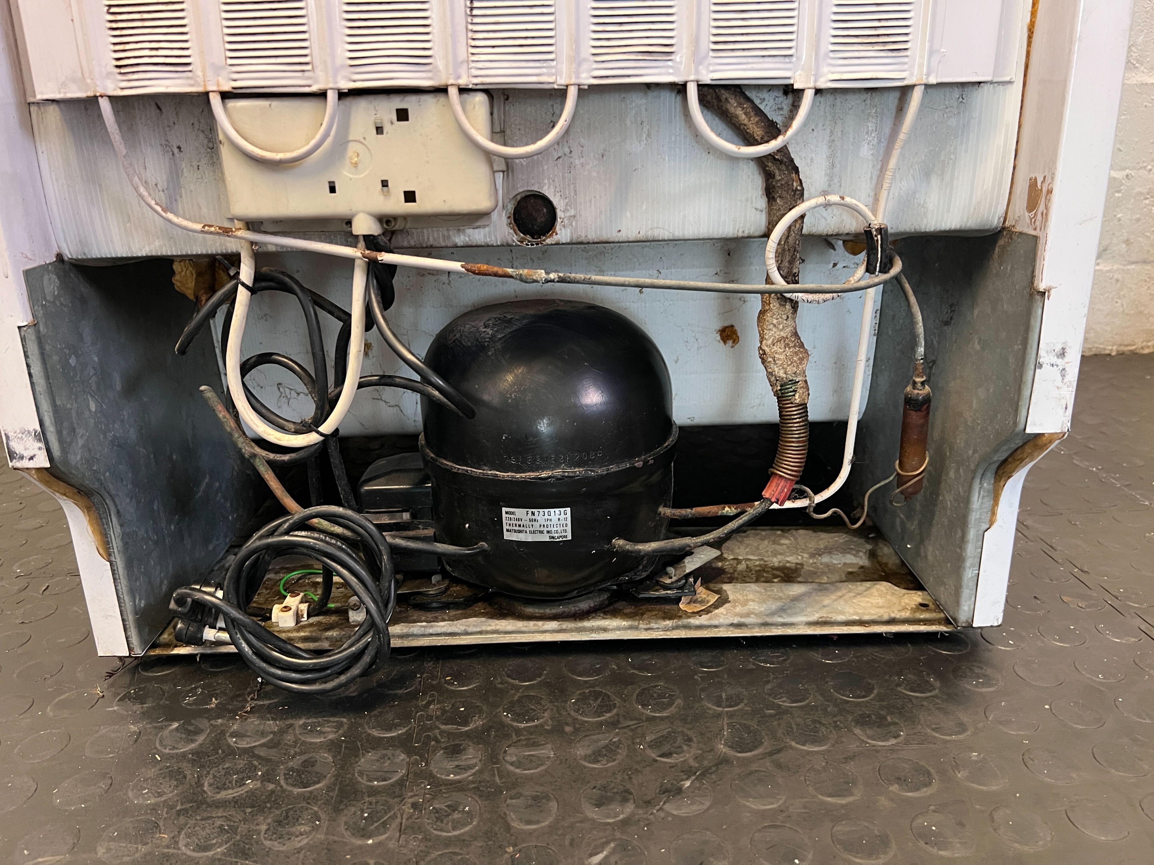 A57099Keep your groceries perfectly chilled and frozen with this versatile white fridge-freezer combo! ✨ Ideal for any kitchen, a small apartment, or as a handy overflow unit in your utility room, this appliance offers efficient refrigeration and freezing capabilities. Its timeless white finish ensures it will fit effortlessly into your home decor, providing practical storage solutions for all your culinary needs. **Condition:** This fridge-freezer is in good, pre-owned condition. It exhibits typical signs of use and age, including some minor scuffs and superficial marks on the exterior, particularly noticeable on the lower freezer door, as highlighted in the provided images. Despite these cosmetic imperfections, the unit is in working order and ready to serve its next owner. #FridgeFreezer #UsedAppliance #KitchenEssentials #SecondHandFridge #2ndhandwarehouse 🧡