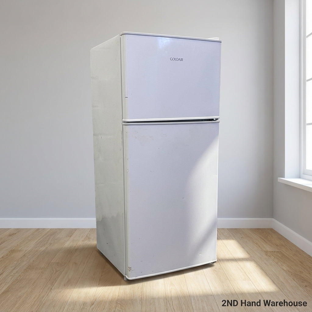 Upgrade your kitchen or extra storage needs with this reliable Goldair White Top Freezer Fridge! ✨ This compact and efficient appliance offers convenient refrigeration and freezing capabilities, perfect for smaller living spaces, dorm rooms, offices, or as a secondary fridge for drinks and snacks. Its classic white finish seamlessly blends with any decor, providing practical functionality without compromising on style. Stay organized and keep your perishables fresh with this versatile addition to your home. 🏡🧊 This Goldair fridge-freezer is in good, pre-owned condition. It shows minor cosmetic wear consistent with normal use, such as small surface scuffs or marks that do not affect its performance. The unit is clean and has been tested to ensure full working order.