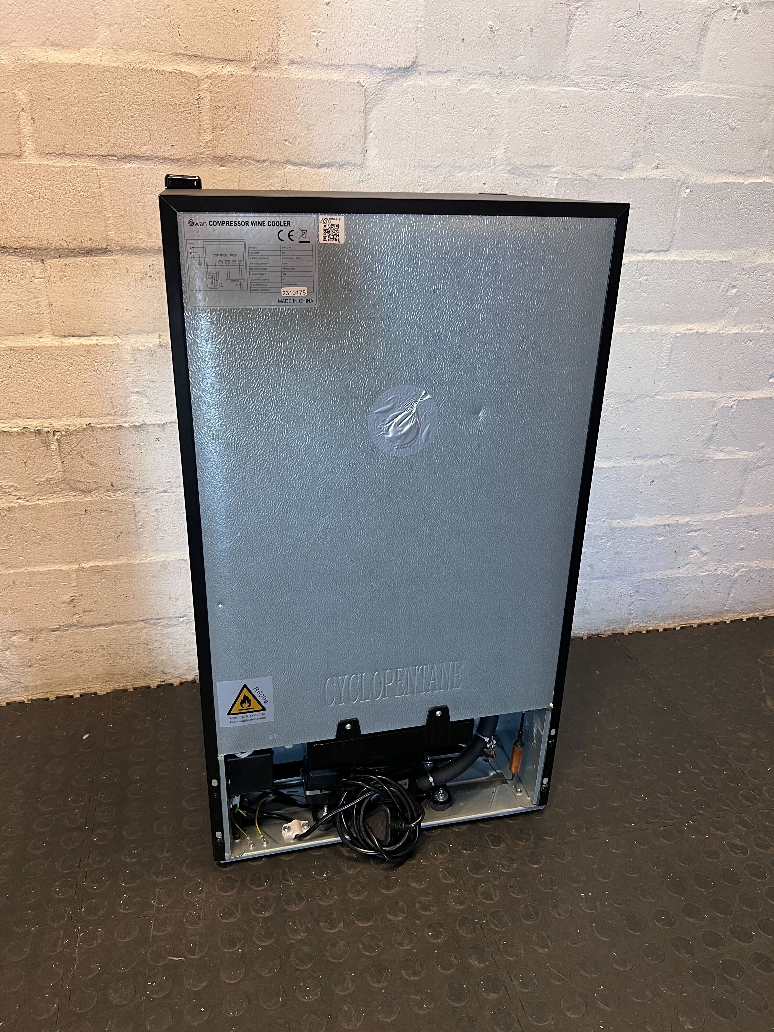 Elevate your home bar or kitchen with this stylish Swan wine cooler! ✨ Designed to keep your wines at their optimal temperature, this sleek black appliance is a must-have for any wine enthusiast. With multiple racks for organized storage, it's perfect for entertaining guests or simply enjoying a perfectly chilled glass at the end of a long day. Its compact yet spacious design makes it a versatile addition to any living space.This Swan wine cooler is in excellent pre-loved condition. From the image, it appears clean and well-maintained. As a second-hand item, there may be minor cosmetic imperfections consistent with normal use, but these do not affect its functionality. The energy label is clearly visible, indicating its specifications. It's ready to bring perfectly chilled wines to your home!