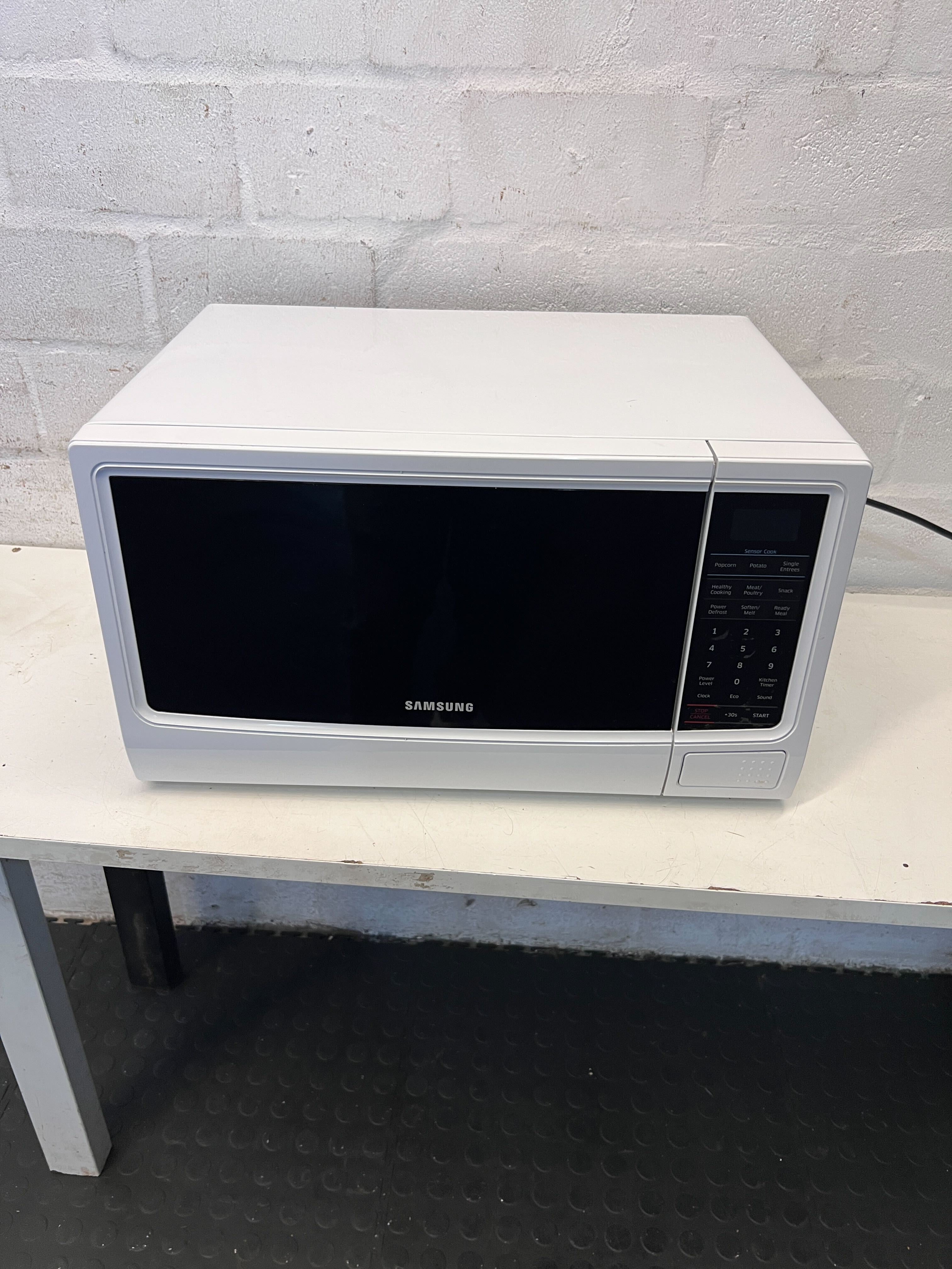 A54060 This sleek Samsung white microwave oven combines modern functionality and timeless design, perfect for any kitchen. Featuring a straightforward control panel and a spacious interior, it’s ideal for quick meals or reheating leftovers. It has minor scratches, which do not affect its performance, making it a great addition to your home! Elevate your cooking experience today! 🍽️🧡 #MicrowaveOven #SamsungMicrowave #SecondHandAppliance #2ndHandWarehouse