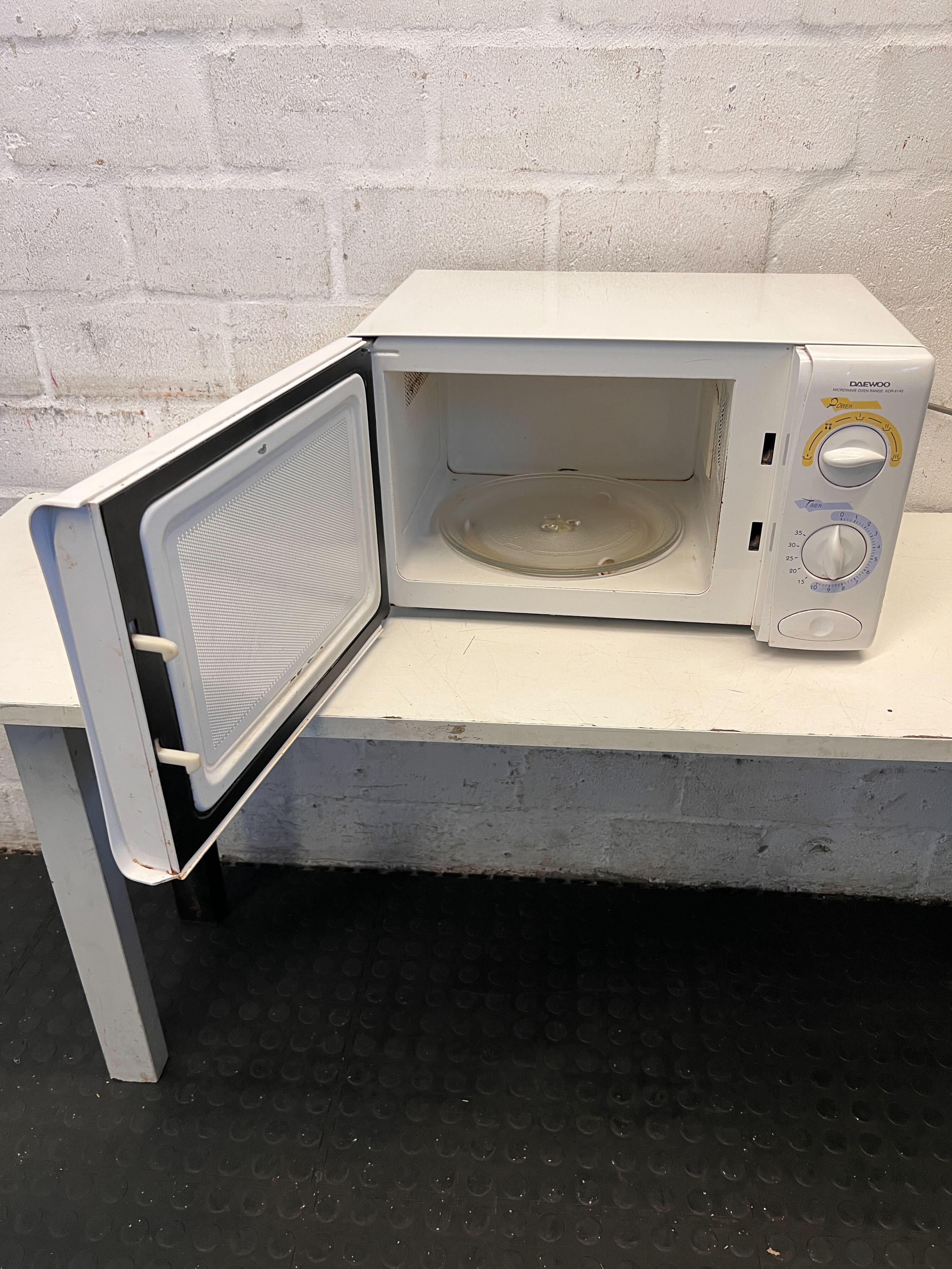 Compact Daewoo White Microwave with Minor Wear and Scratches - REDUCED