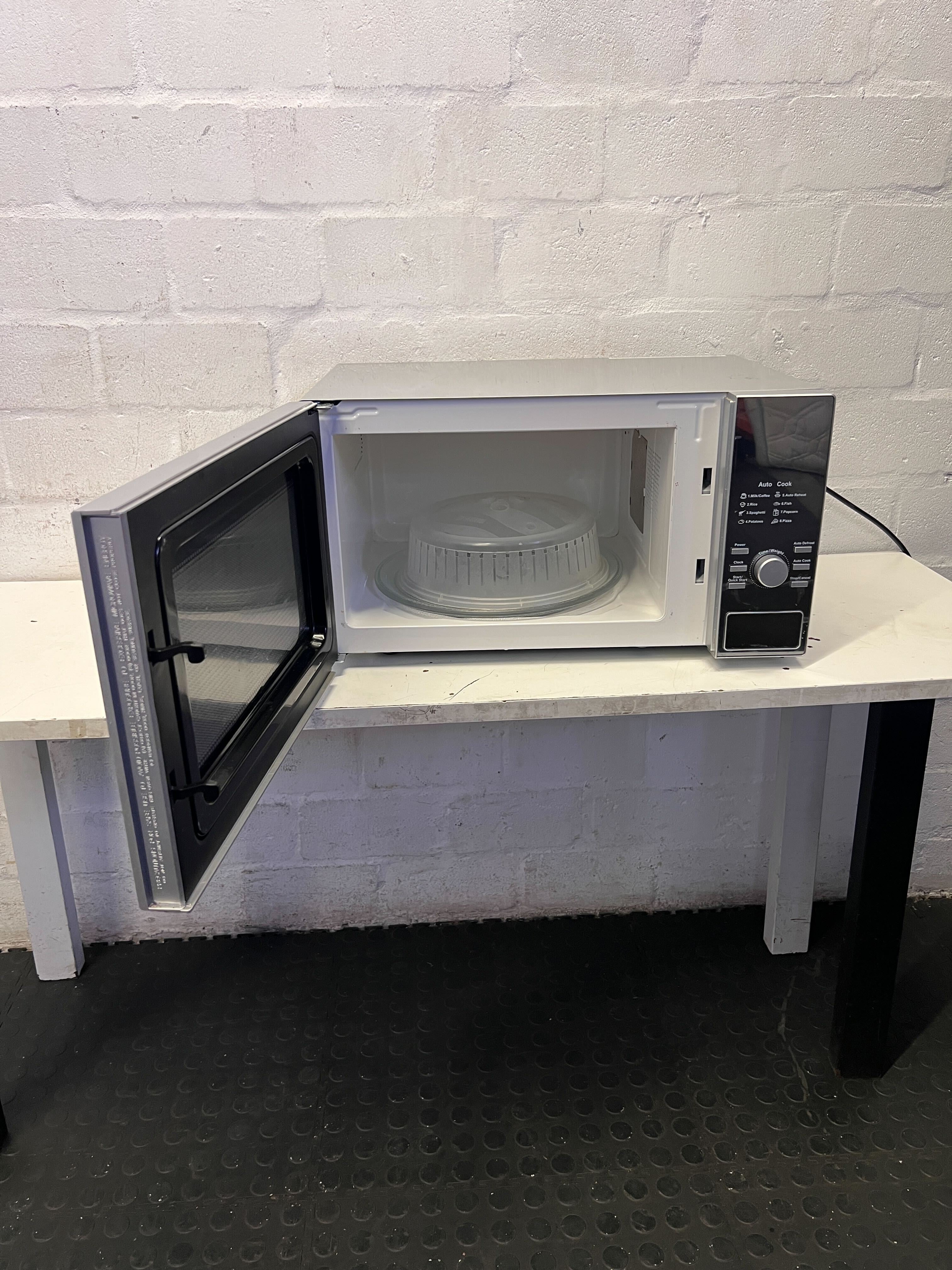 A57025This sleek Logic microwave oven, featuring a stylish silver and black finish, is ready to become the heart of your kitchen convenience! Perfect for quick meals, reheating leftovers, or defrosting ingredients, this versatile appliance streamlines your cooking routine. With user-friendly controls and handy auto-cook functions, it's an essential for any modern home or office break room. Enjoy effortless meal preparation with a touch of contemporary design. ✨<br><br>**Condition:** This pre-loved Logic microwave is in good, used condition. It exhibits the expected minor cosmetic wear consistent with previous use, but remains fully functional and ready for its new home. The exterior is clean, and all controls are intact. Please examine the provided images for a comprehensive look at its current state.<br><br>#LogicMicrowave #KitchenEssentials #SmallAppliance #HomeCooking #2ndhandwarehouse 🧡
