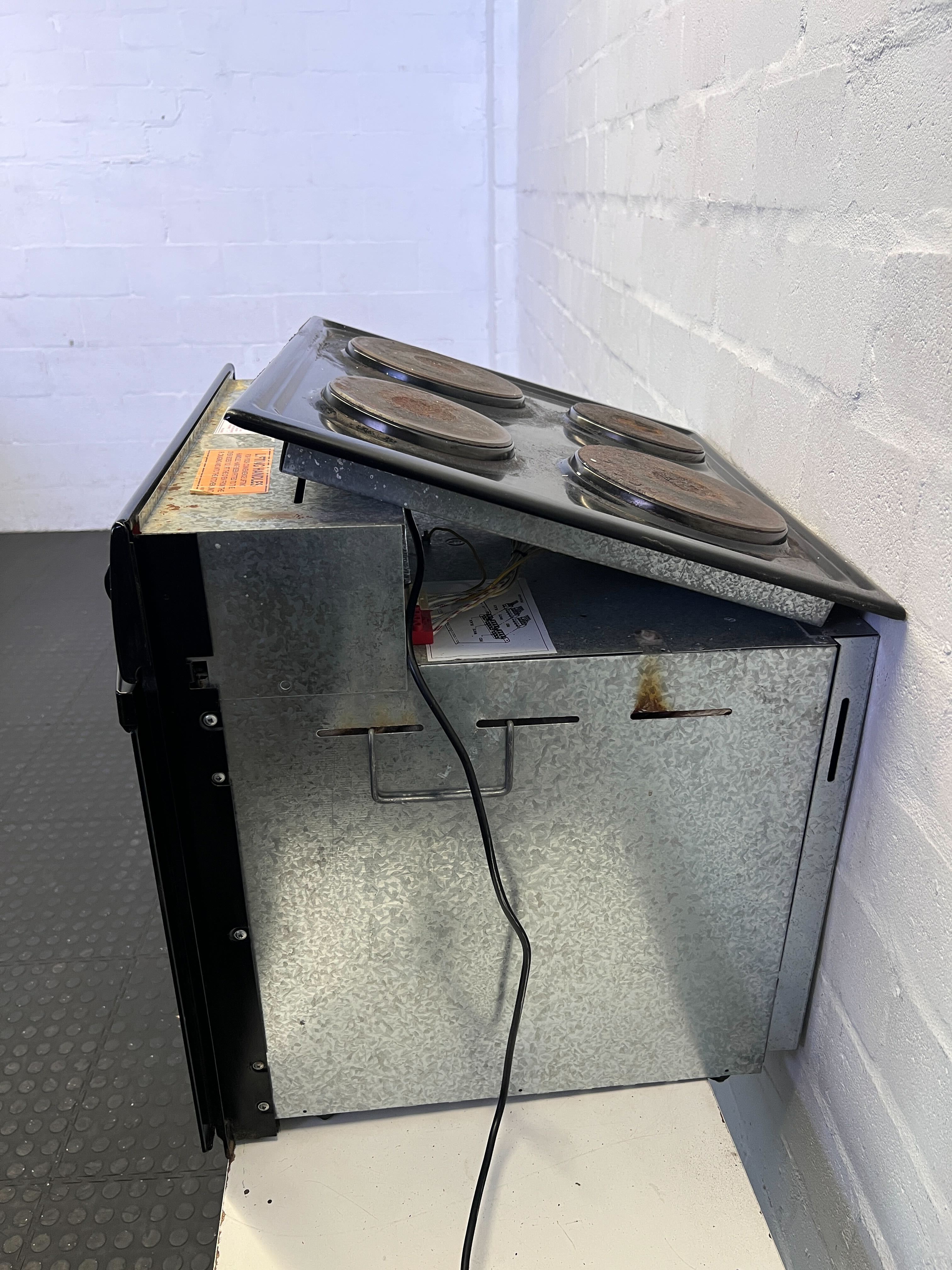 A56066 🔥 This sleek Defy Slimline electric stove in classic black is perfect for any modern kitchen. With sturdy knobs and a compact design, it combines functionality and style, making cooking an enjoyable experience. While it shows some minor wear, it remains in great working condition—ready to help you create delicious meals and memories! 🧡