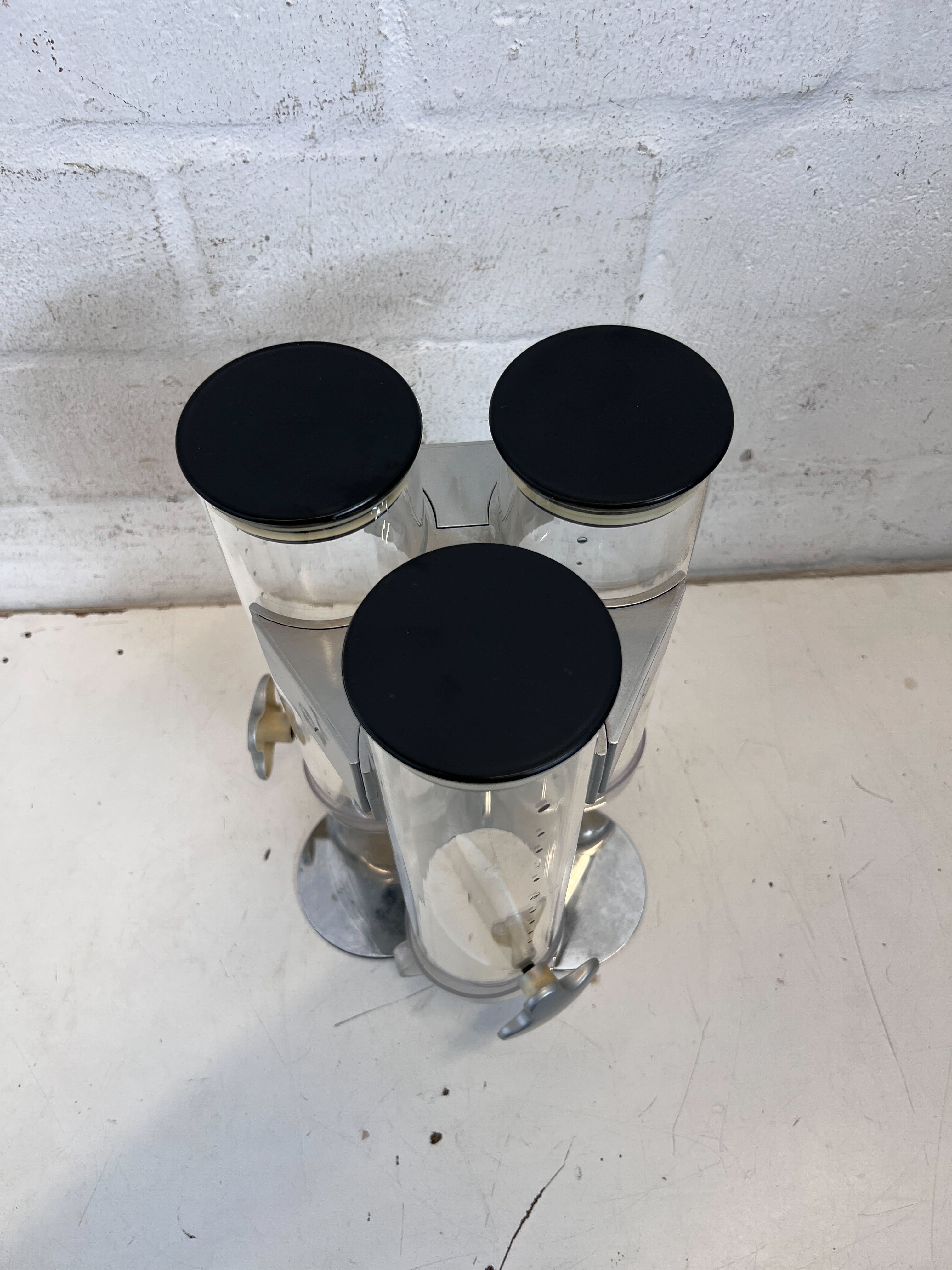 A56478 Elevate your breakfast routine or organize your pantry with this sleek triple cereal dispenser! ✨ Featuring three clear canisters on a sturdy silver-tone stand, it's perfect for keeping your favorite cereals, granola, nuts, or even pet food fresh and easily accessible. The convenient portion-control dispensing mechanism makes serving a breeze, reducing mess and adding a touch of modern style to your kitchen counter or dining area. A fantastic addition for busy mornings or entertaining! #CerealDispenser #KitchenOrganization #PantryGoals #BreakfastEssentials #2ndhandwarehouse 🧡